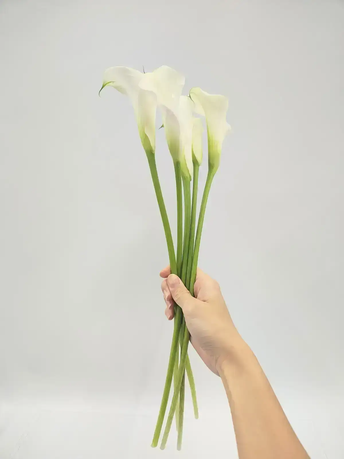 純白の美しいフォルムが上品な印象を与えます。ブライダルやフォーマルな装飾に最適です。
