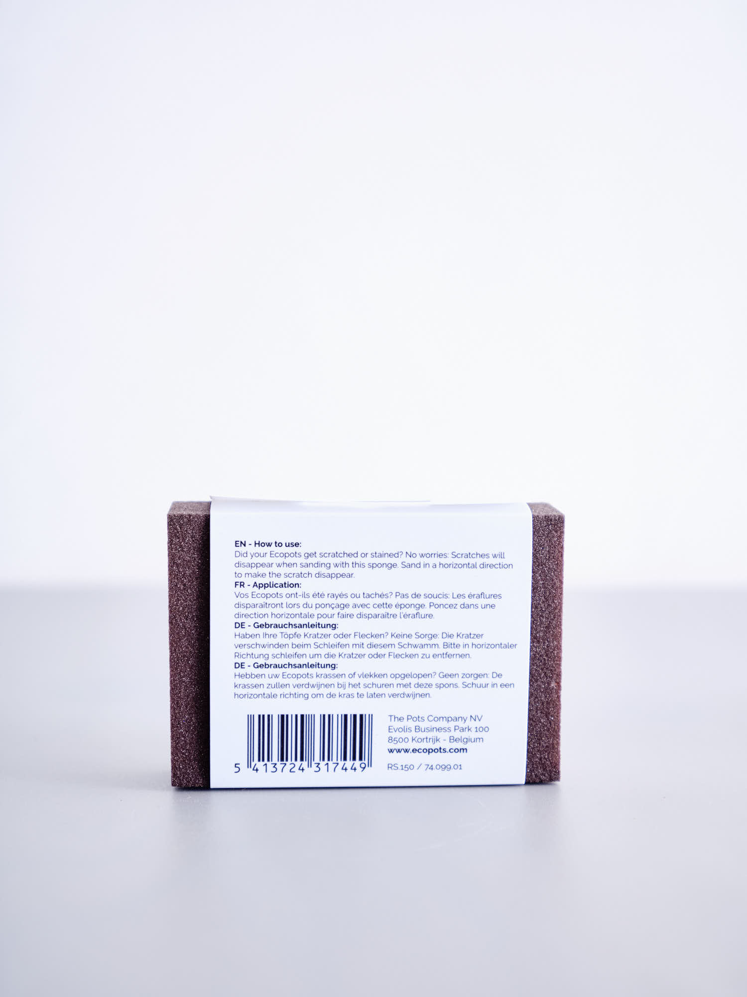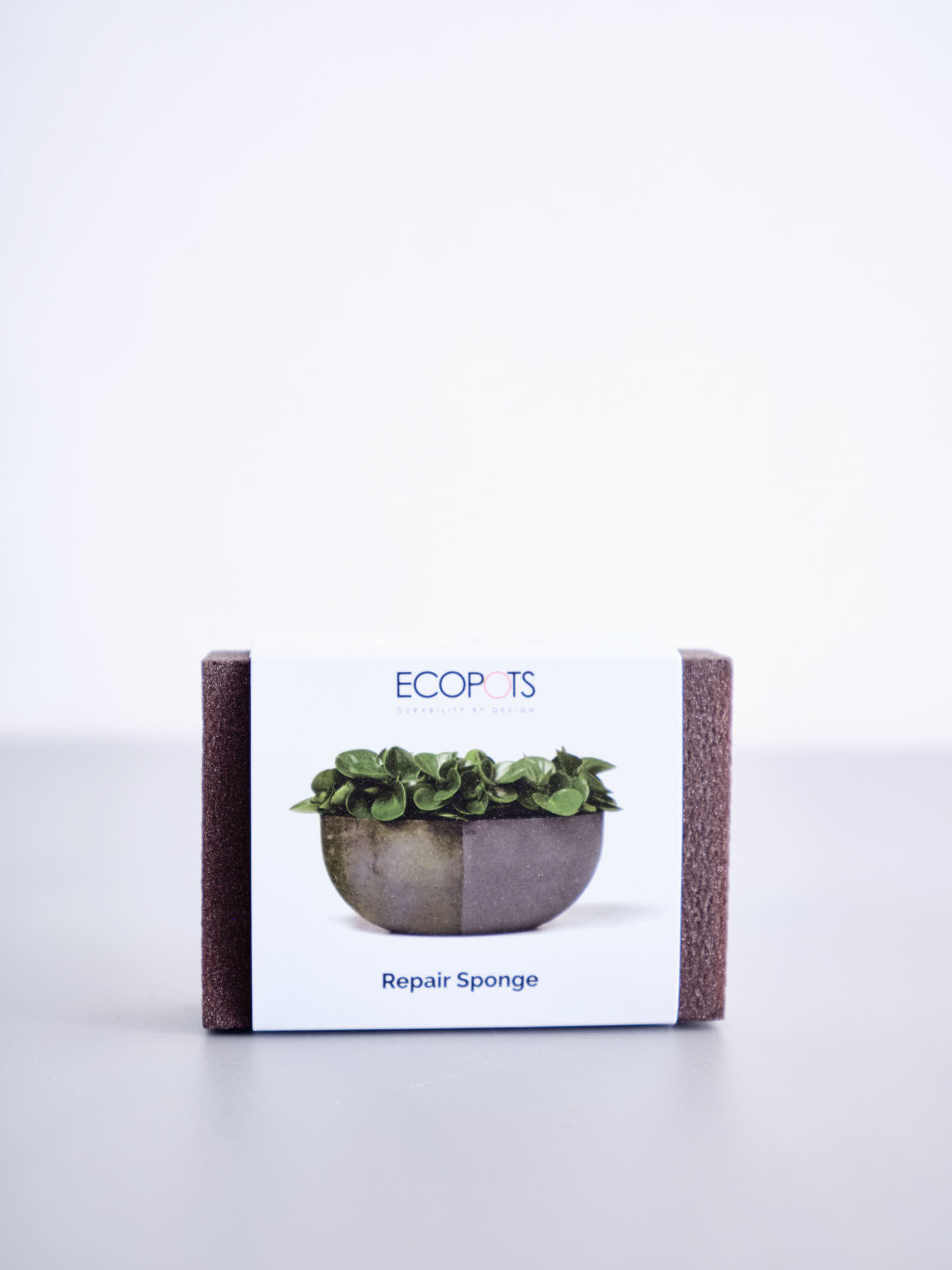 植木鉢「ECOPOTS」についた傷や、汚れ、シミ、コケなどを簡単に落とせる、専用のヤスリ付きスポンジです。 使い方はただこするだけ。力を入れずとも新品のように鉢を美しく甦らせることができます。 布巾で拭いても落ちない線や、色味の異なる部分が気になるという時にもおすすめです。
