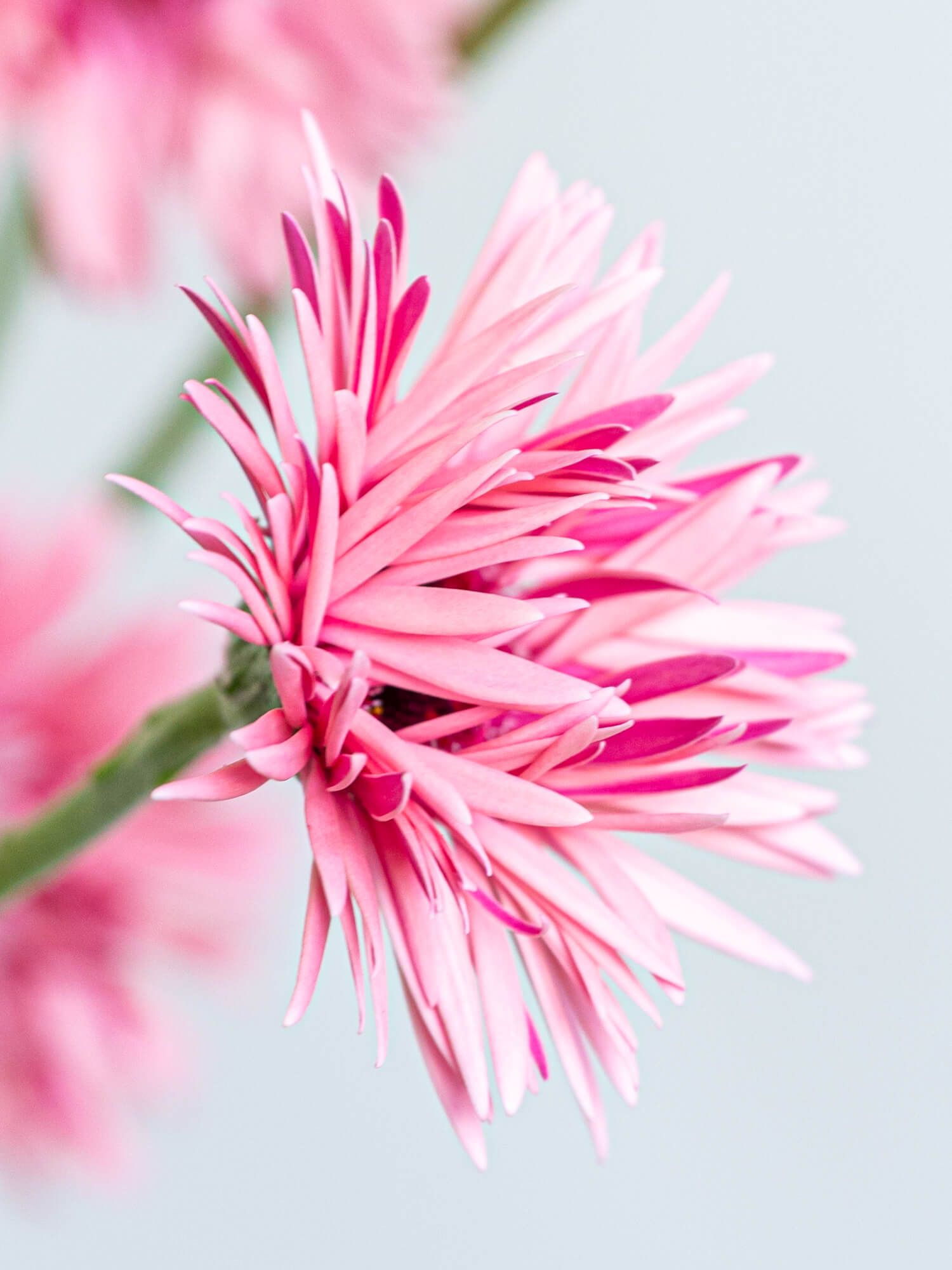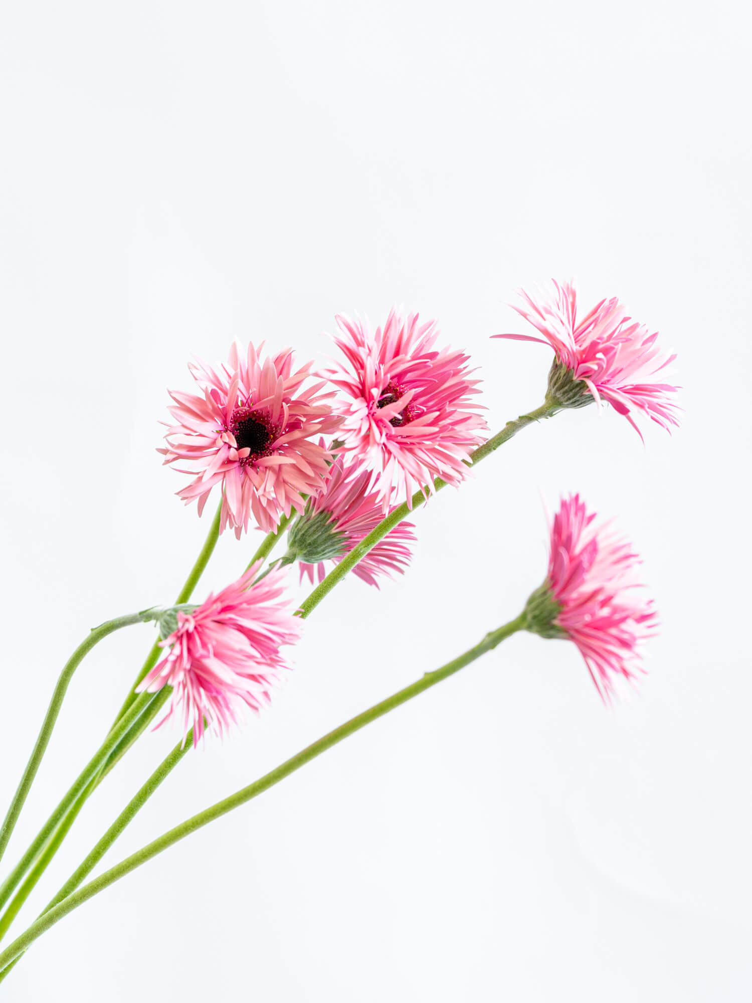 明るいピンク色が可愛らしく、元気な印象を与えます。イベントや日常のアレンジメントで活躍する万能な花材です。