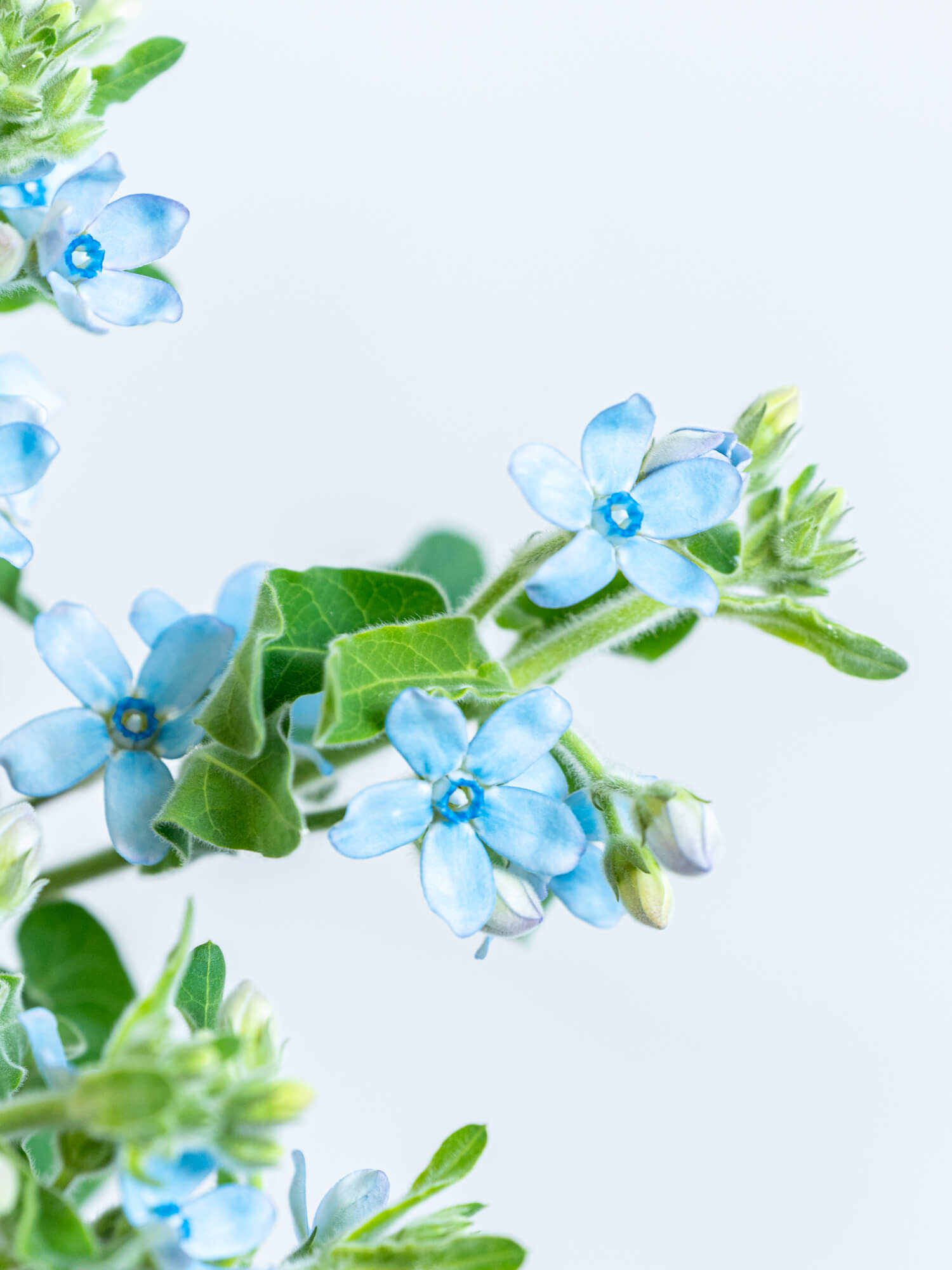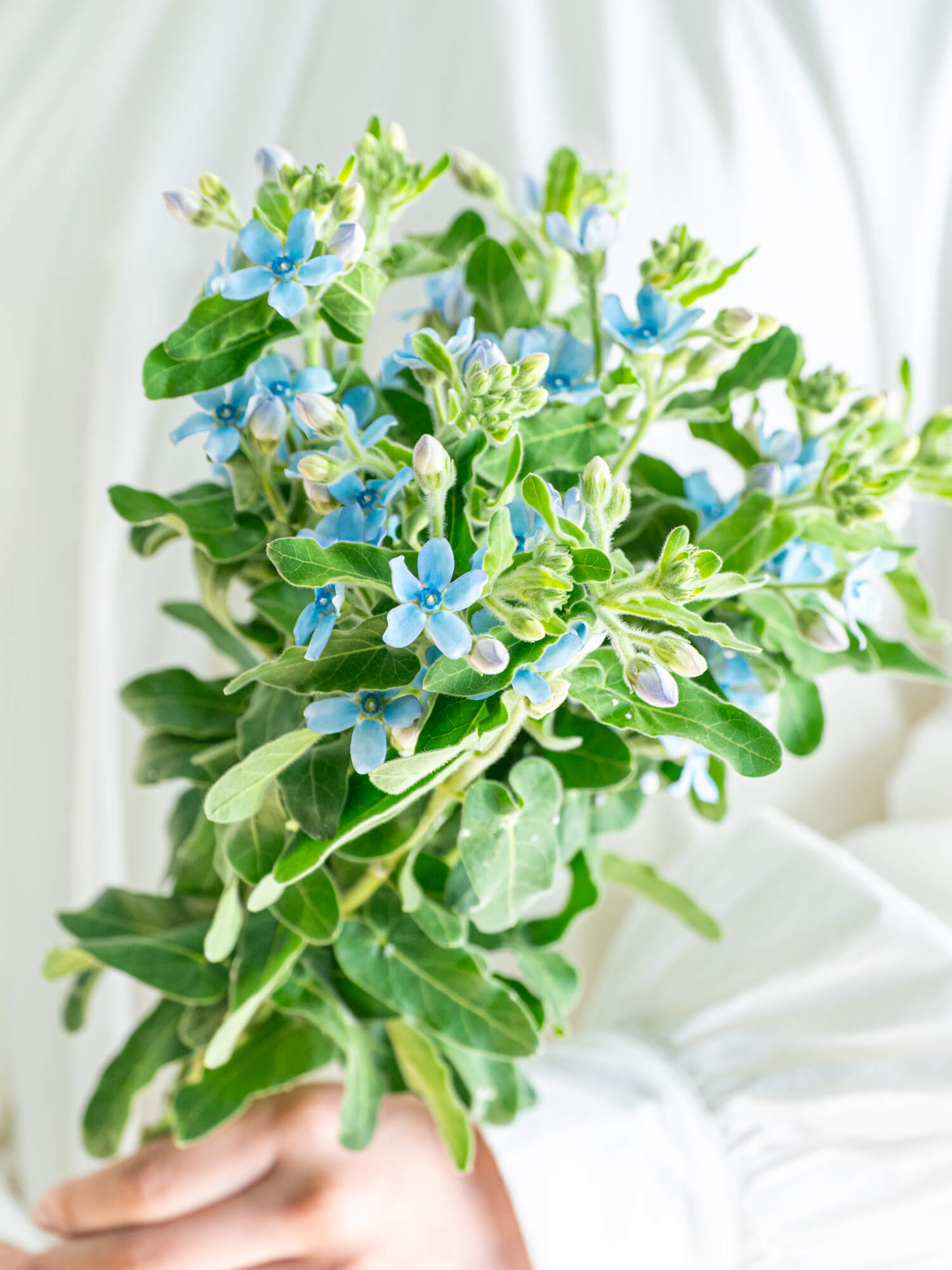 鮮やかな青色が目を引く小花です。ナチュラルなアレンジやリースに適しています。