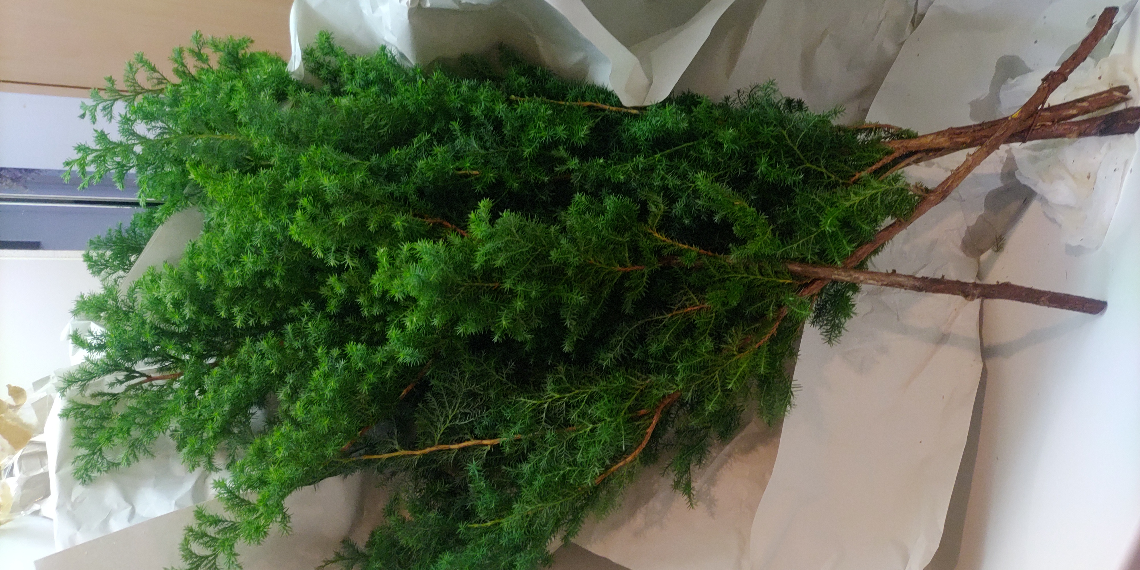 クリスマスリースやスワッグ、フレッシュなグリーンアレンジの土台として特に人気があり、時間とともに色味が落ち着く変化も魅力のひとつです。