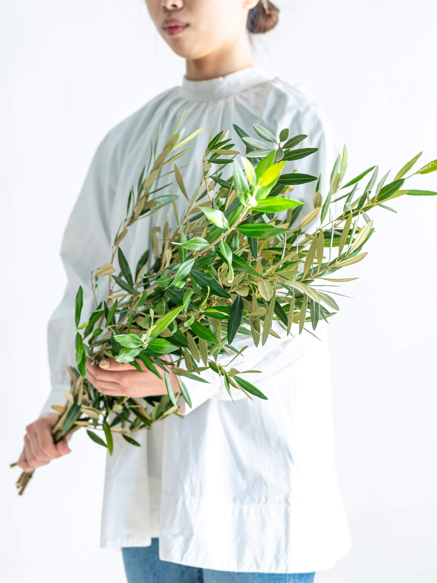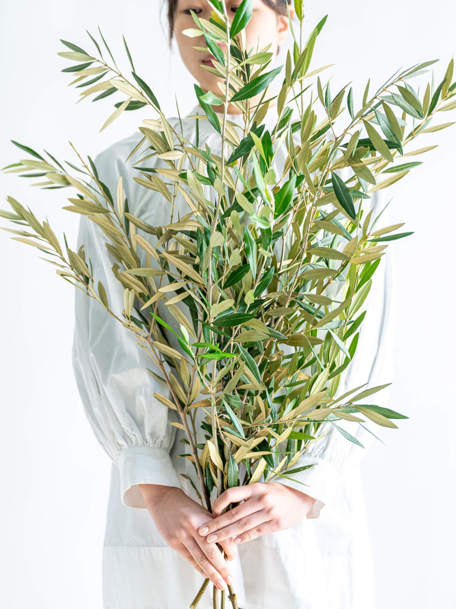 シルバーグリーンの細長い葉が特徴です。ナチュラルなアレンジやリースに最適で、シンプルな美しさがあります。