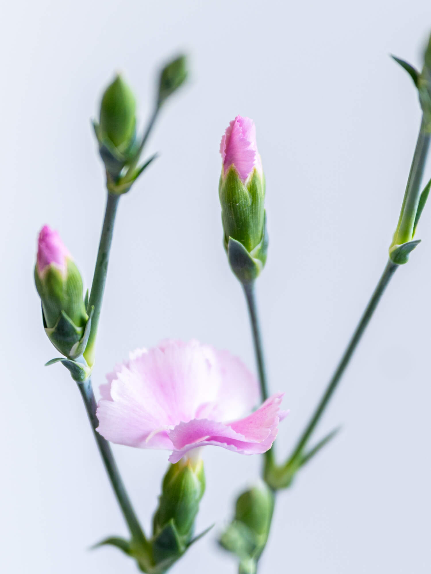 柔らかな淡ピンクの花弁が可憐で上品な印象を与えます。ブライダルやギフト、ナチュラルなアレンジメントに最適です。