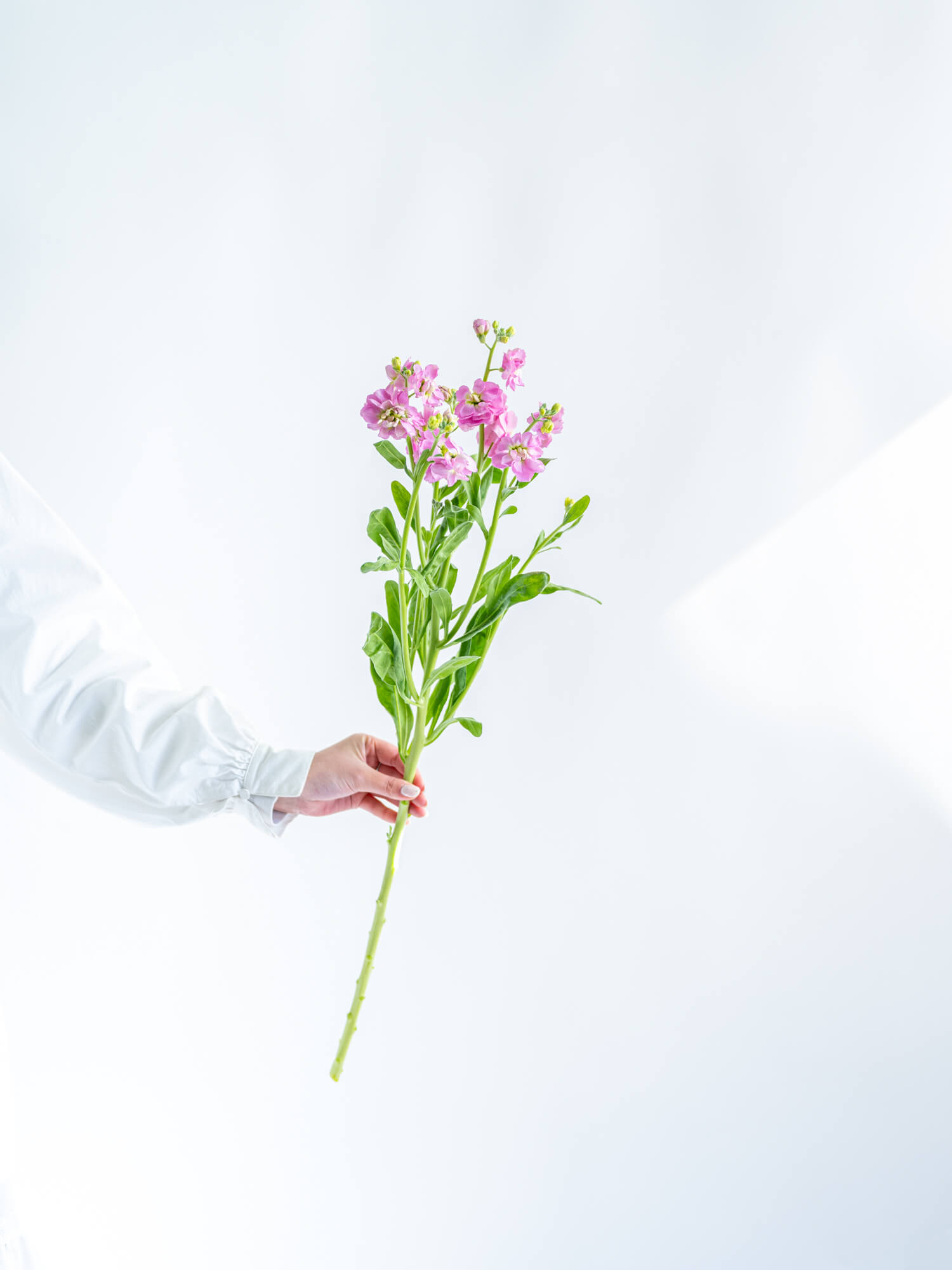 入荷した花は1本ずつ丁寧に水揚げ処理を行い、発送までしっかり管理。斜め切り・ハンマー叩きなど、花に合わせた水揚げを行います。届いた瞬間から、美しく咲く準備が整った状態でお届けします。