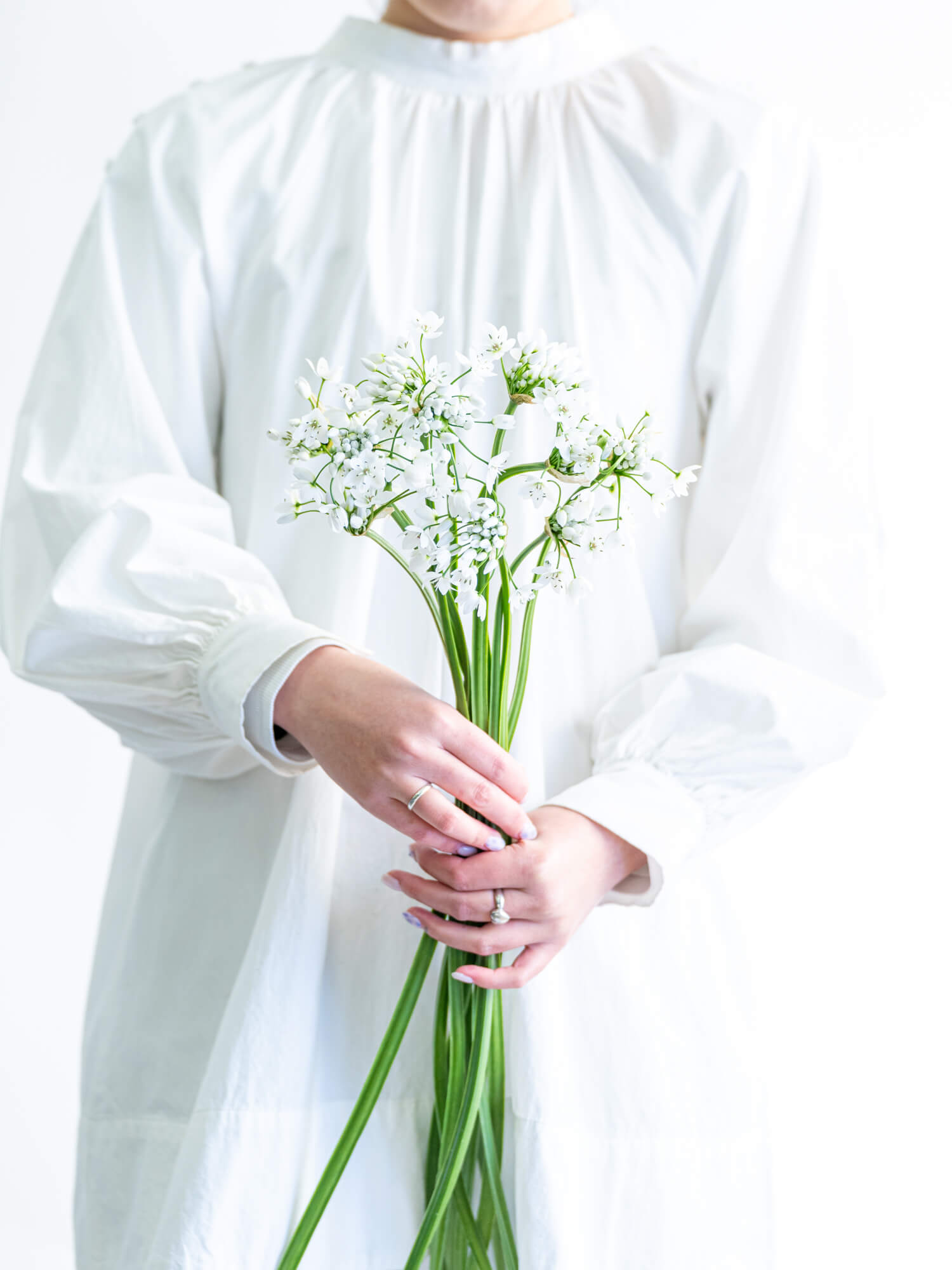 小さな白い花が可憐で繊細な雰囲気を演出します。アレンジメントやギフトに最適な品種です。