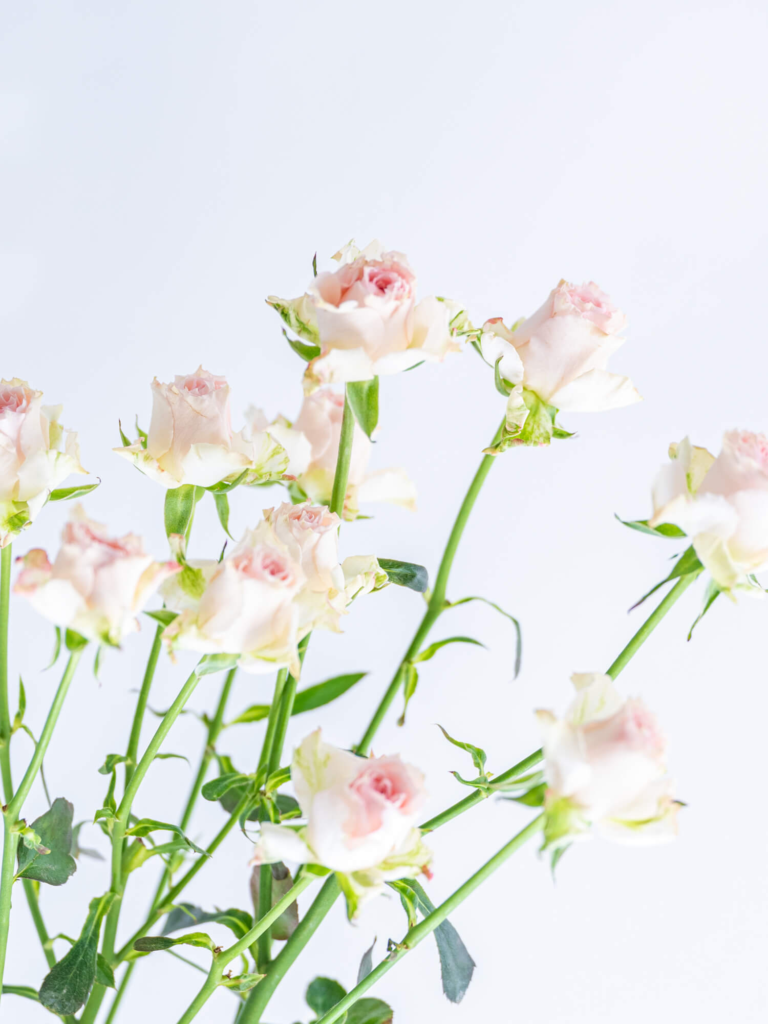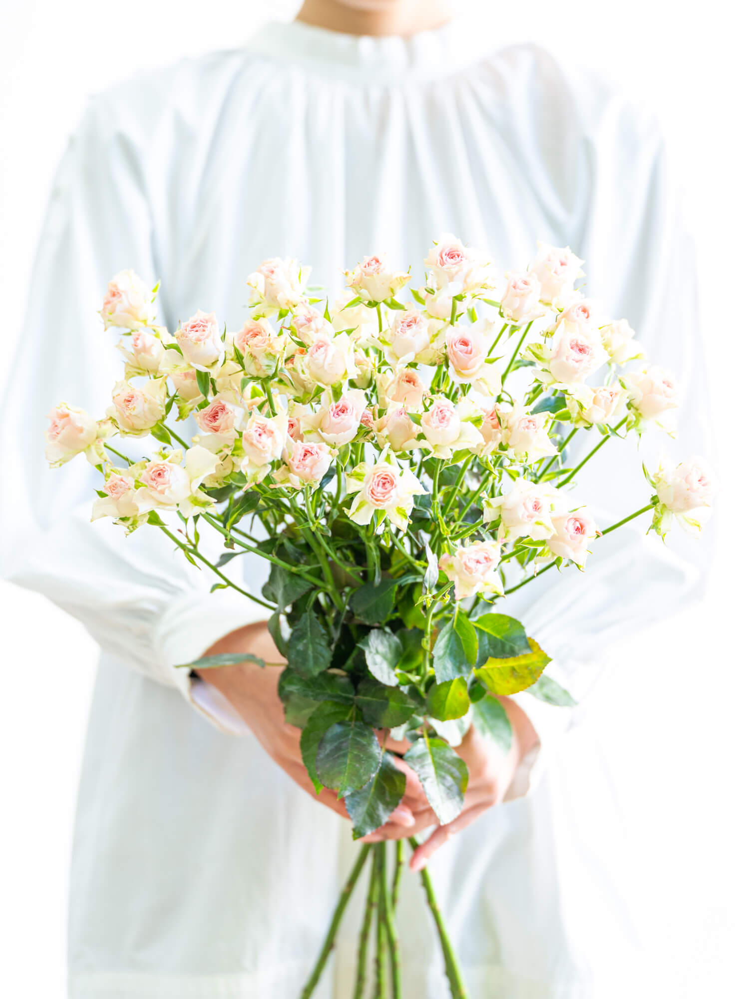 入荷した花は1本ずつ丁寧に水揚げ処理を行い、発送までしっかり管理。斜め切り・ハンマー叩きなど、花に合わせた水揚げを行います。届いた瞬間から、美しく咲く準備が整った状態でお届けします。