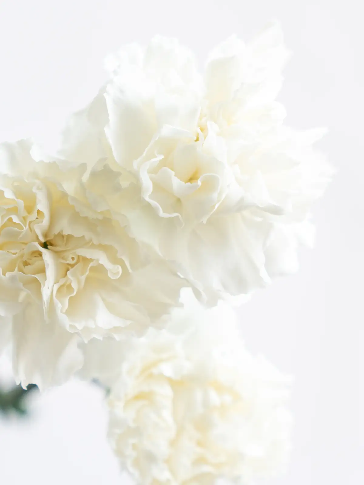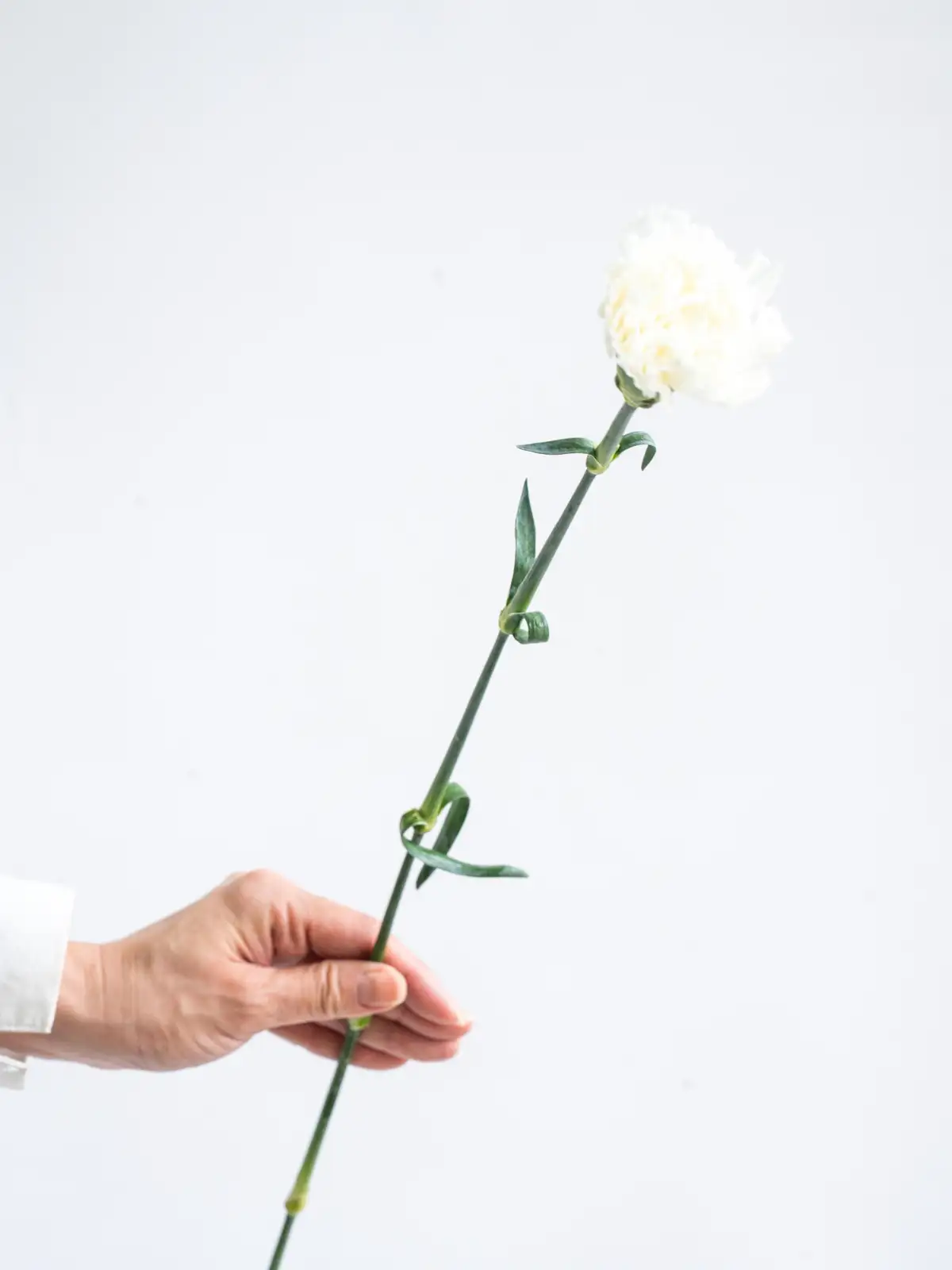 やわらかな白色が清楚で上品な印象のカーネーション。ギフトやフォーマルなアレンジに最適です。