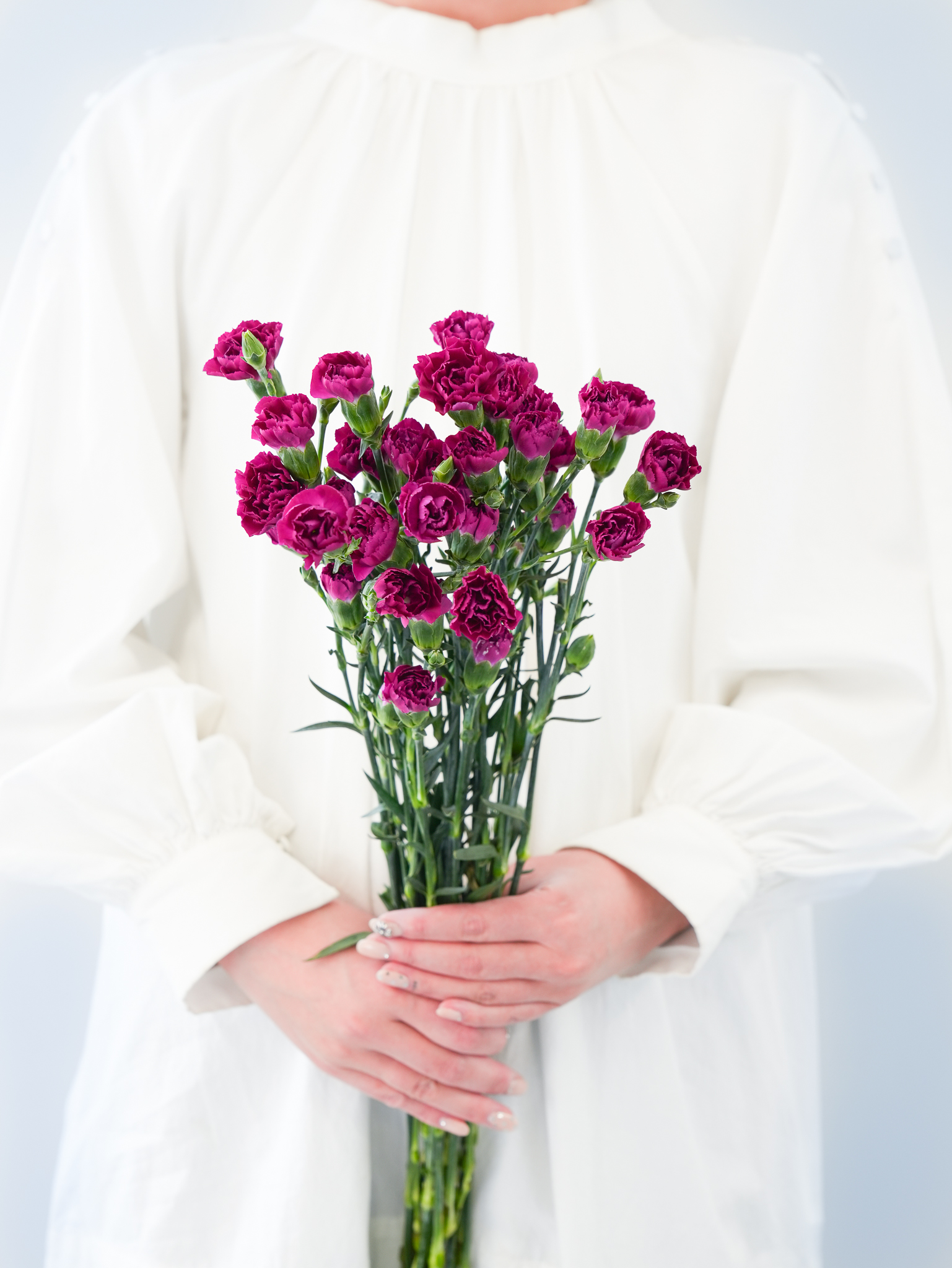 入荷した花は1本ずつ丁寧に水揚げ処理を行い、発送までしっかり管理。斜め切り・ハンマー叩きなど、花に合わせた水揚げを行います。届いた瞬間から、美しく咲く準備が整った状態でお届けします。