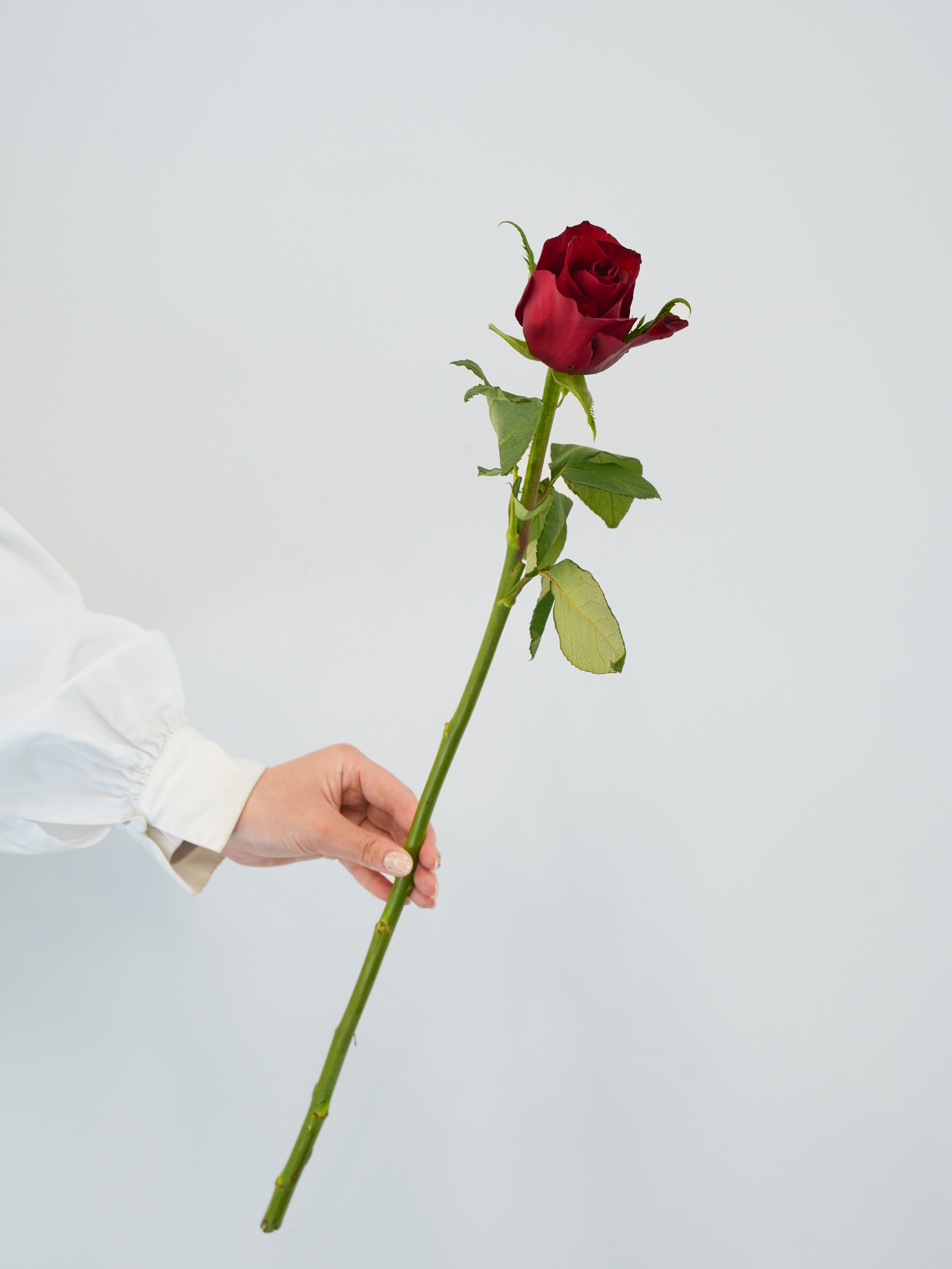 鮮やかな赤が美しいスタンダードバラ。情熱的な印象で、記念日やプロポーズなどに最適です。