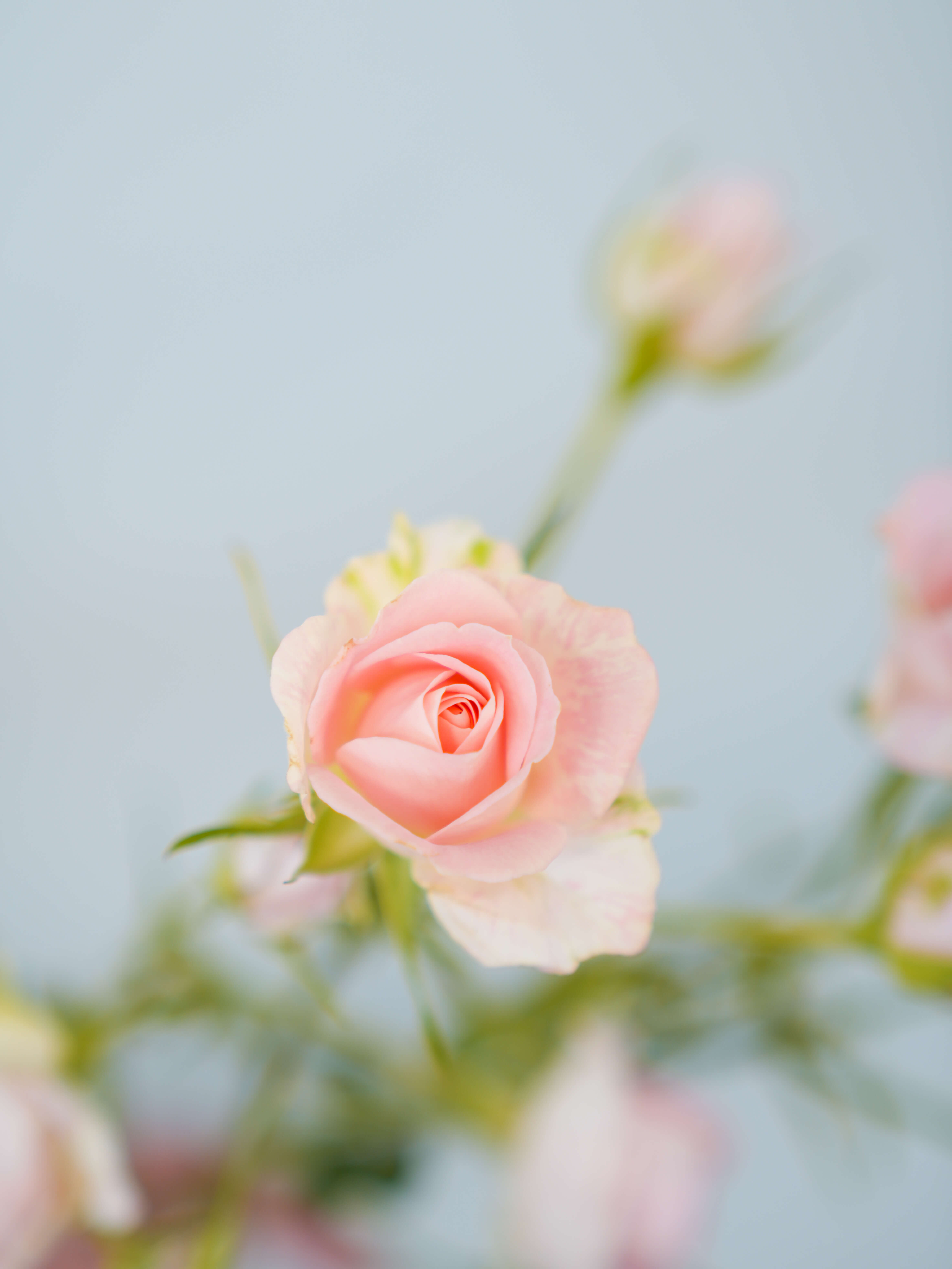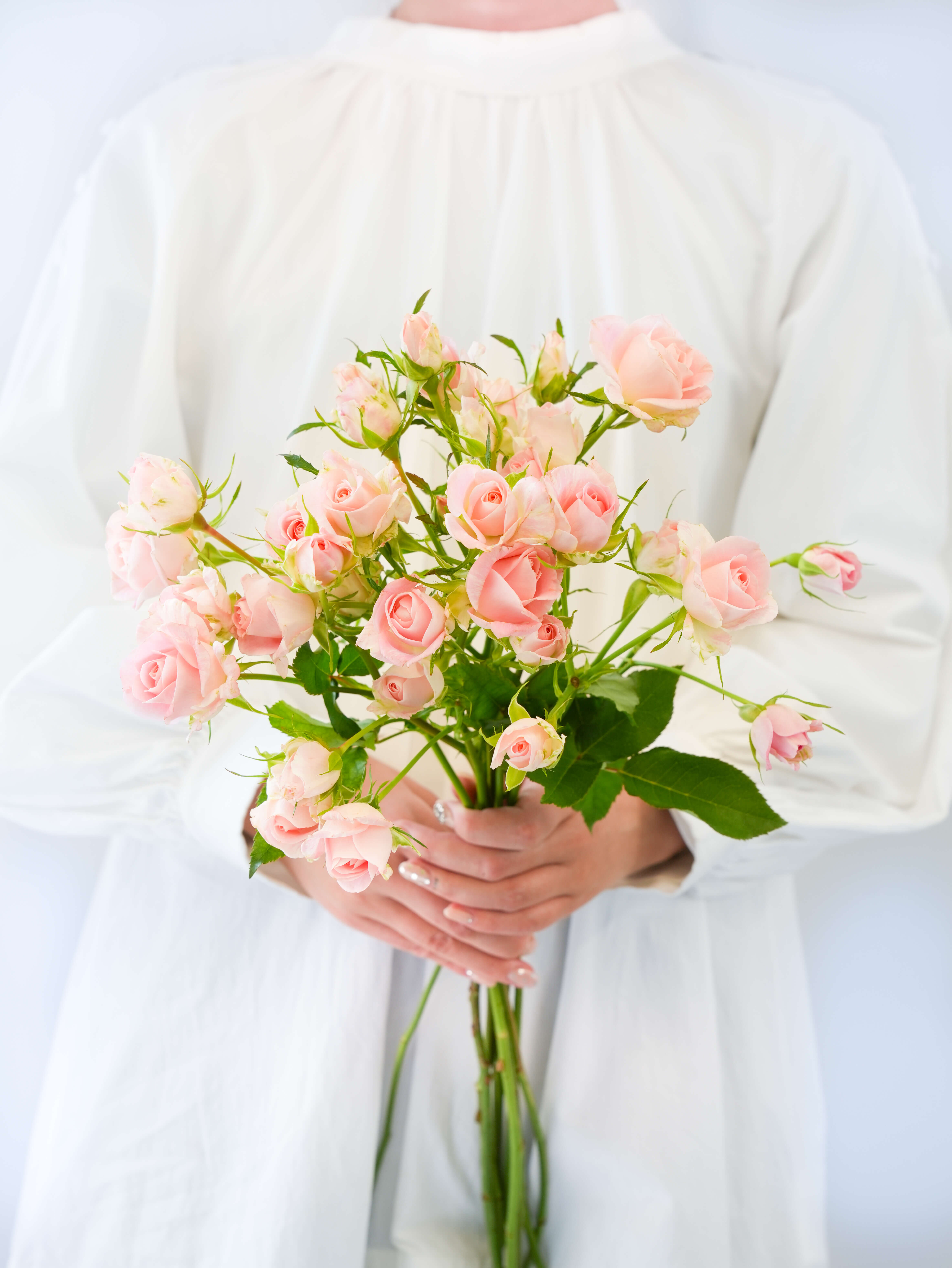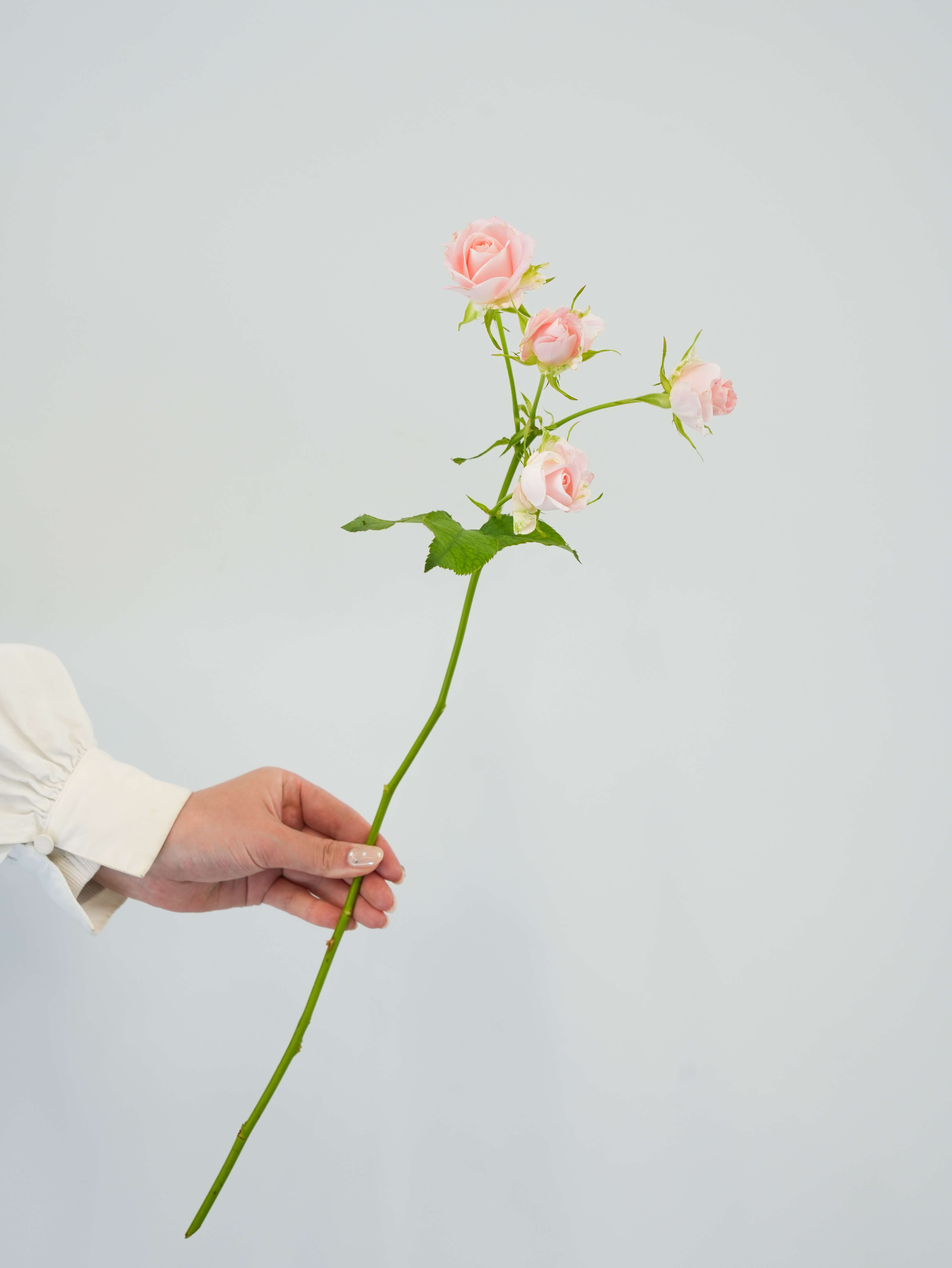 発色の良いピンクのスプレーバラ。可愛らしい印象で、明るいアレンジやギフトにおすすめです。