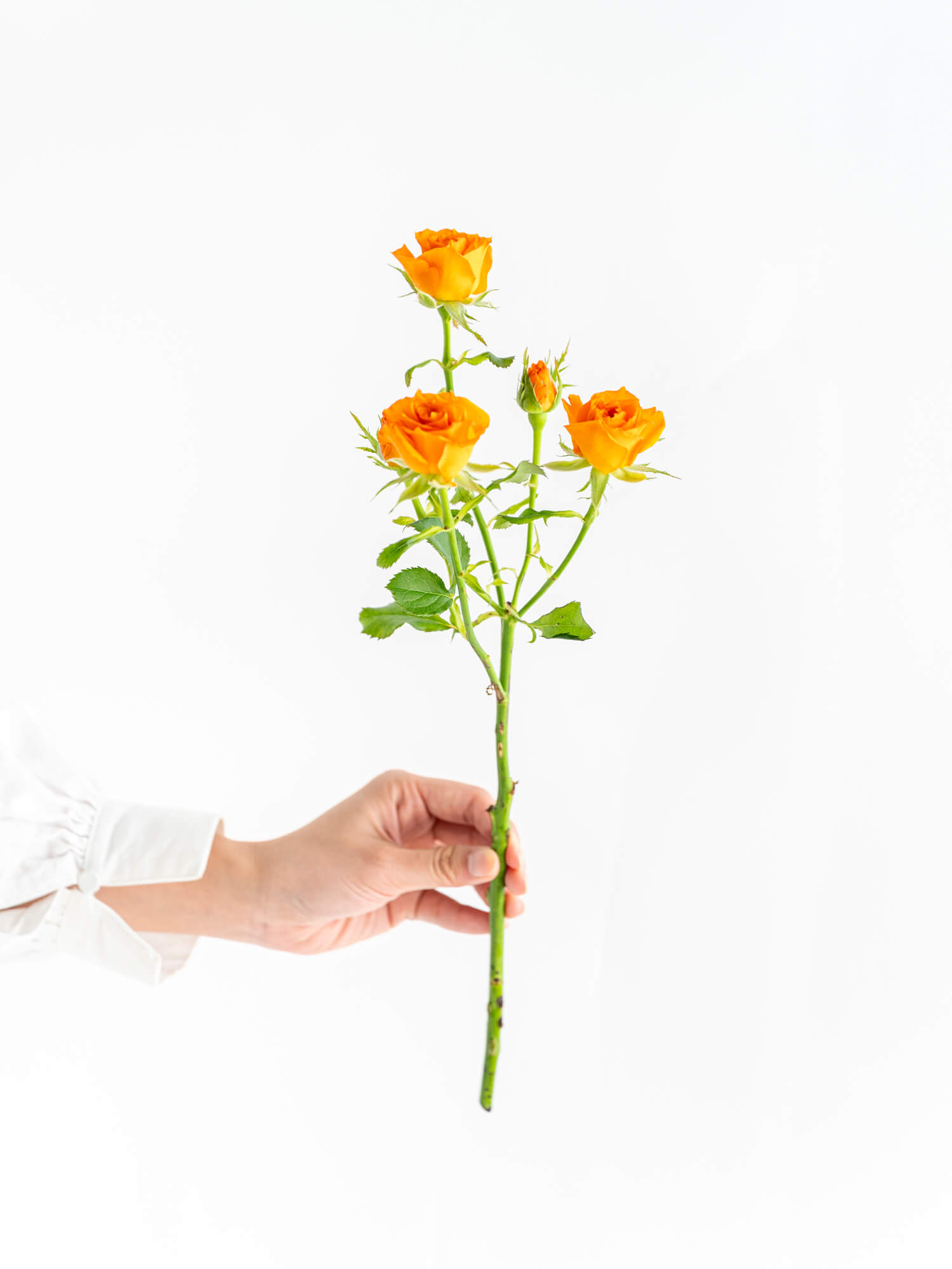 SPバラは1本に複数輪が咲くスプレータイプで、色合いや咲き方に幅があり、ギフトやアレンジに使いやすい品種です。ボリュームは入荷時期・産地によりイメージと異なる場合がございます。予めお含みおきください。