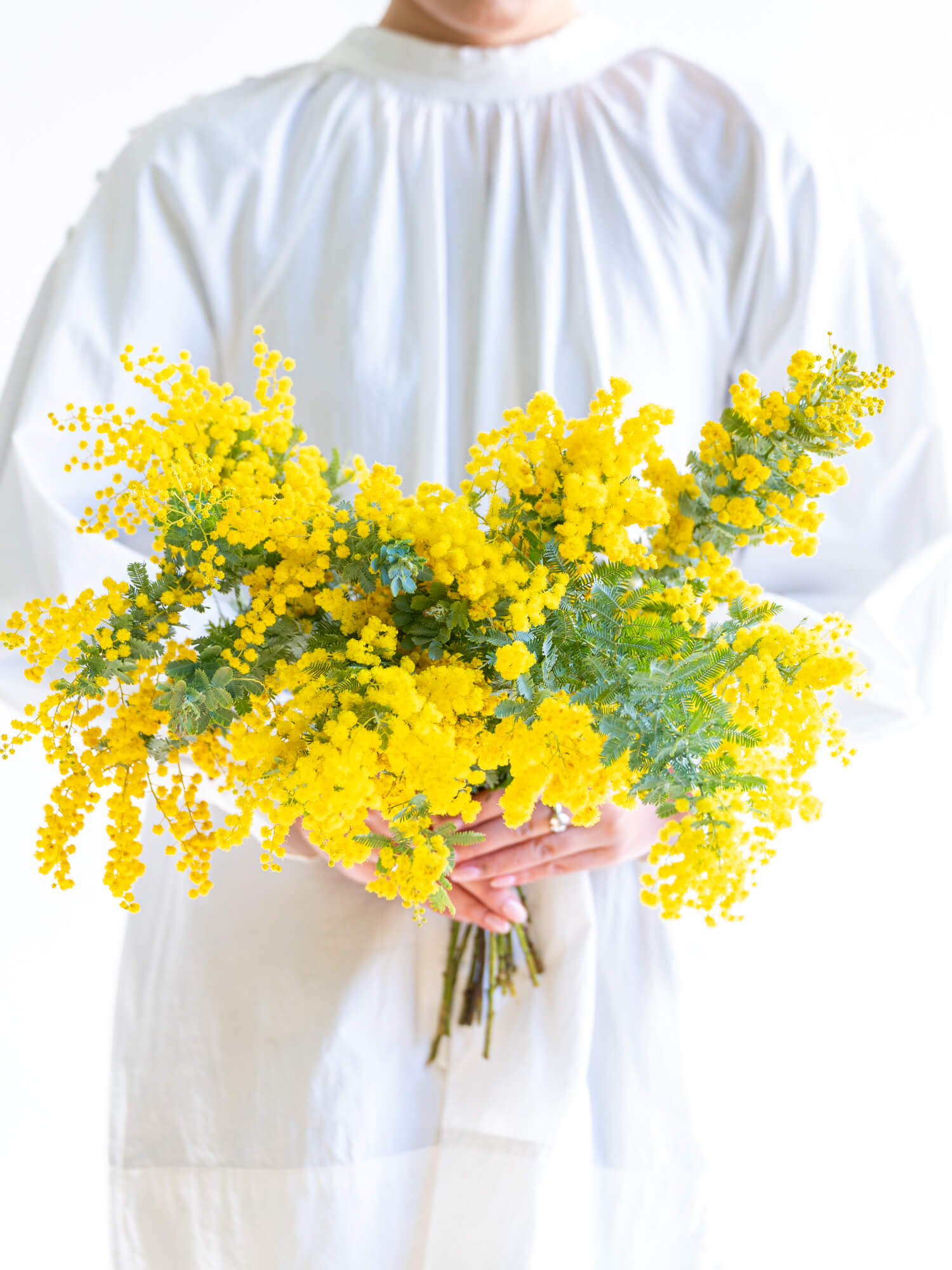 アカシアは小花が房状に咲く個性的な花材で、軽やかで春らしい雰囲気のアレンジに適しています。品種により形や色の濃淡が異なります。ボリュームは入荷時期・産地によりイメージと異なる場合がございます。予めお含みおきください。