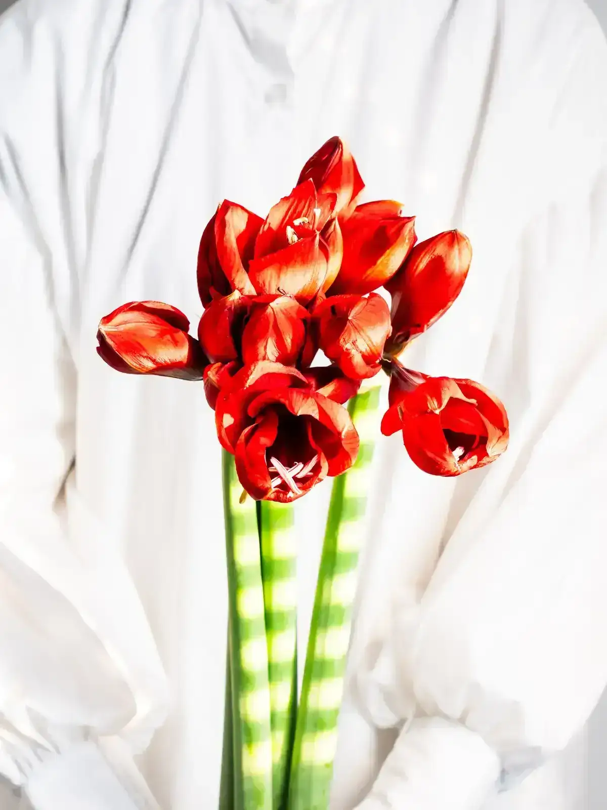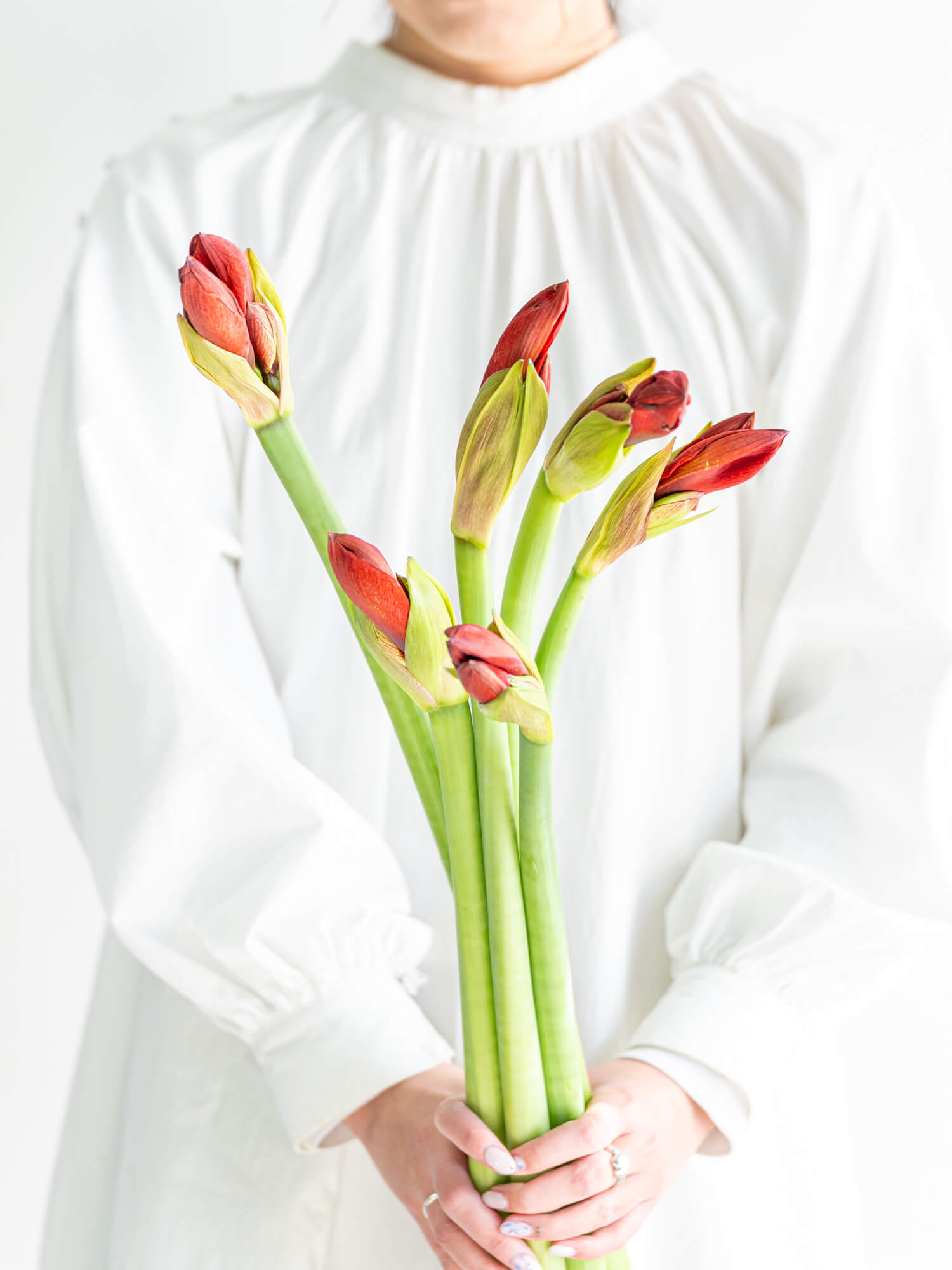 アマリリスは大輪で存在感のある花姿が特徴。色味や咲き方により印象が異なり、華やかな空間づくりに活躍します。ボリュームは入荷時期・産地によりイメージと異なる場合がございます。予めお含みおきください。