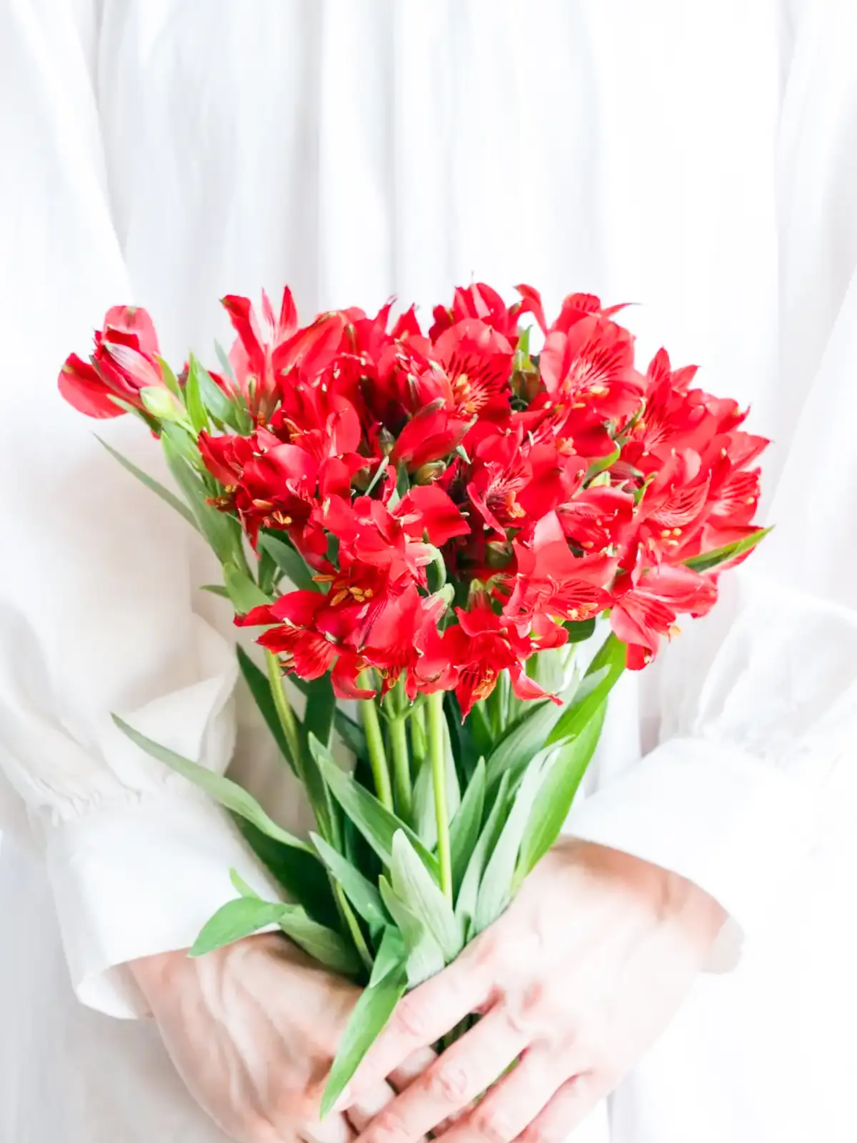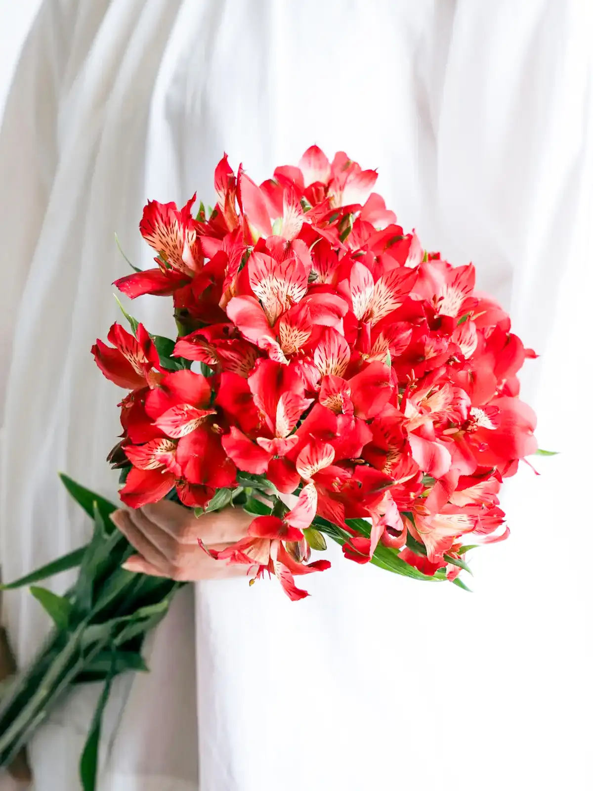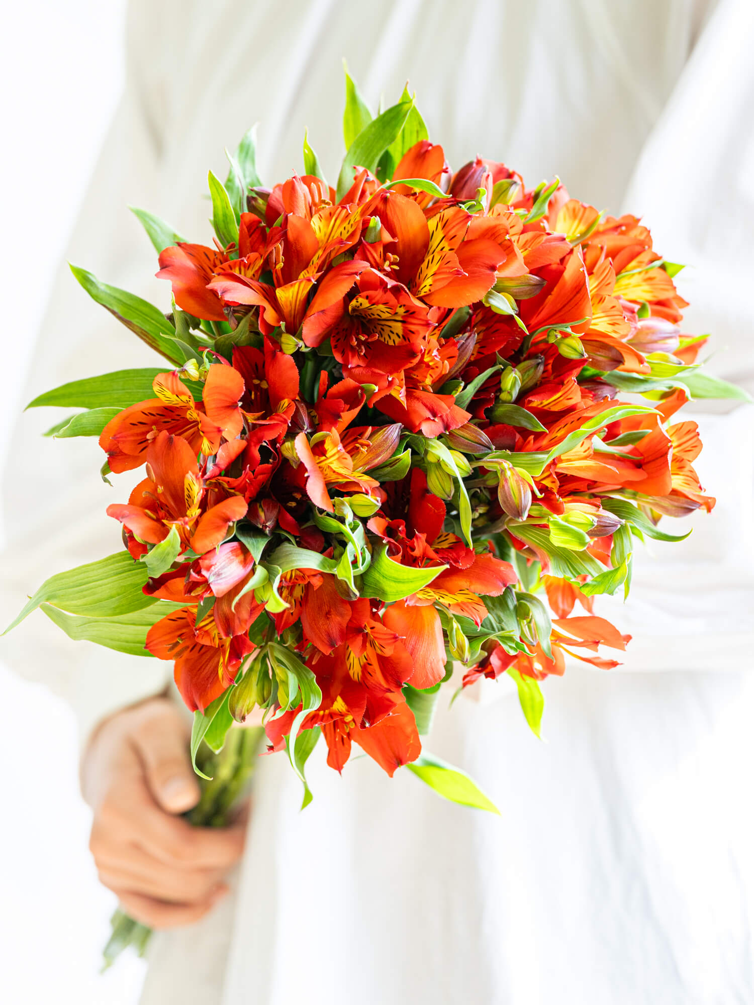 深みのある色味を含むアルストロメリアは、華やかなアレンジにボリュームとインパクトを添える花材です。ボリュームは入荷時期・産地によりイメージと異なる場合がございます。予めお含みおきください。 ※夏場は気温上昇の影響で、花もちが通常より短くなる場合がございます。 ご購入の際は、品質保持のためクール便のご利用を推奨いたします。