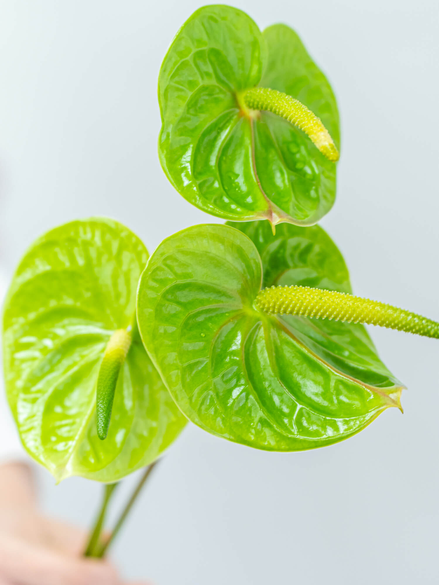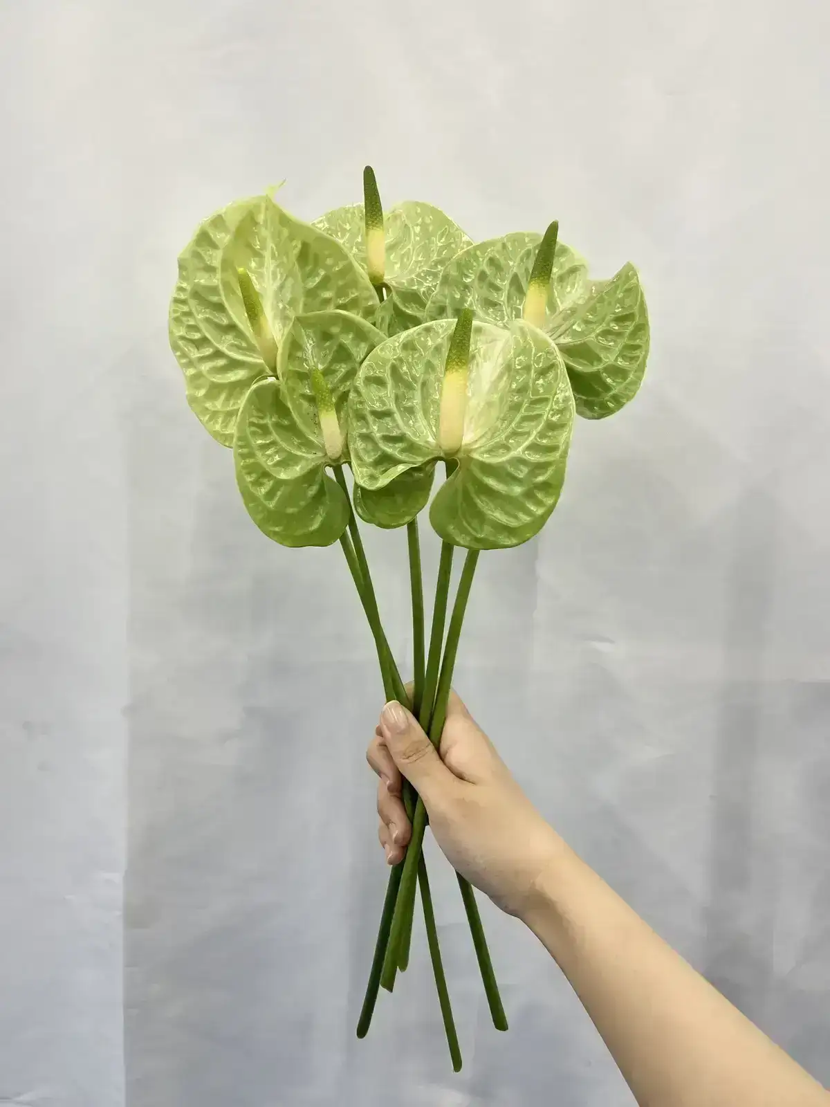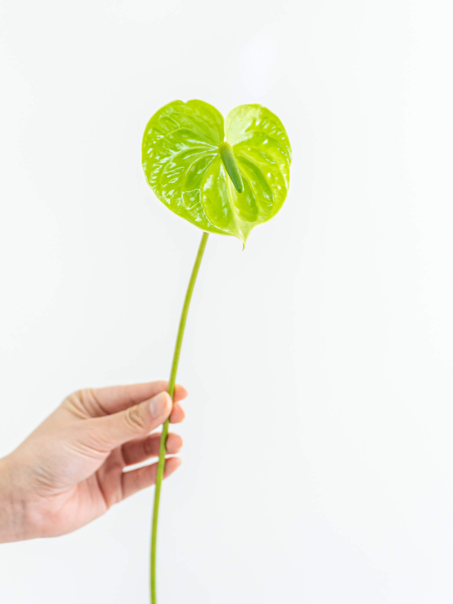 アンスリウムは光沢のある花びらが特徴で、グリーン系はナチュラルでスタイリッシュな印象のアレンジに適しています。ボリュームは入荷時期・産地によりイメージと異なる場合がございます。予めお含みおきください。 ※アンスリウムは長さに個体差がございます。 ご注文の際は、ある程度の長さにばらつきがあることをあらかじめご理解ください。