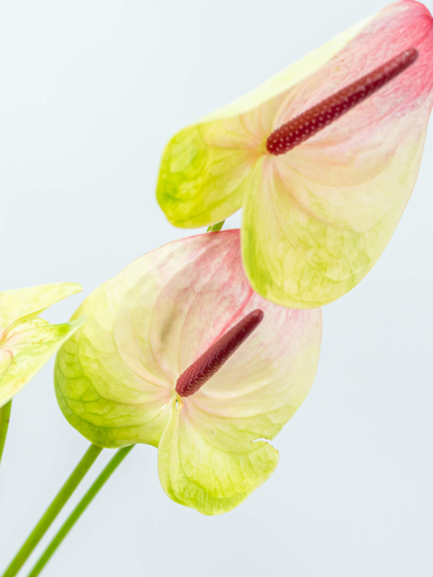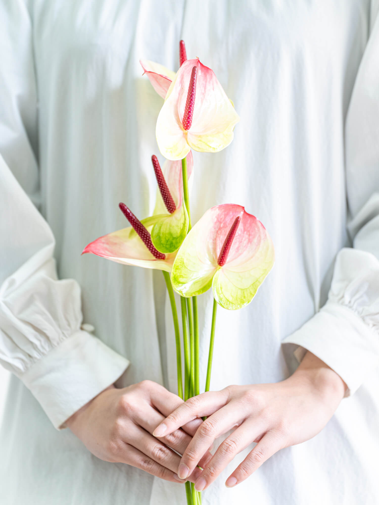 複色のアンスリウムは印象的な花姿が魅力で、アート性のあるアレンジや個性的な装花に活躍します。色や模様は品種により異なります。ボリュームは入荷時期・産地によりイメージと異なる場合がございます。予めお含みおきください。 ※アンスリウムは長さに個体差がございます。 ご注文の際は、ある程度の長さにばらつきがあることをあらかじめご理解ください。