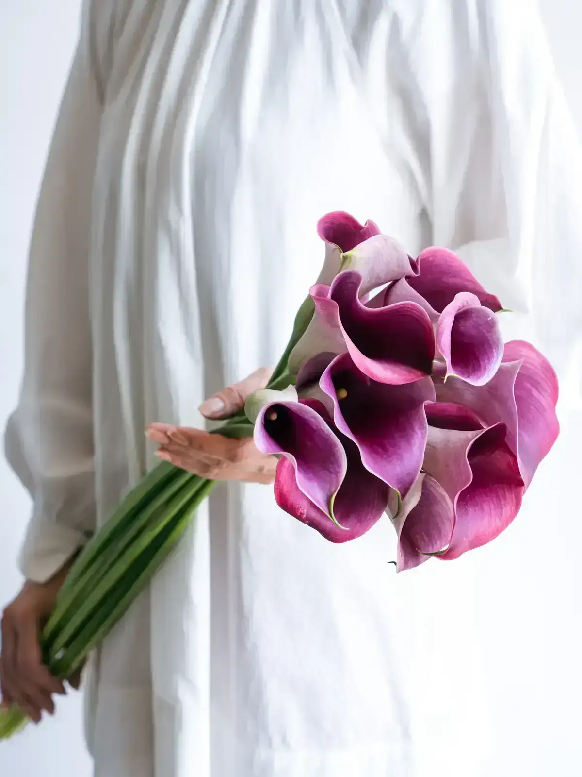 カラーにはシックな色合いもあり、落ち着いたアレンジやフォーマルな装花に深みを与える役割としても活躍します。ボリュームは入荷時期・産地によりイメージと異なる場合がございます。予めお含みおきください。 ※夏場は高温の影響で、生産の段階で色味が薄くなる場合がございます。 自然な個体差としてご理解いただきますようお願いいたします。 ご購入の際は、品質保持のためクール便のご利用を推奨いたします。
