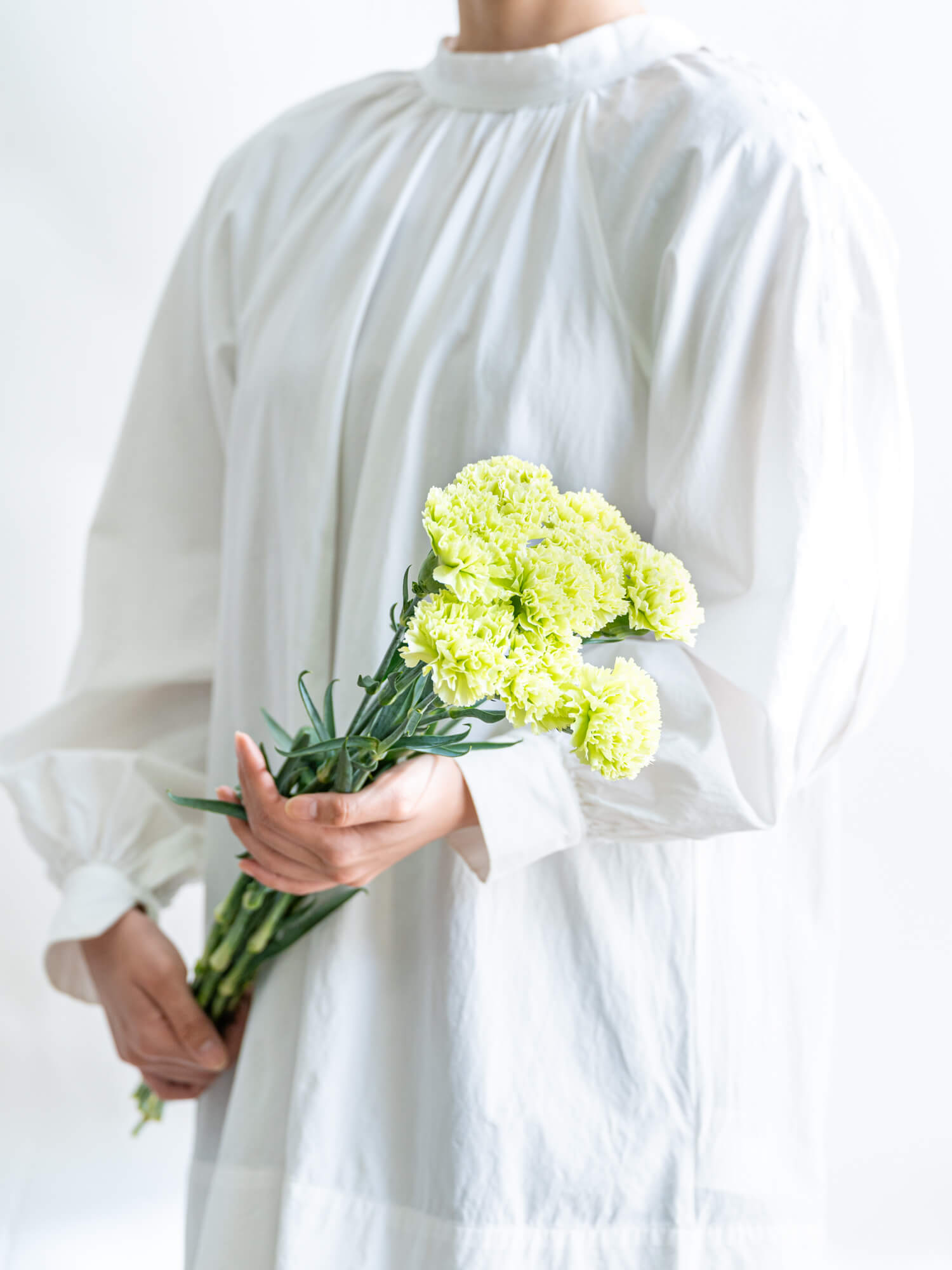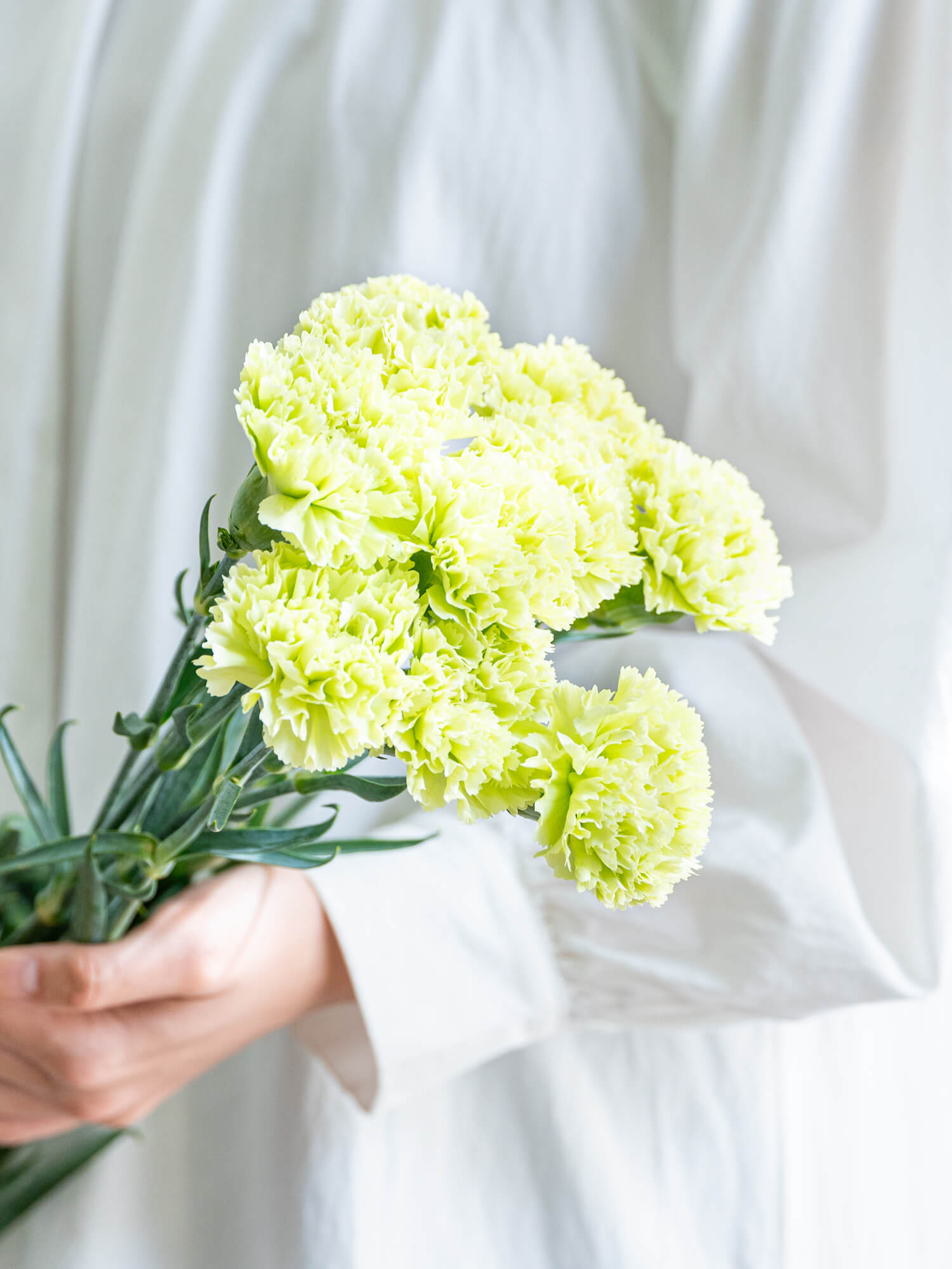 グリーン系を含むカーネーションは、落ち着きとナチュラルさを兼ね備えたアレンジに適しています。色合いには個体差があります。ボリュームは入荷時期・産地によりイメージと異なる場合がございます。予めお含みおきください。