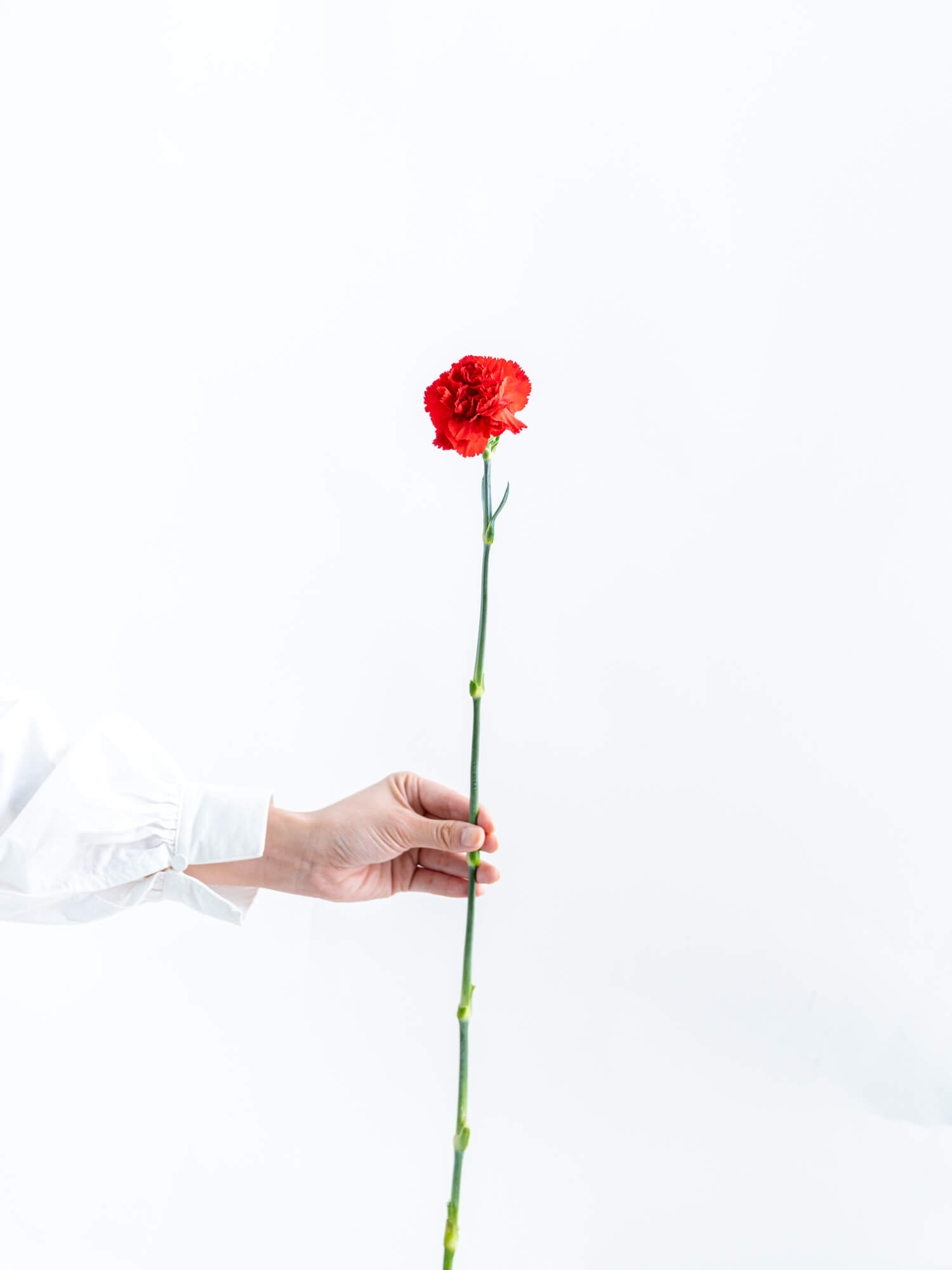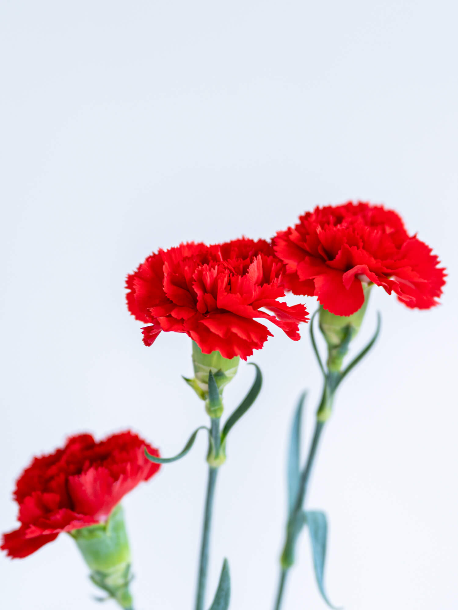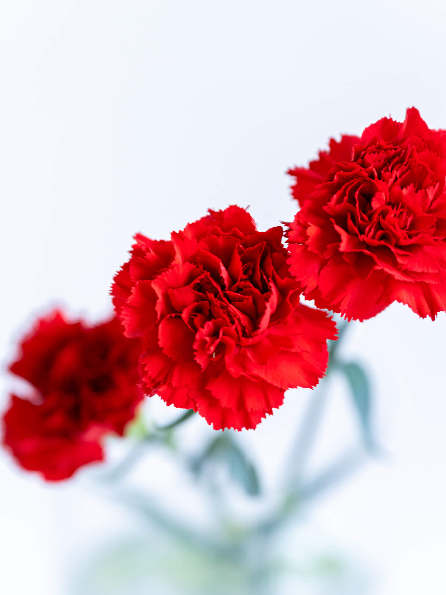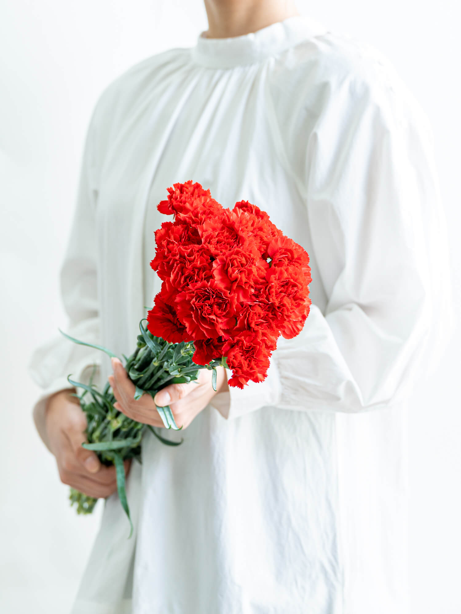 赤系を含むカーネーションは、華やかで力強い印象を持ち、イベント装花やギフトなどで活躍します。品種によって色の濃淡があります。ボリュームは入荷時期・産地によりイメージと異なる場合がございます。予めお含みおきください。