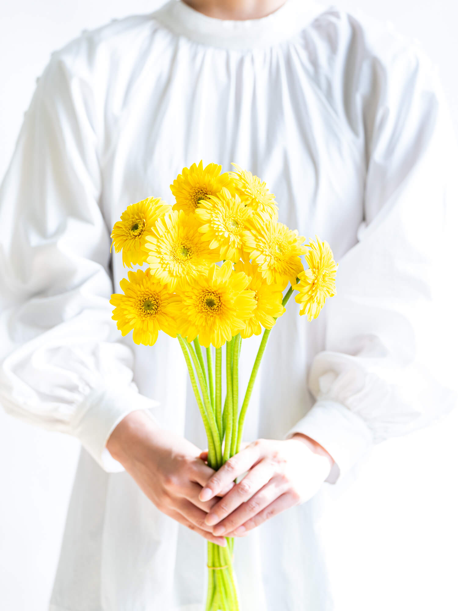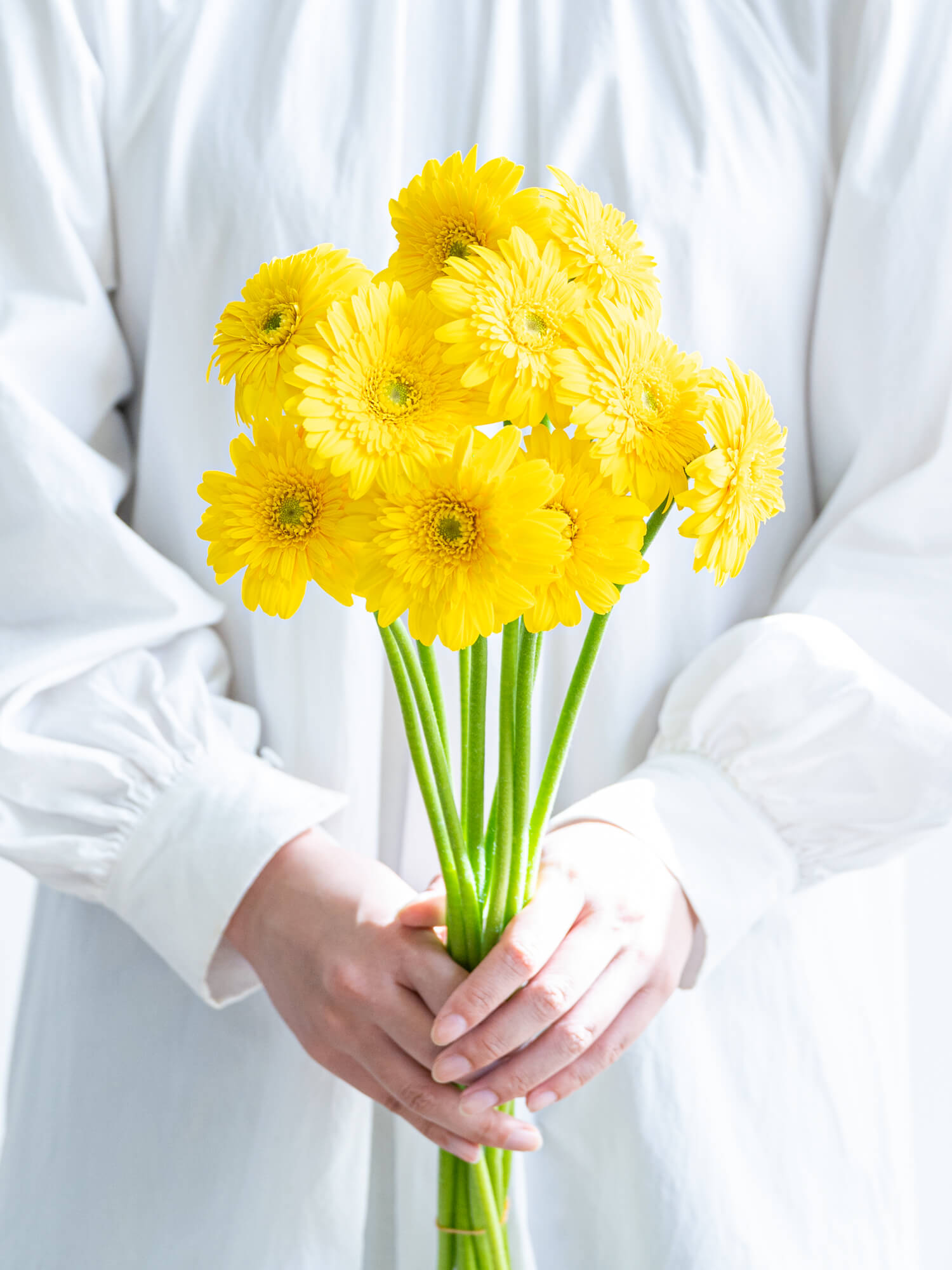 黄色系の一重咲きガーベラは、春夏の装花や元気な印象のギフトにぴったり。色合いや大きさには個体差があります。ボリュームは入荷時期・産地によりイメージと異なる場合がございます。予めお含みおきください。