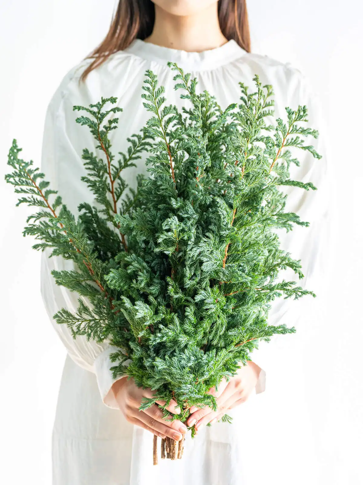 コニファー類は針葉樹特有の香りと質感を持ち、冬のアレンジやナチュラルテイストの装花に使用されます。