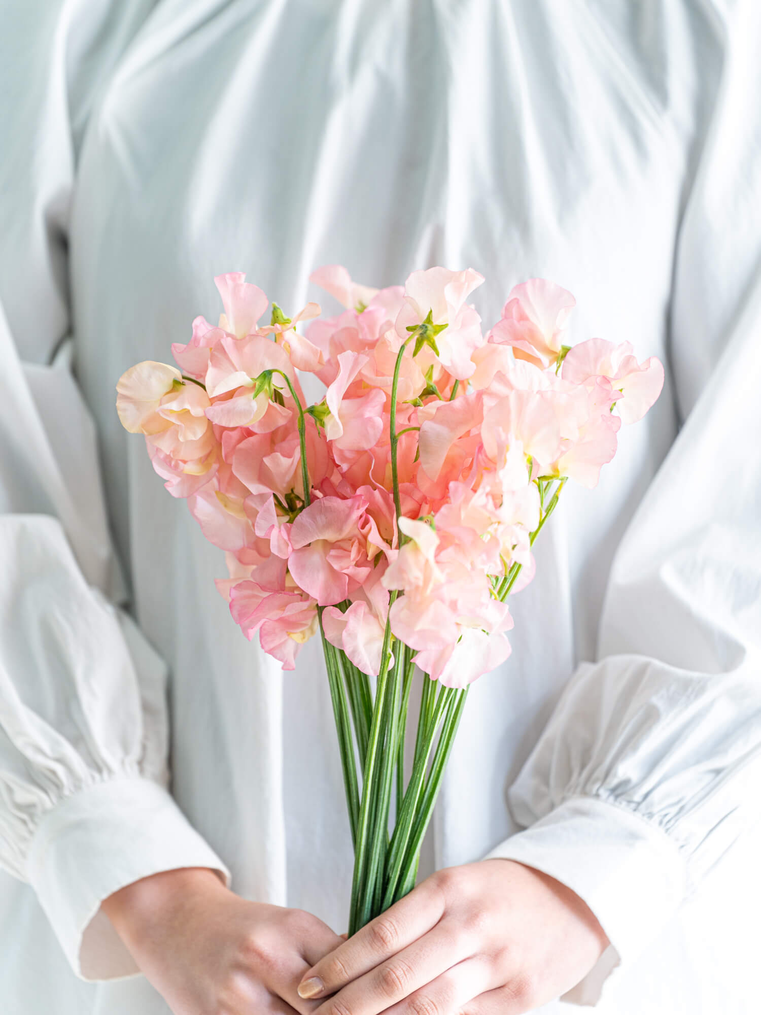 淡い色合いから濃色まで幅広いバリエーションがあるスイートピー。優しい動きと香りが特徴の人気花材です。ボリュームは入荷時期・産地によりイメージと異なる場合がございます。予めお含みおきください。