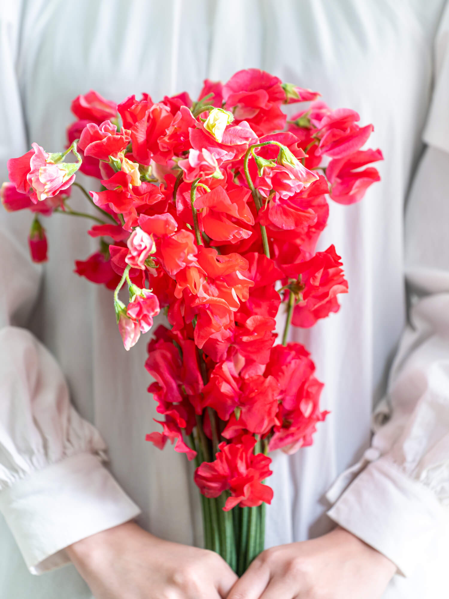 春らしい柔らかさと明るさを演出できるスイートピー。お祝い事やナチュラルなブーケにもおすすめです。ボリュームは入荷時期・産地によりイメージと異なる場合がございます。予めお含みおきください。