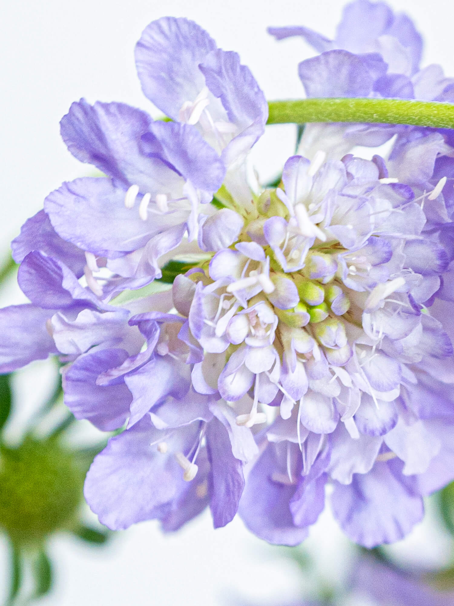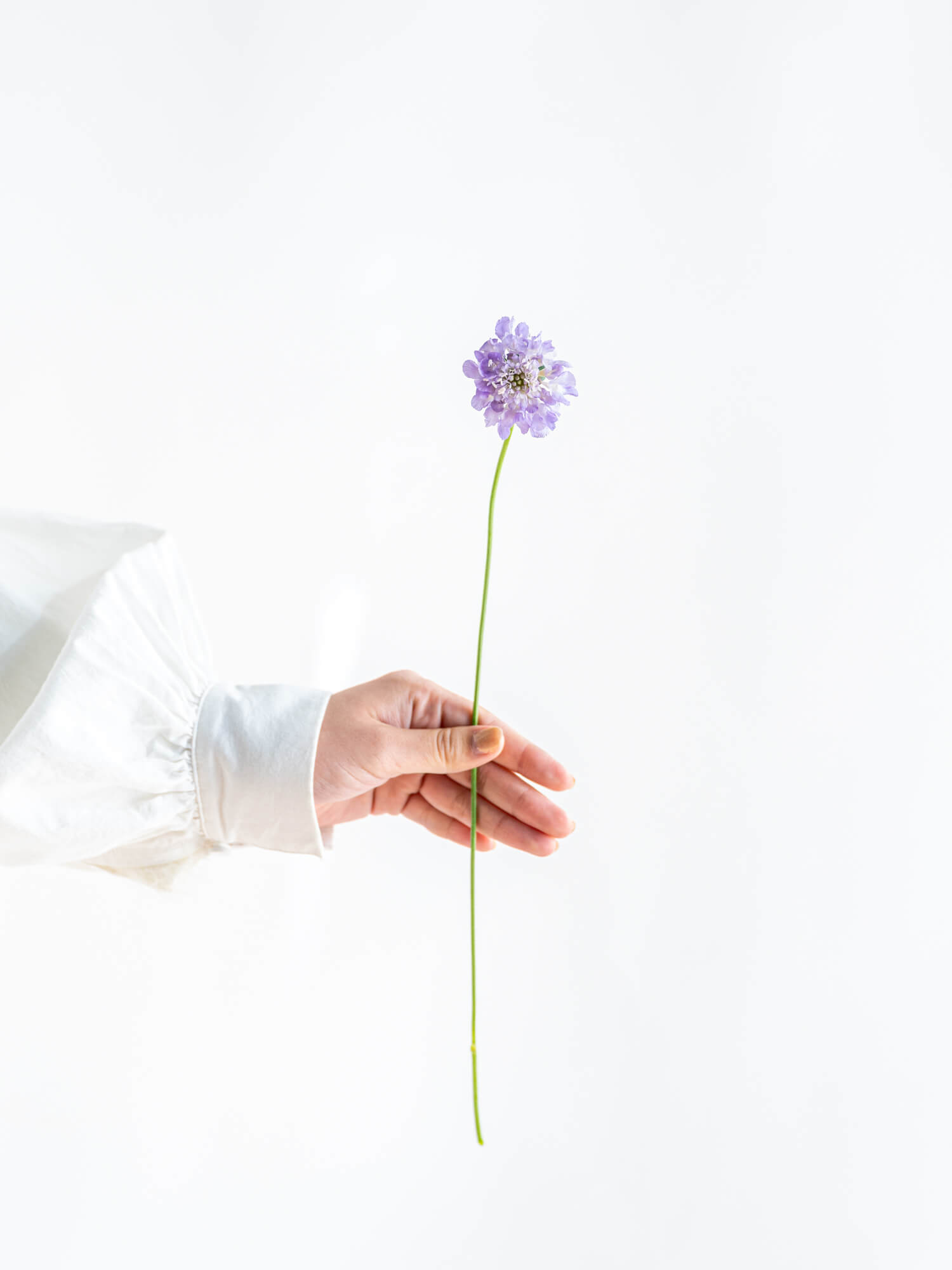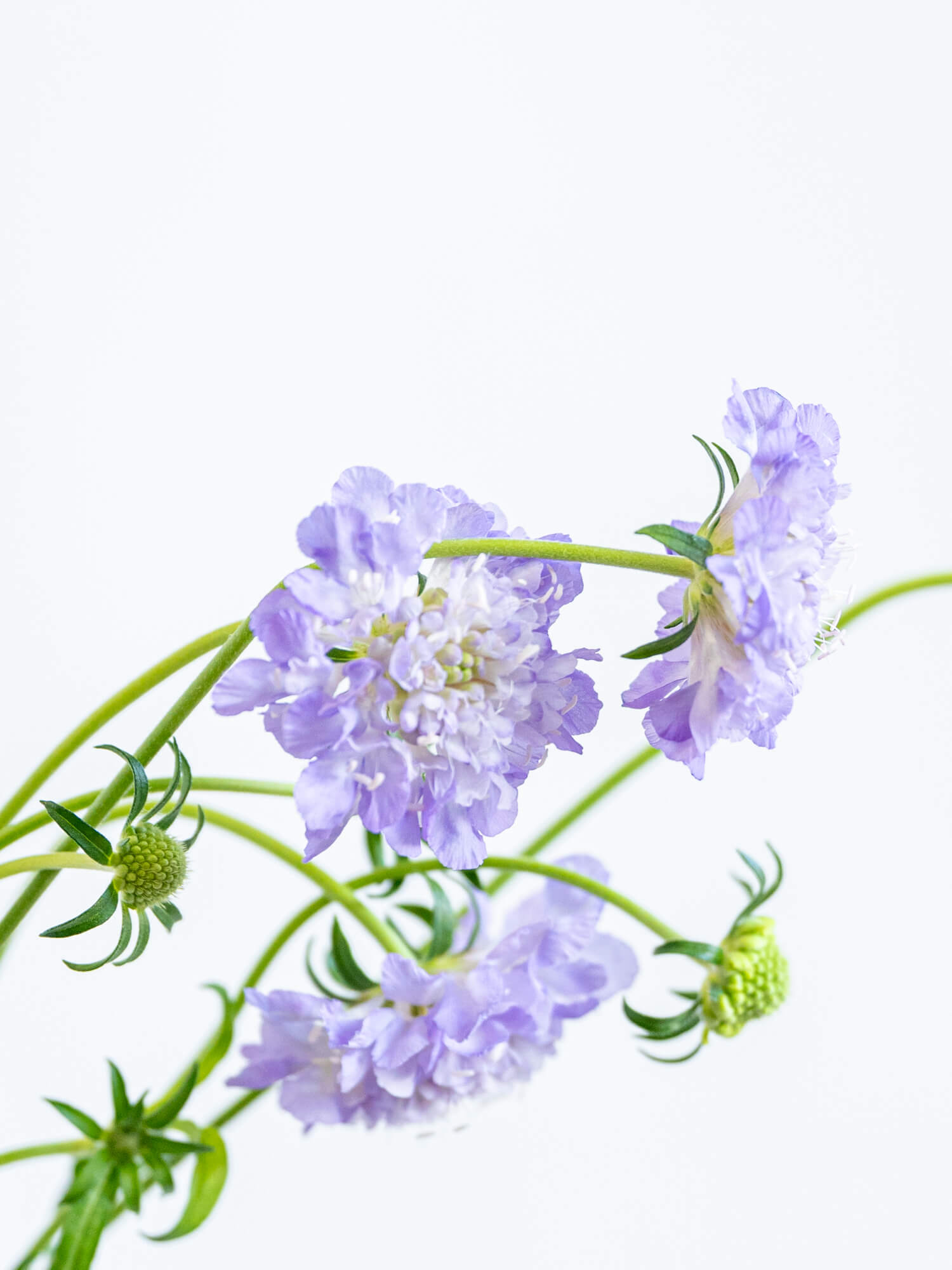 淡い紫色が優雅で繊細な印象を与えるスカビオサ。可憐な花姿はブライダルやギフトアレンジにも適しています。
