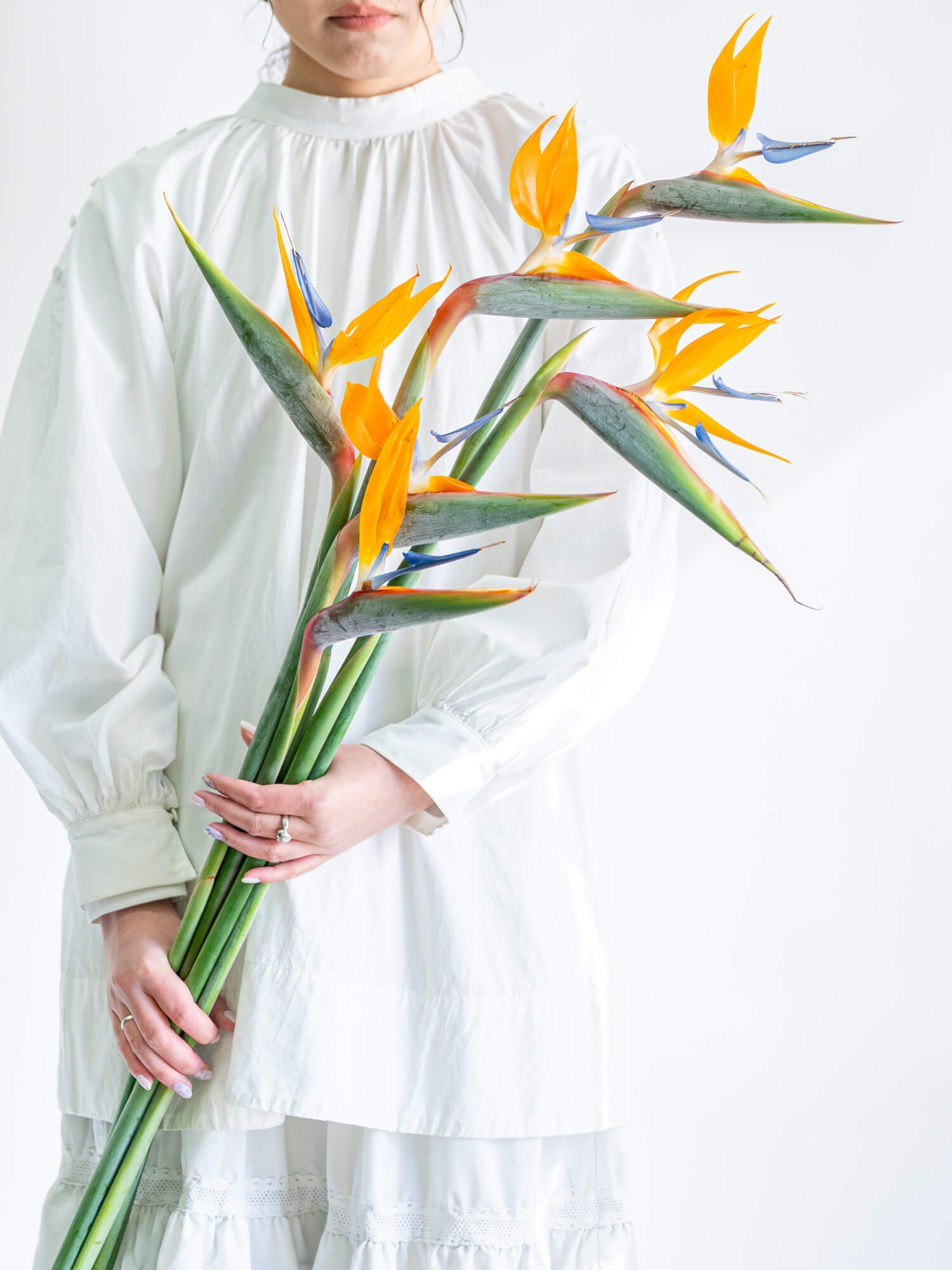 大きな葉と個性的なフォルムが特徴のストレチア。存在感があり、店舗装飾や南国風アレンジに用いられます。ボリュームは入荷時期・産地によりイメージと異なる場合がございます。予めお含みおきください。