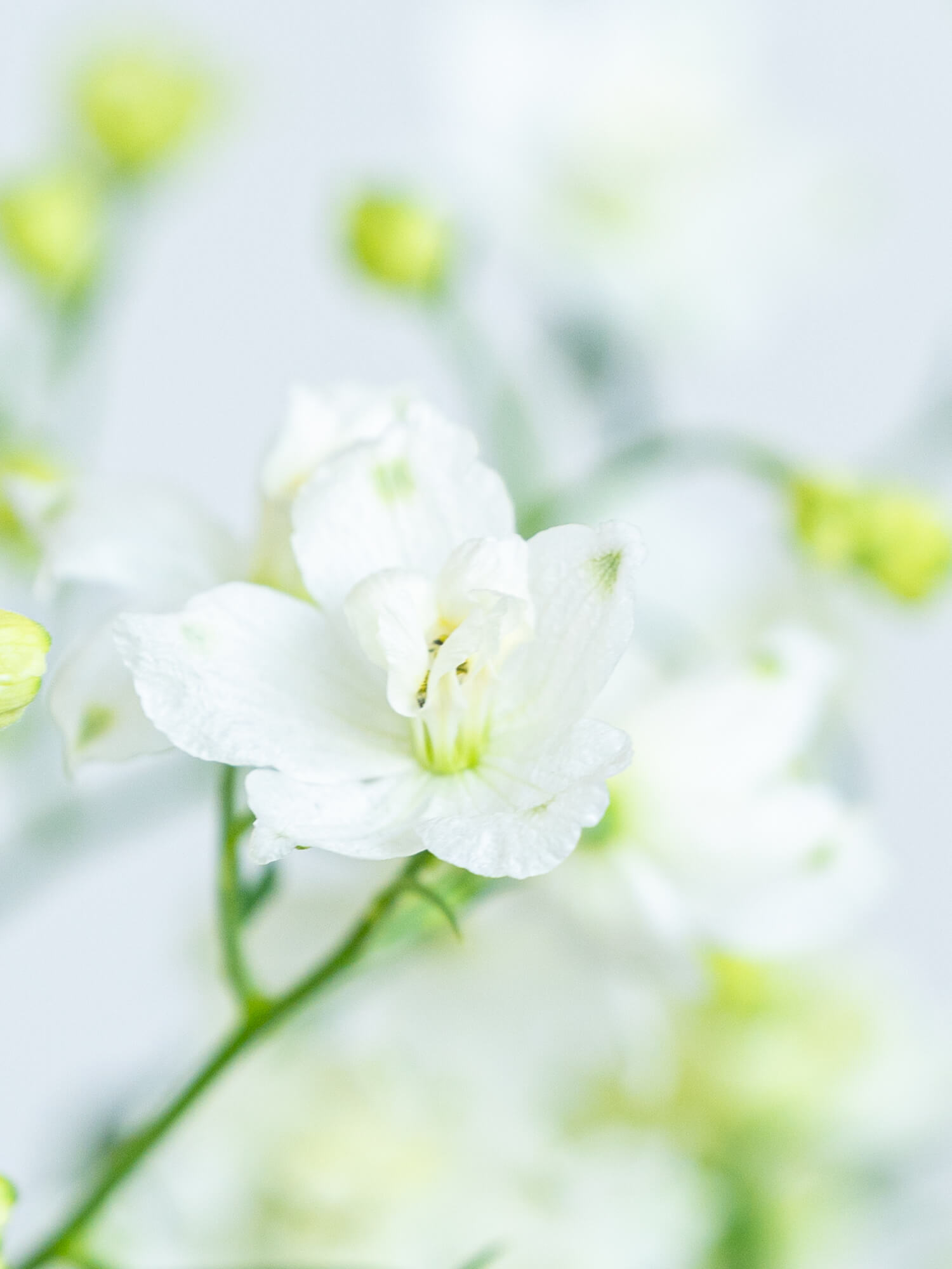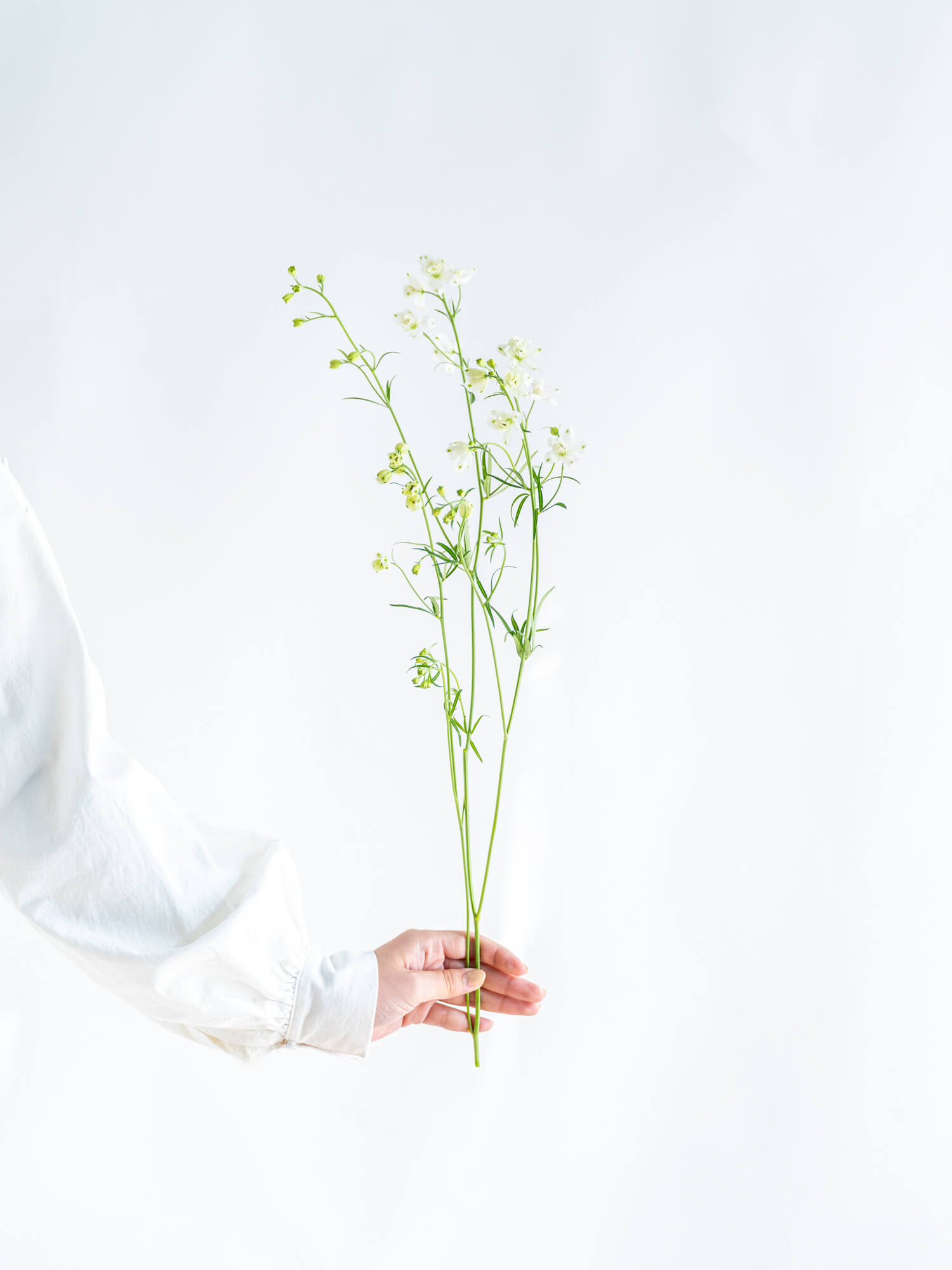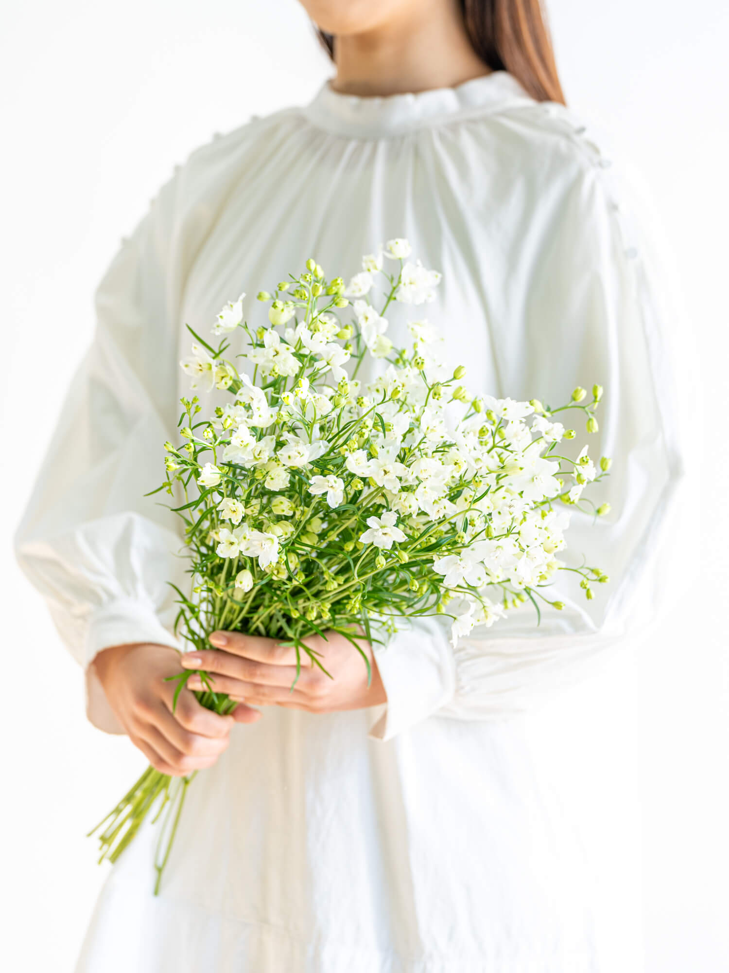 清楚で軽やかな白のデルフィニュームSP。繊細な印象で、柔らかい雰囲気の装花やブーケによく使われます。ボリュームは入荷時期・産地によりイメージと異なる場合がございます。予めお含みおきください。 ※夏場は気温上昇の影響で、花もちが通常より短くなる場合がございます。 ご購入の際は、品質保持のためクール便のご利用を推奨いたします。