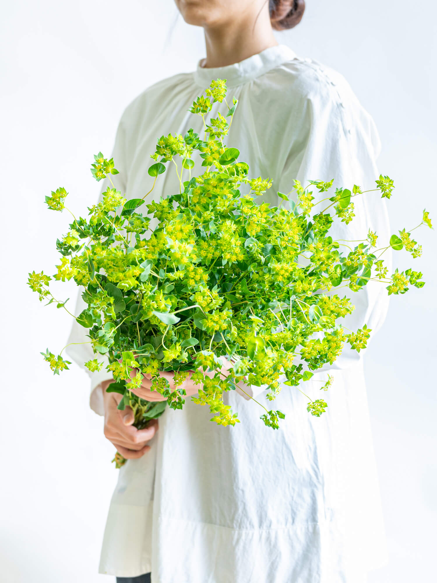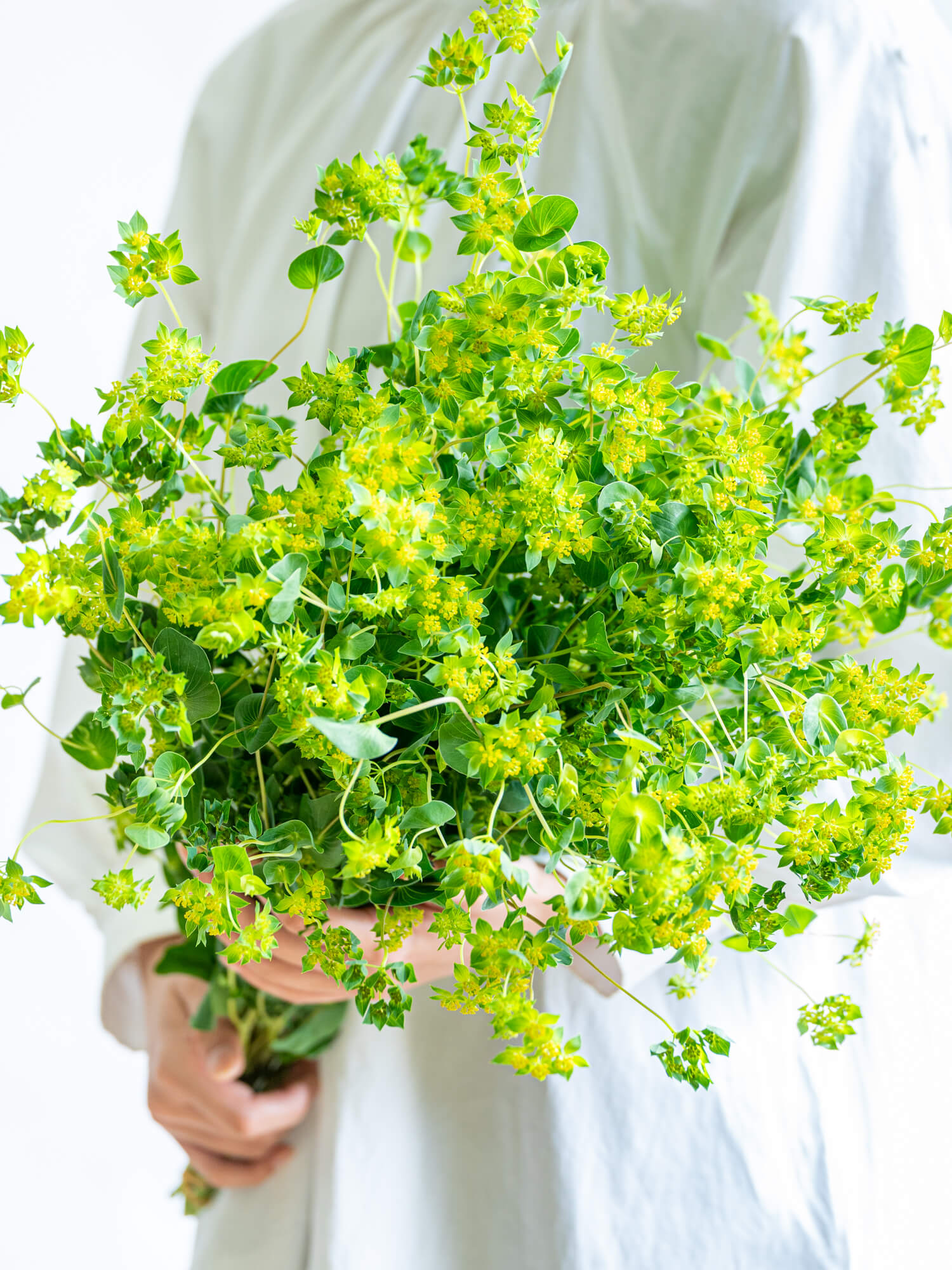 ブプレリュームは繊細な葉と細かな花が特徴のグリーン素材。軽やかで動きのあるアレンジに適しています。ボリュームは入荷時期・産地によりイメージと異なる場合がございます。予めお含みおきください。