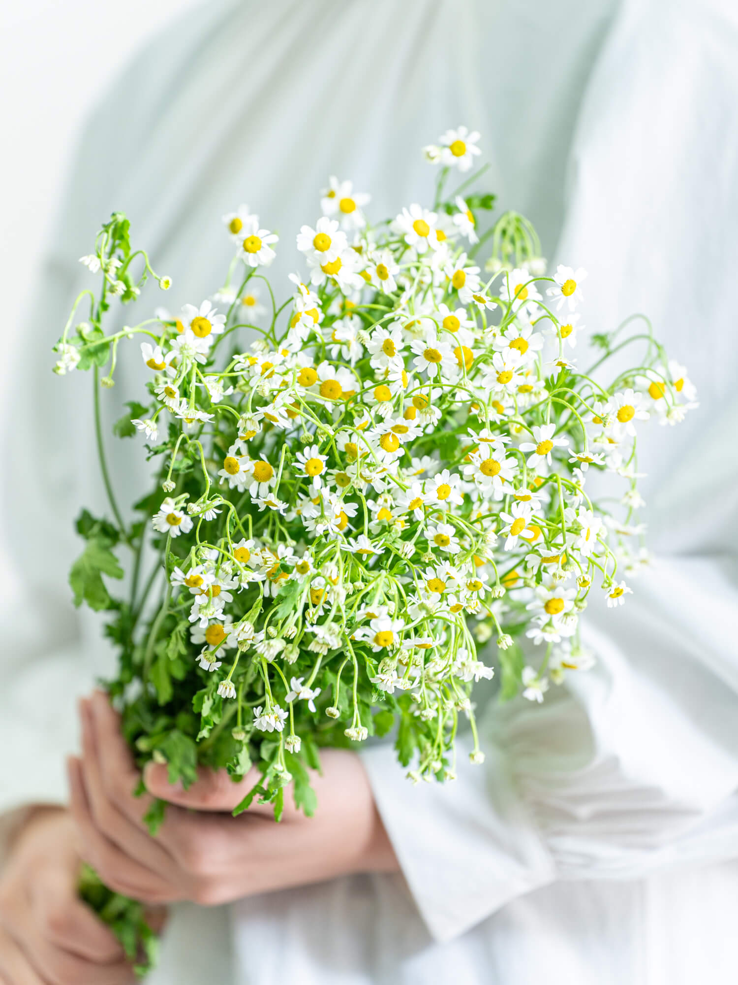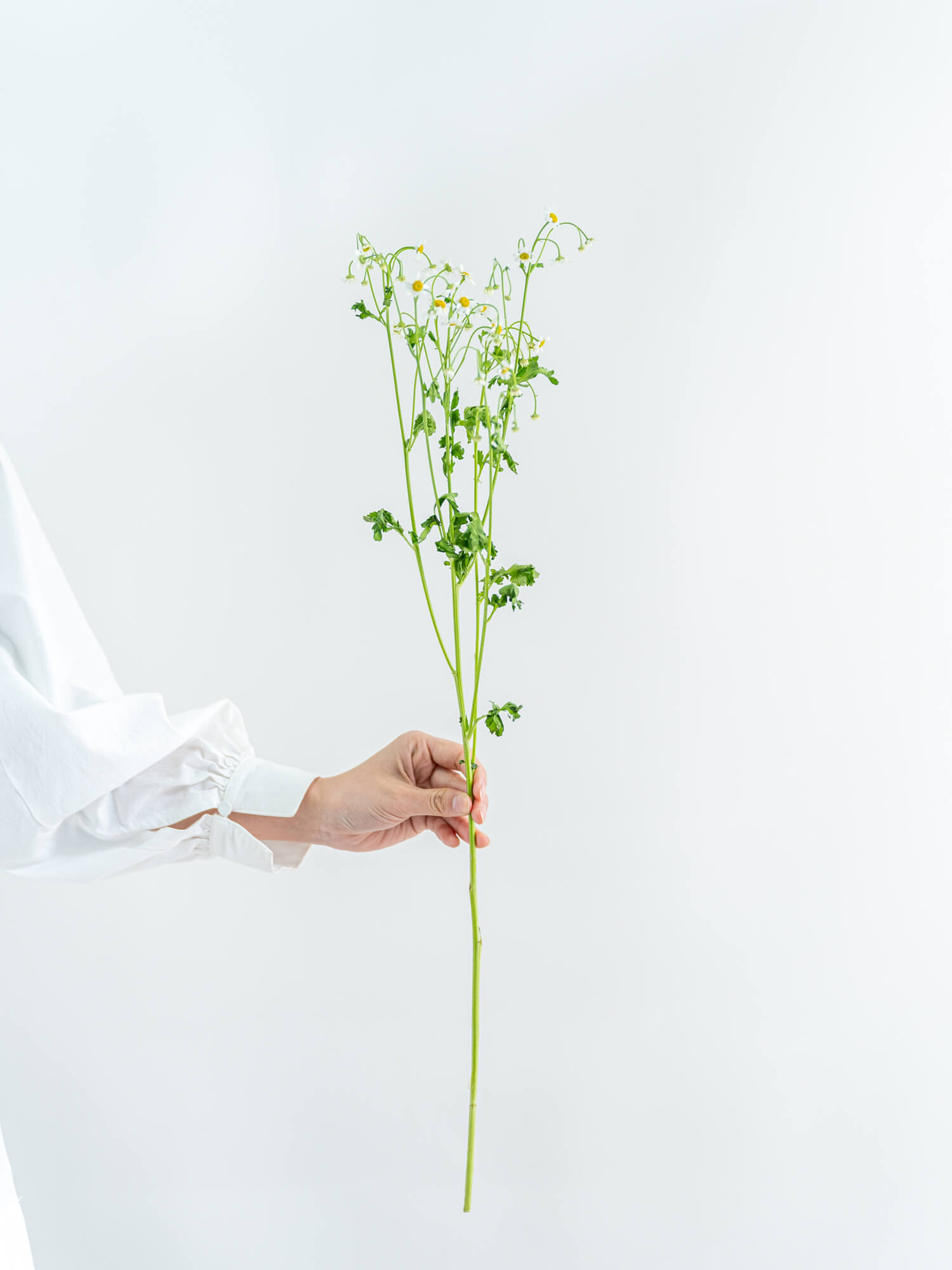 マトリカリアは小さな花が多数咲くナチュラルな印象の花材。やさしく軽やかな雰囲気のアレンジに向いています。ボリュームは入荷時期・産地によりイメージと異なる場合がございます。予めお含みおきください。