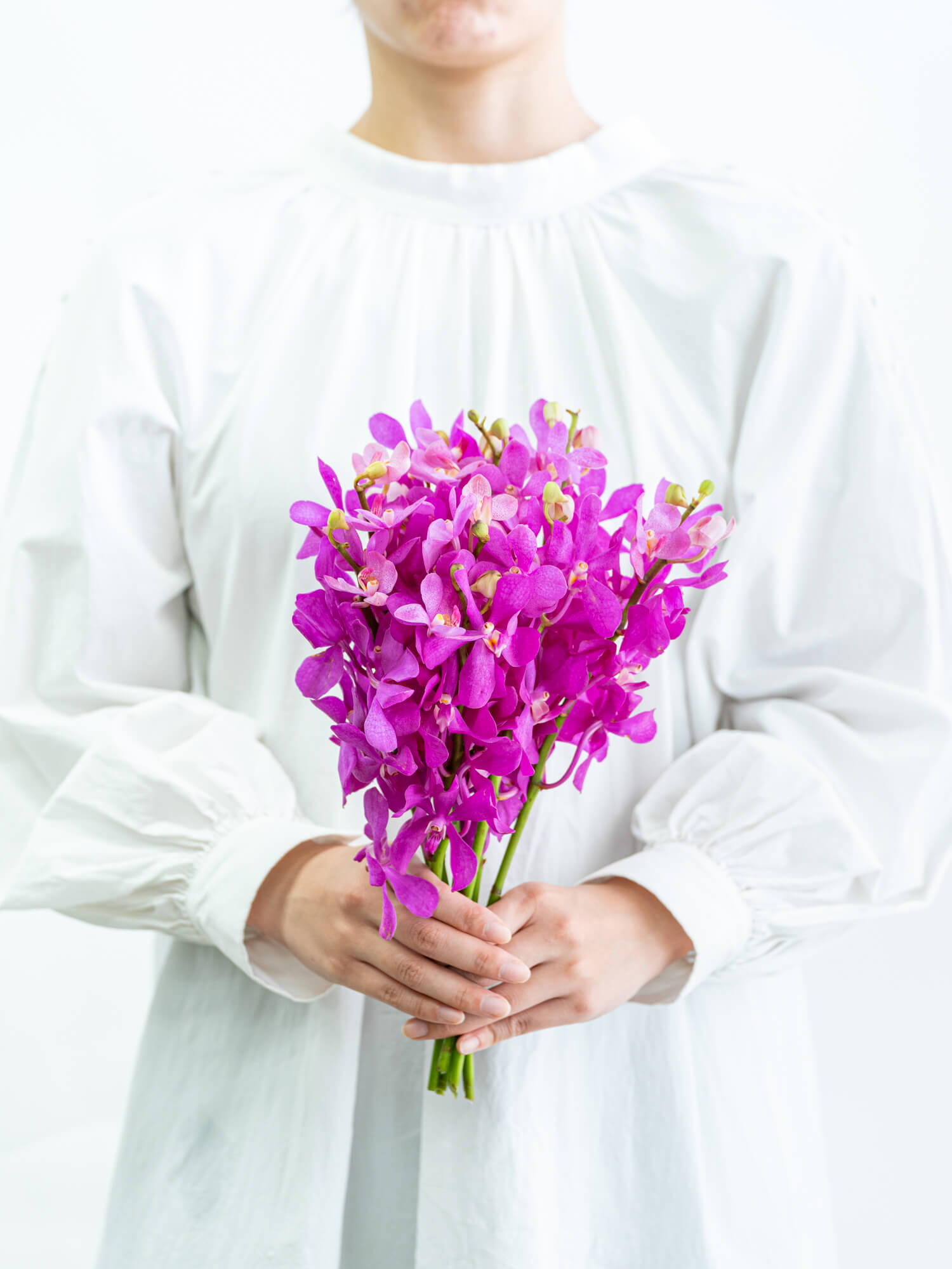 モカラは艶やかな質感と多彩な色合いが魅力の洋ラン。アレンジやギフトに高級感を与えるエキゾチックな花材です。ボリュームは入荷時期・産地によりイメージと異なる場合がございます。予めお含みおきください。