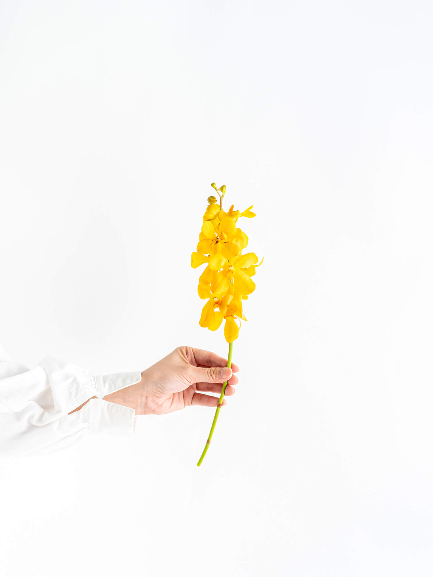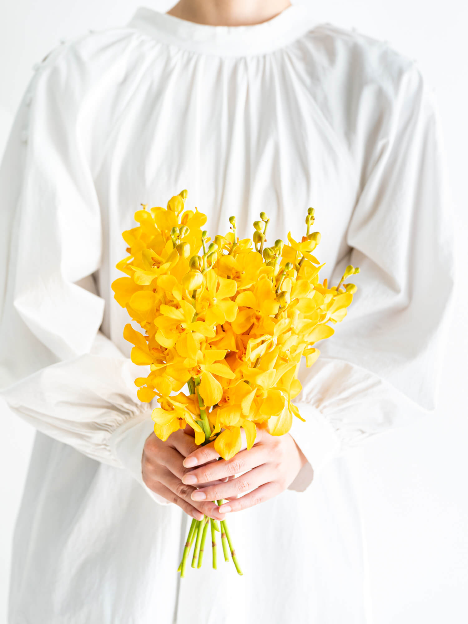 モカラの黄色系品種は明るく元気な印象を演出します。咲き方や色味に個性があり、南国風のアレンジに向いています。ボリュームは入荷時期・産地によりイメージと異なる場合がございます。予めお含みおきください。