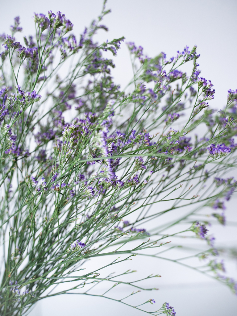 落ち着いた色合いが特徴のリモニューム。パープル系の品種はナチュラルなアレンジからシックな装花まで幅広く活躍します。ボリュームは入荷時期・産地によりイメージと異なる場合がございます。予めお含みおきください。
