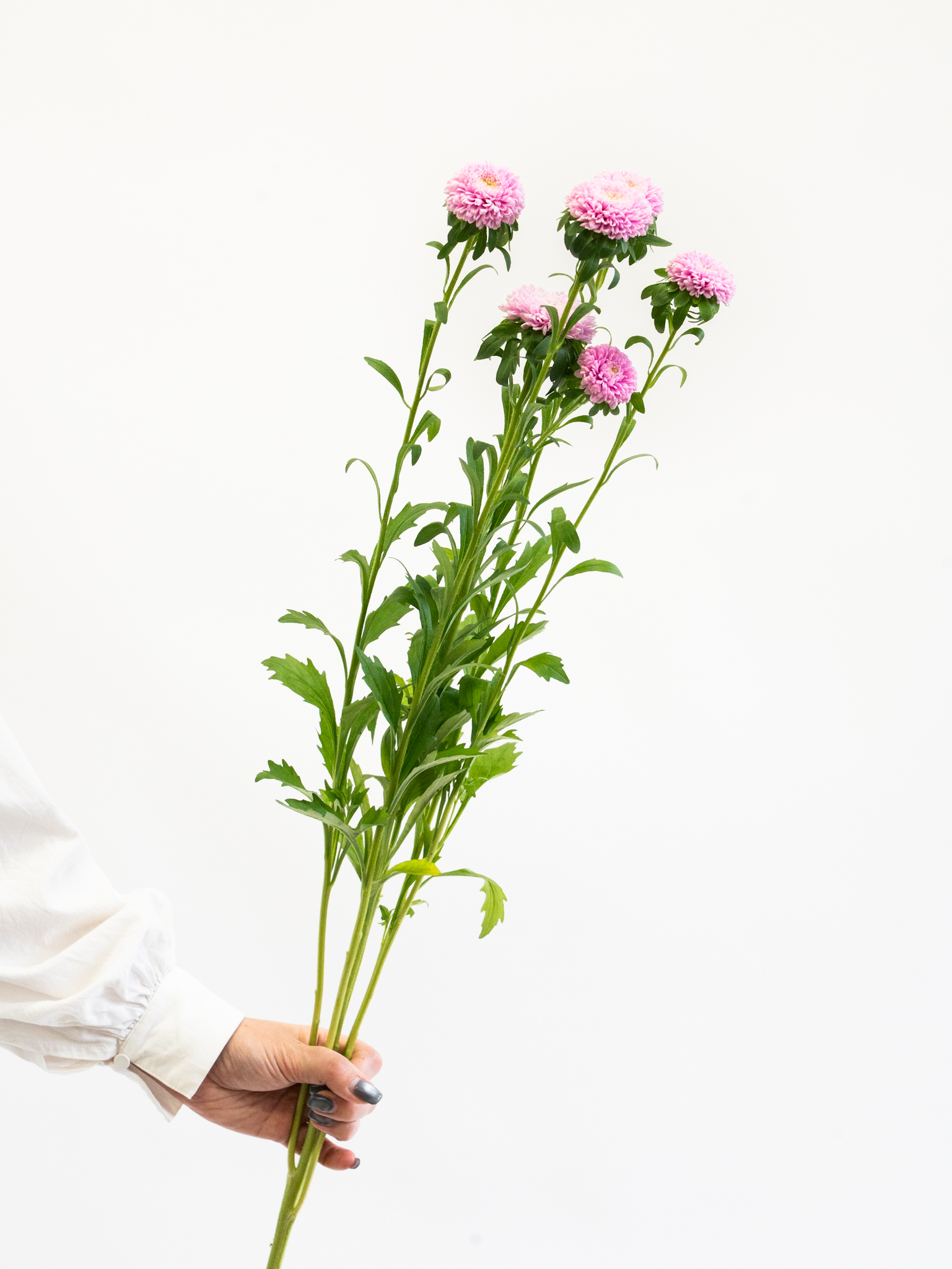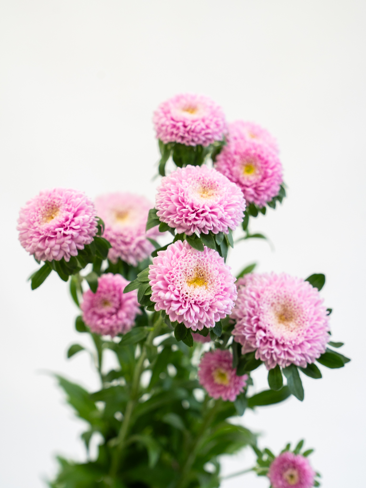 やわらかなピンクの花色が可憐な印象のアスター。小ぶりで丸みのある花形は、アレンジメントや花束のアクセントに適しています。