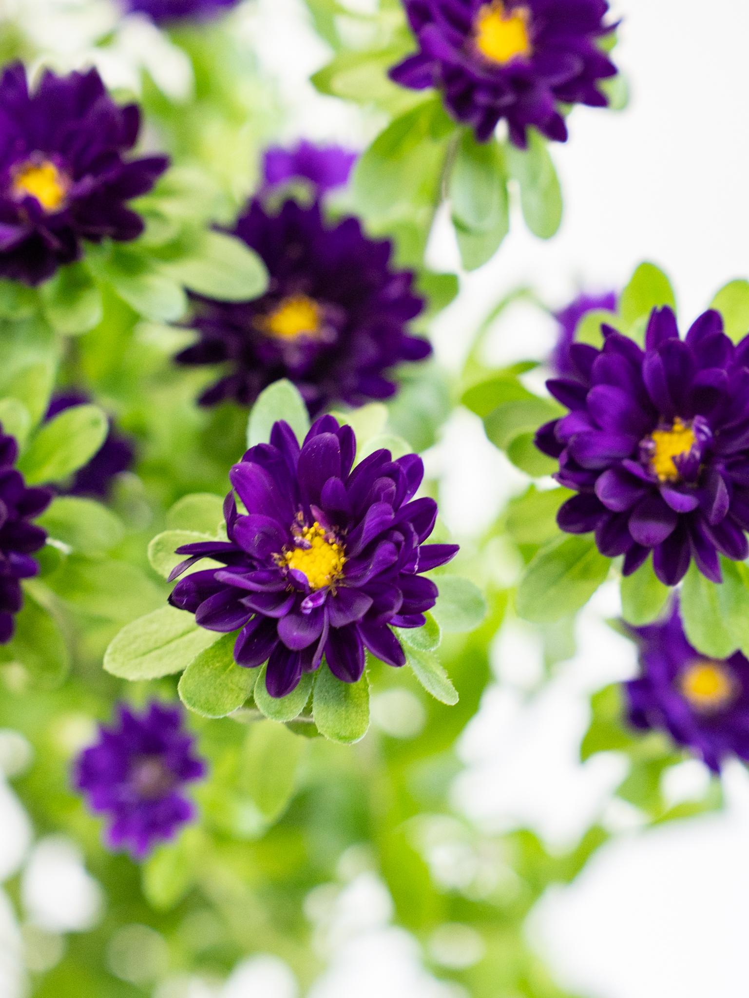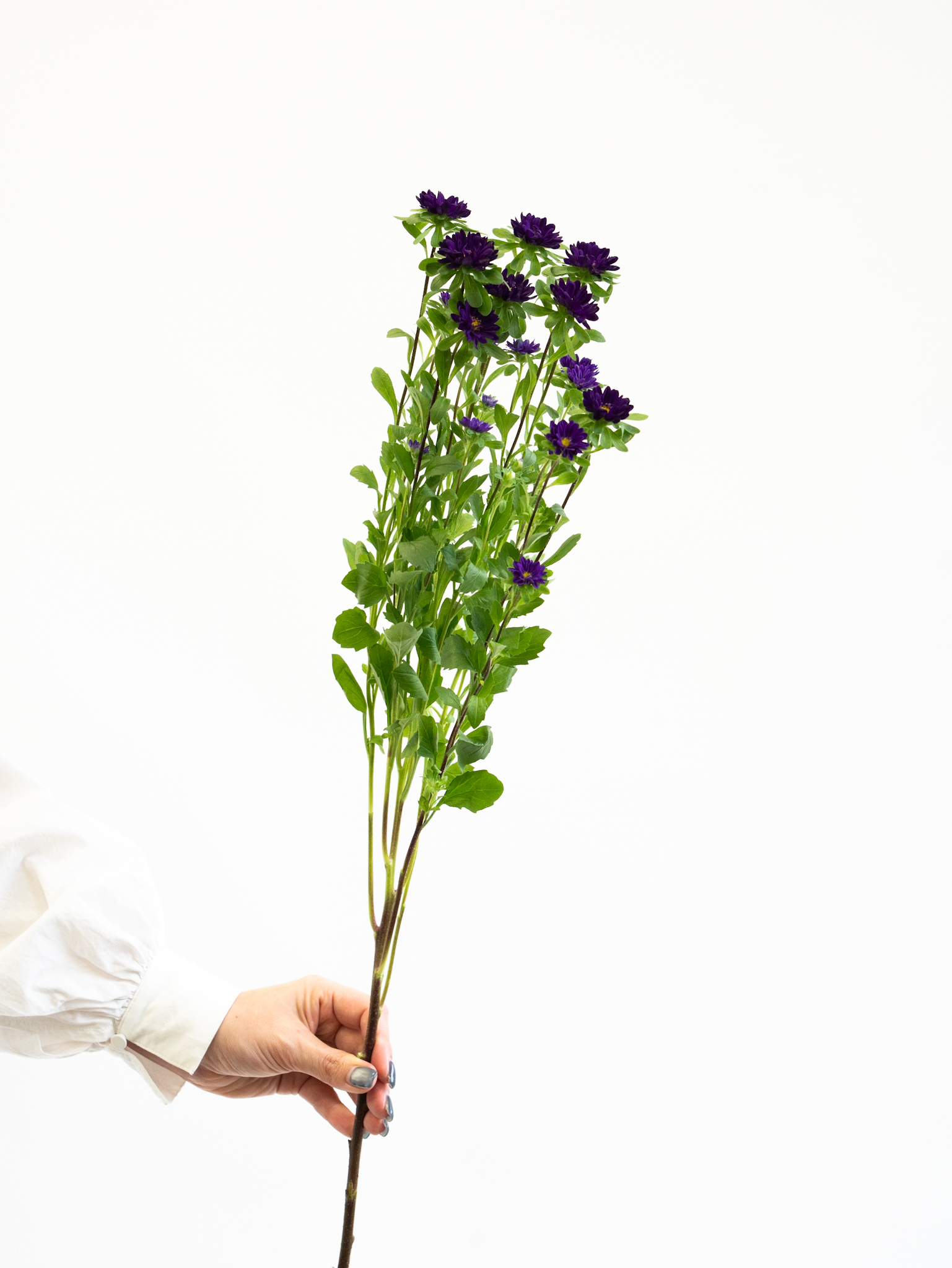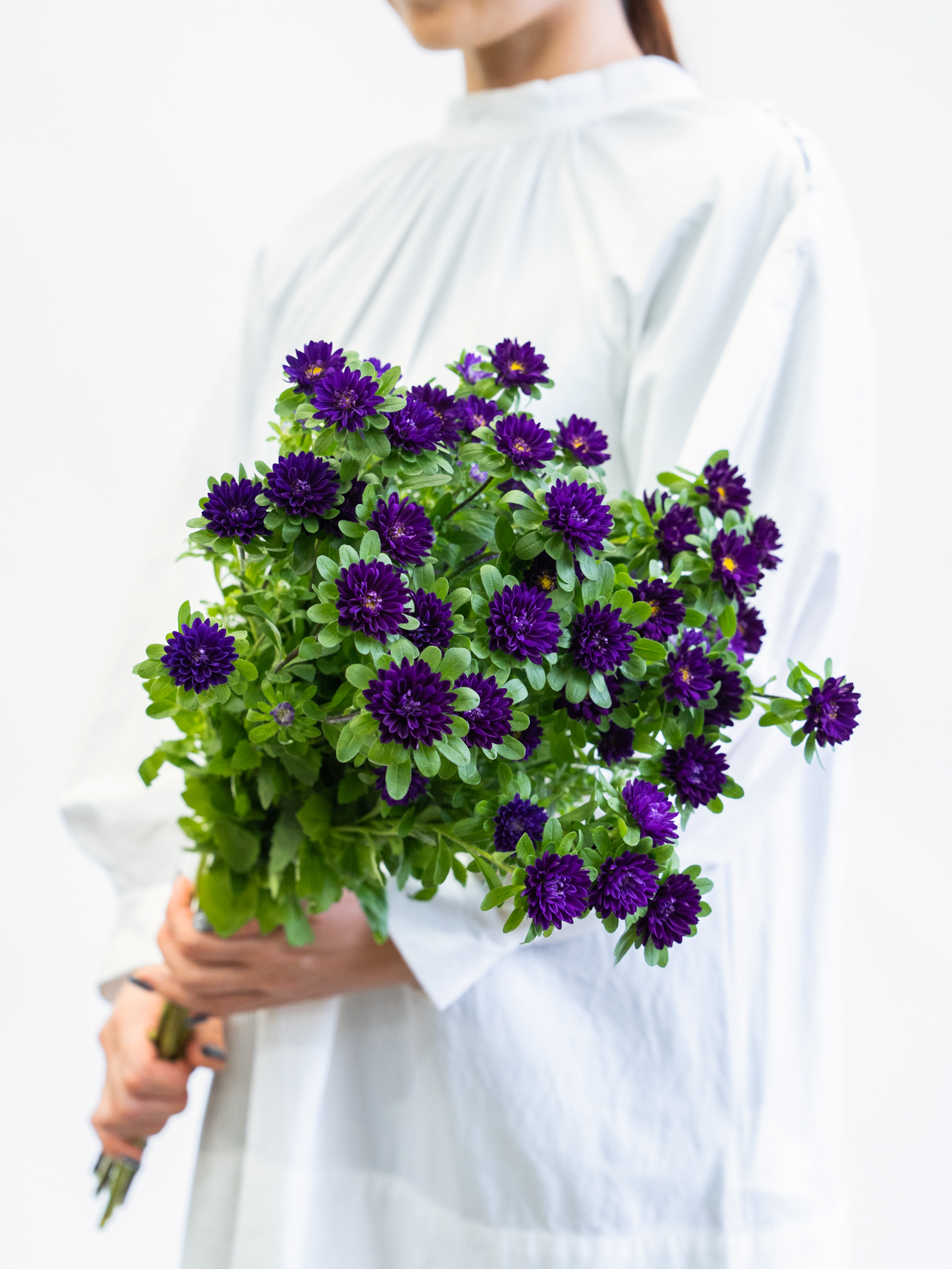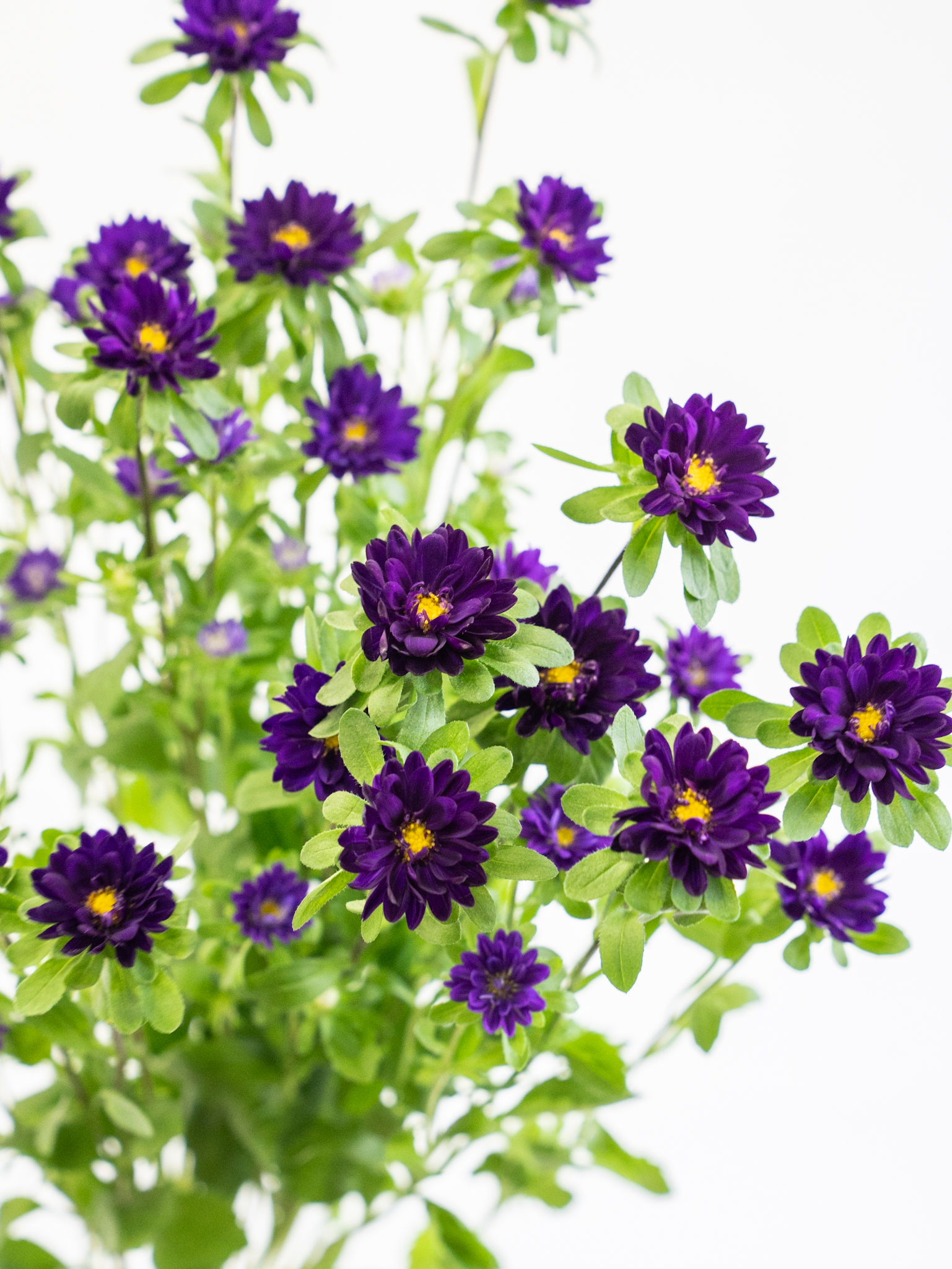深みのある紫色が特徴で、落ち着いた雰囲気の演出に最適なアスター。シックな装飾やブーケにおすすめです。