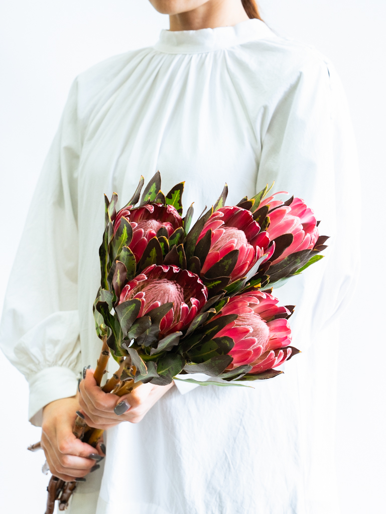 品種や色合い、ボリュームは入荷時期・産地によりイメージと異なる場合がございます。予めお含みおきください。 ※プロテアは、葉に黒斑や変色が見られる場合がございます。特有の個体差としてご理解いただけますと幸いです。