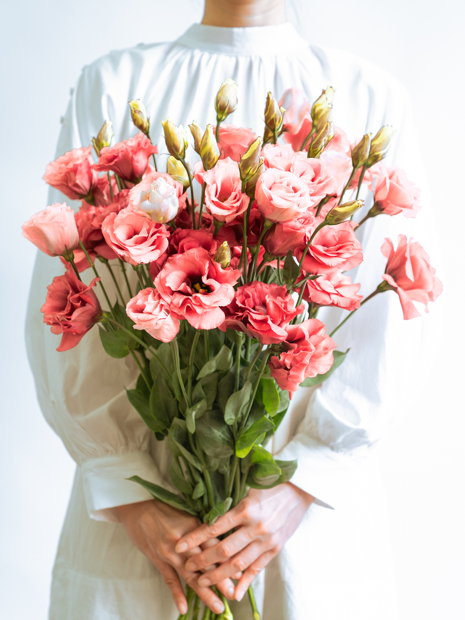 入荷した花は1本ずつ丁寧に水揚げ処理を行い、発送までしっかり管理。斜め切り・ハンマー叩きなど、花に合わせた水揚げを行います。届いた瞬間から、美しく咲く準備が整った状態でお届けします。