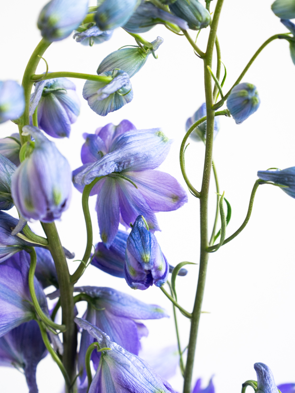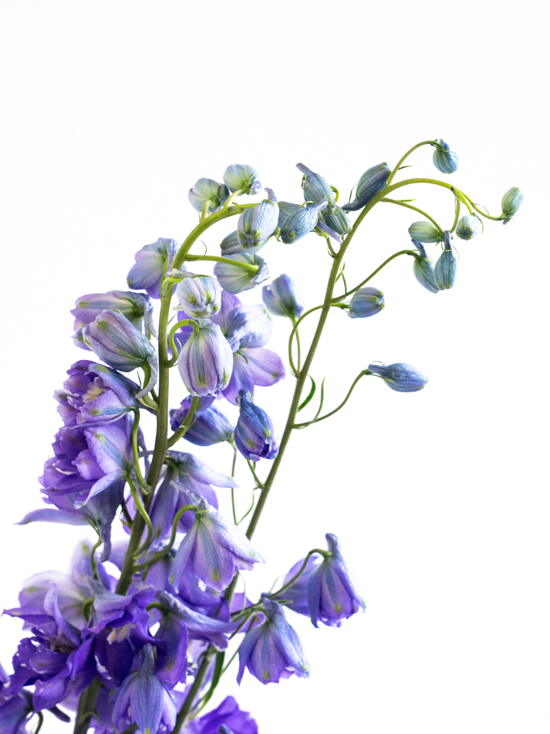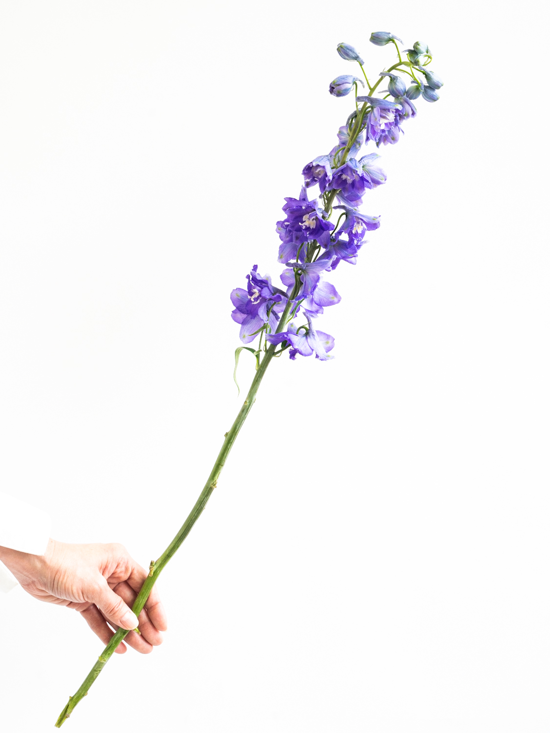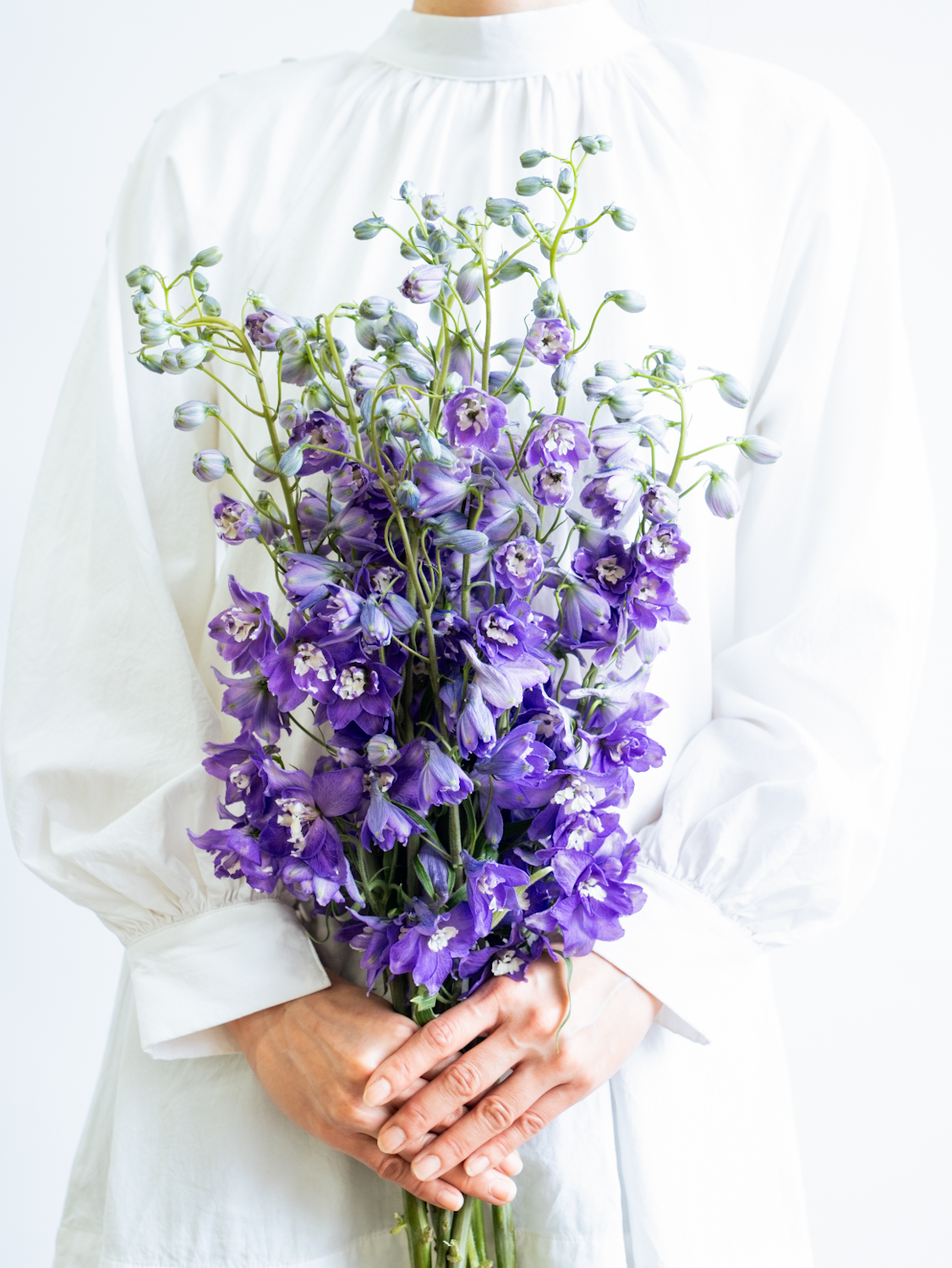 深みのある紫色がシックな印象を与えるデルフィニューム。高さのある装飾に適しています。