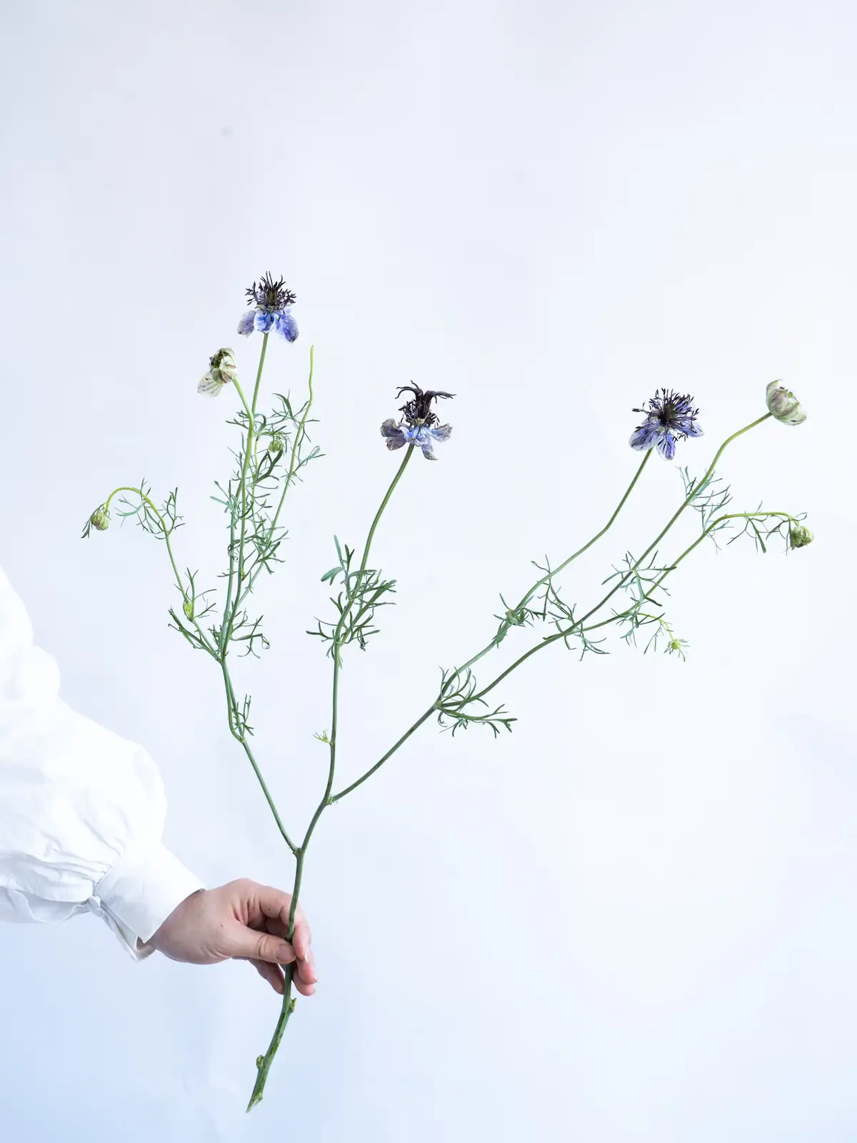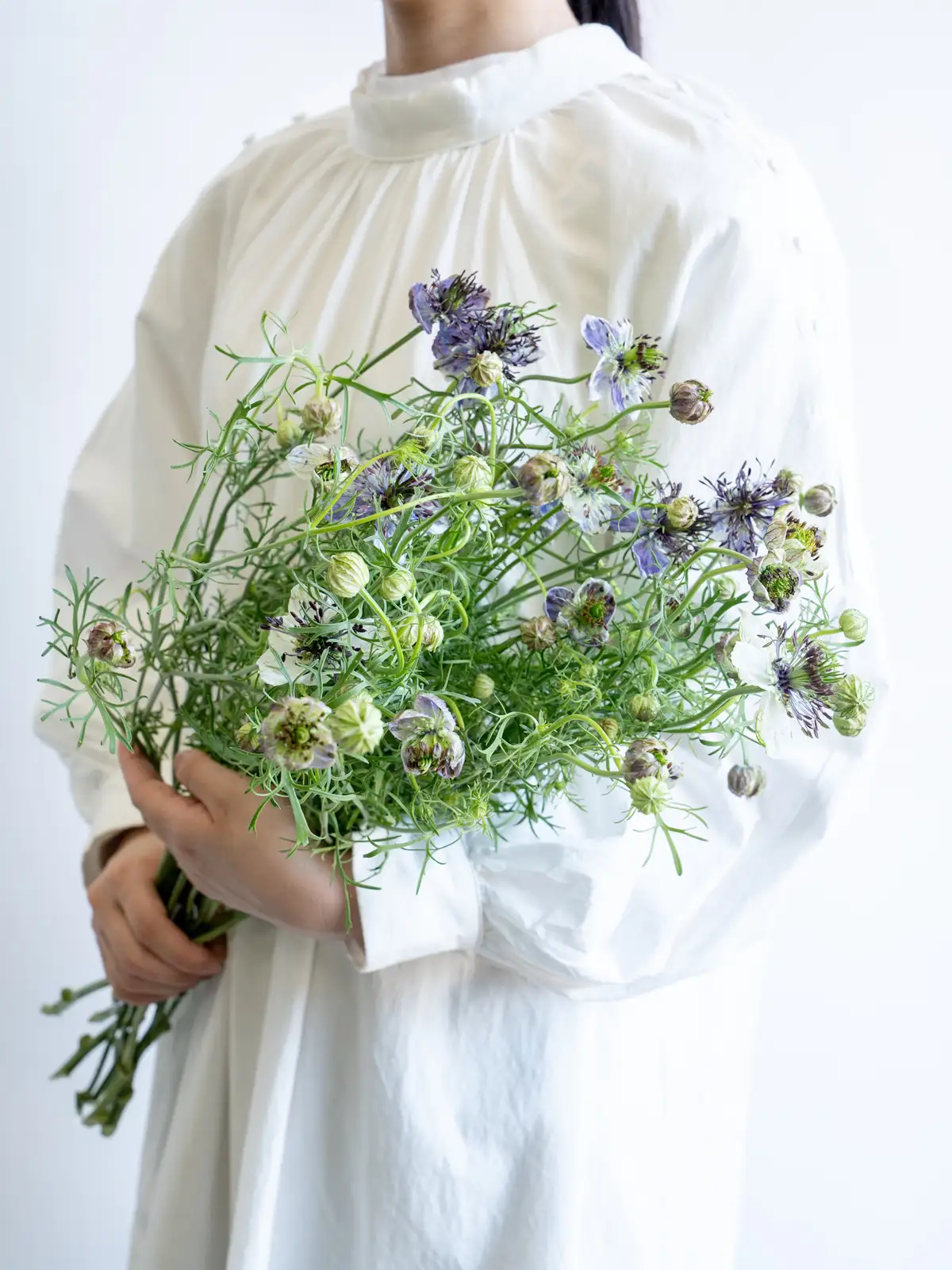 繊細な花姿と青色のコントラストが美しいニゲラ。ナチュラルな雰囲気のアレンジに人気です。