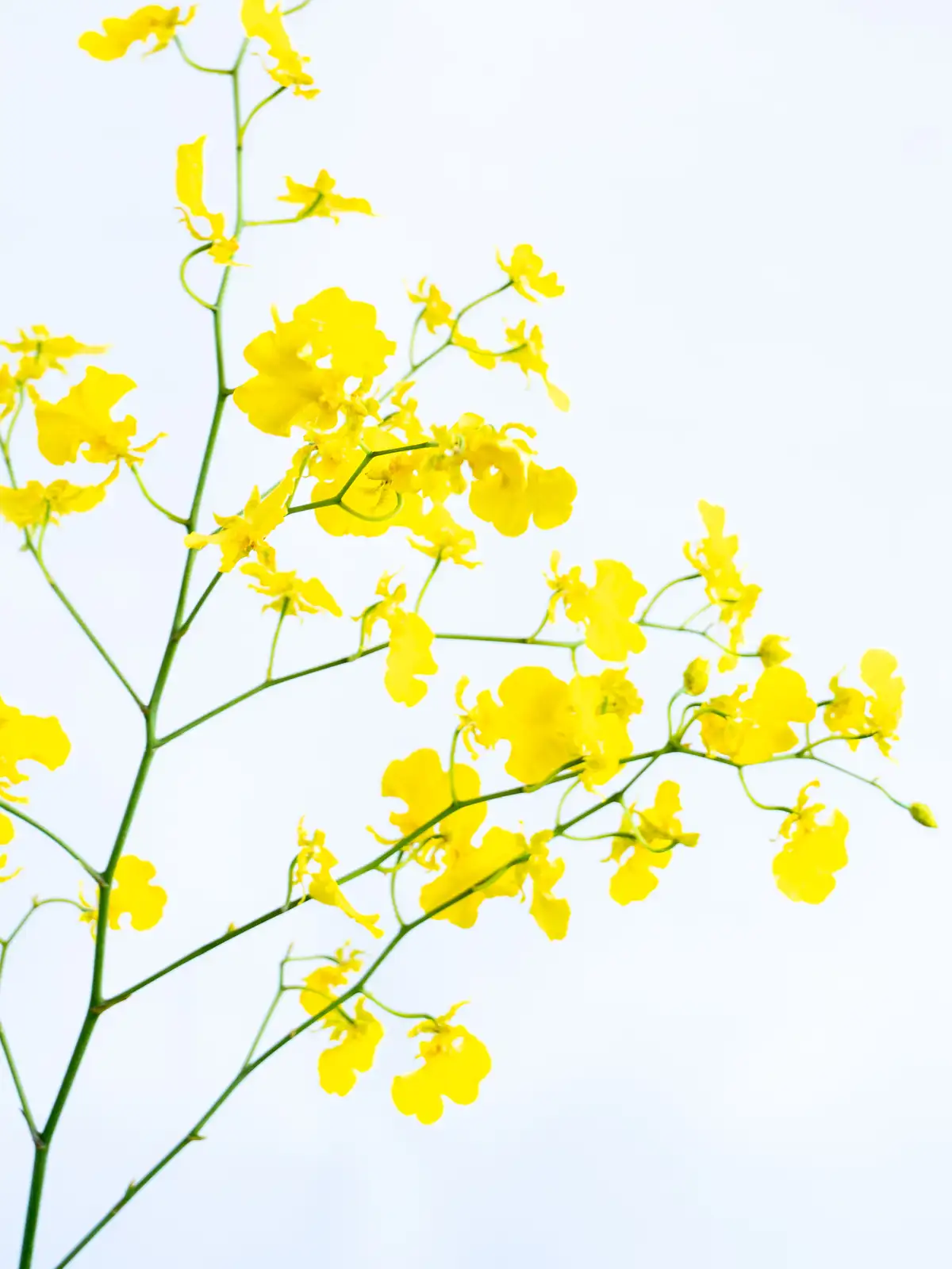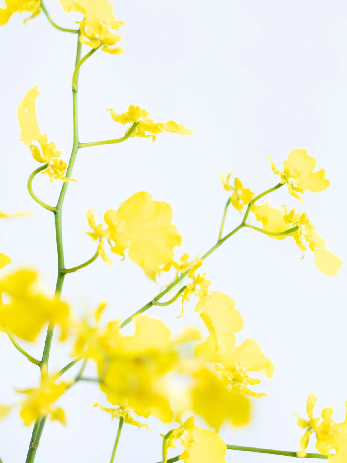 柔らかな黄色が可愛らしく、軽やかな動きのある花姿が魅力。季節の装飾やギフトにおすすめです。