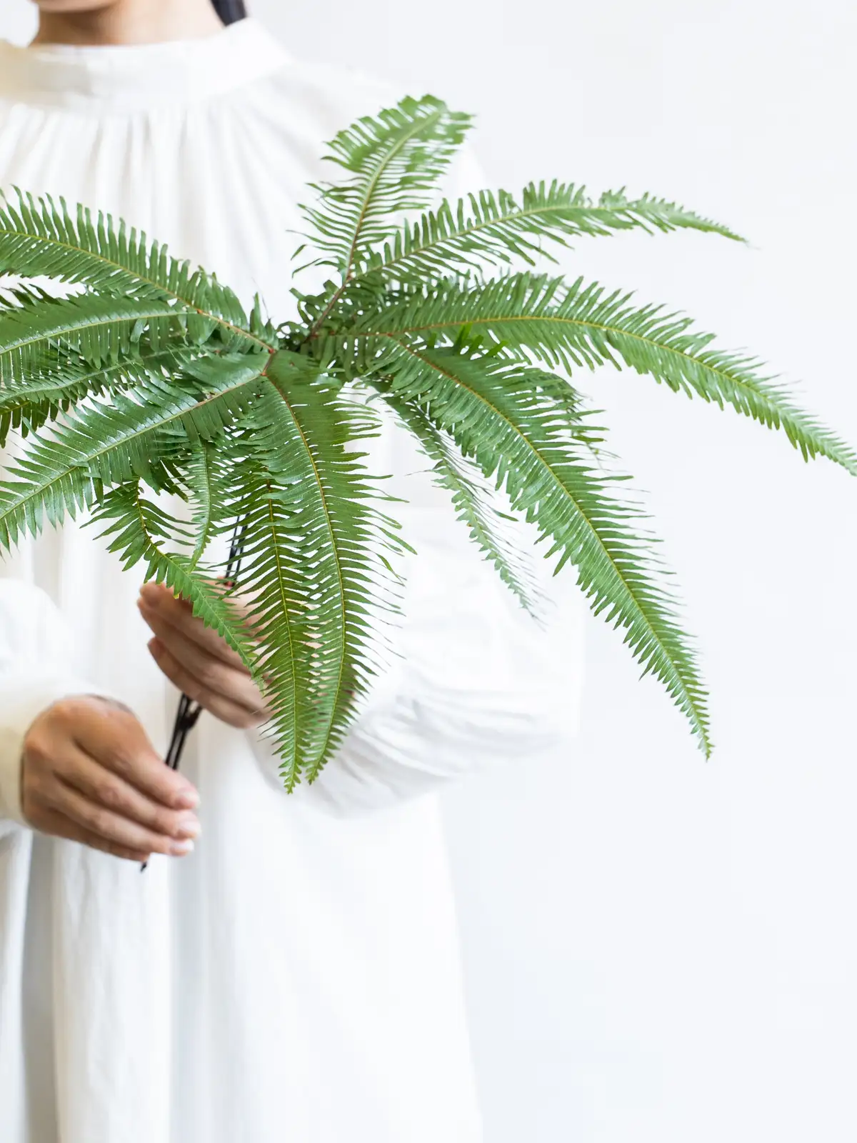 傘のように広がる柔らかな葉が特徴のシダ。ボリューム感と優雅さを演出できるグリーン素材です。