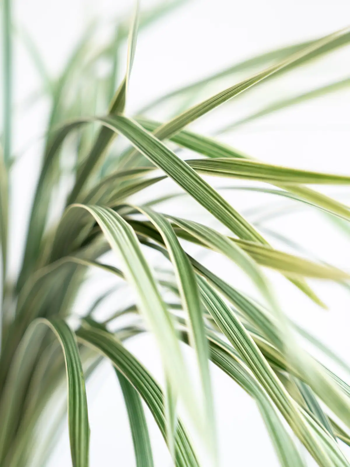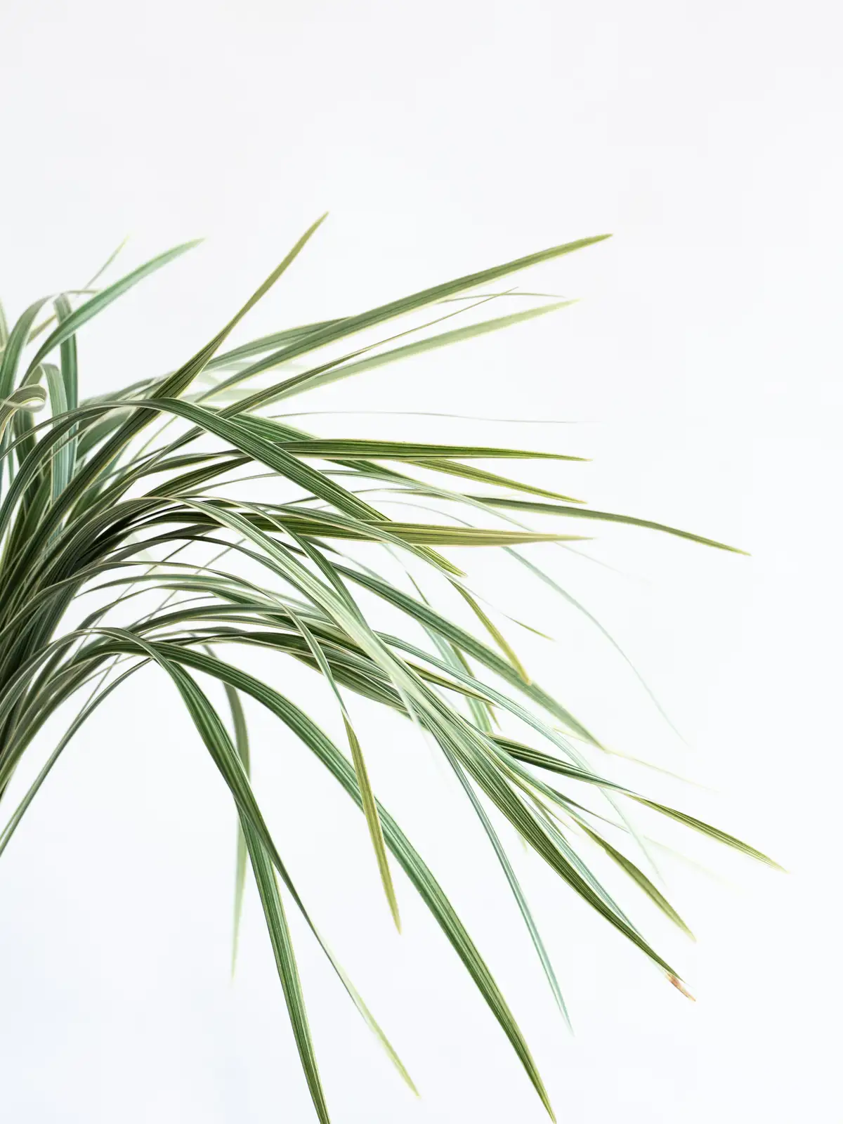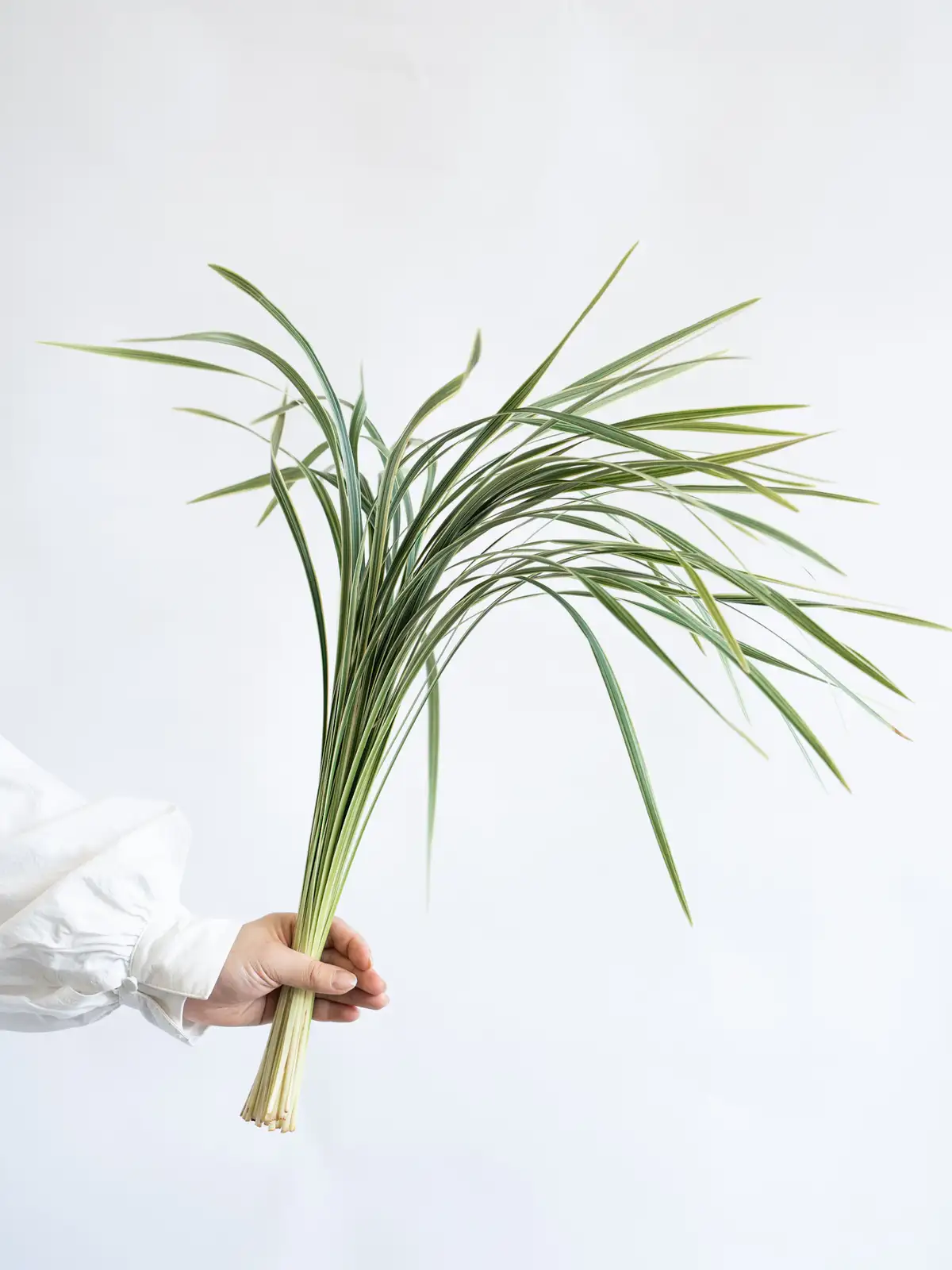 細長い葉に白の斑が入ったグリーン。動きを加えるリーフ素材として人気があります。