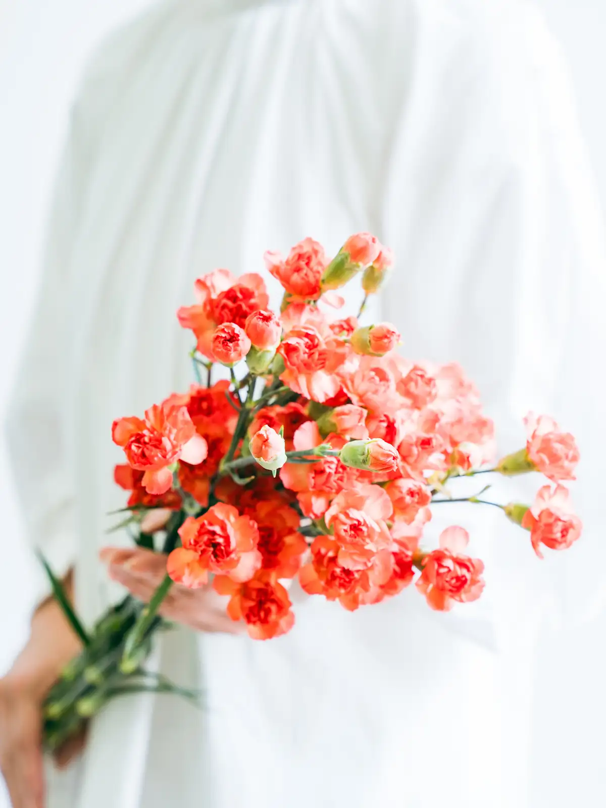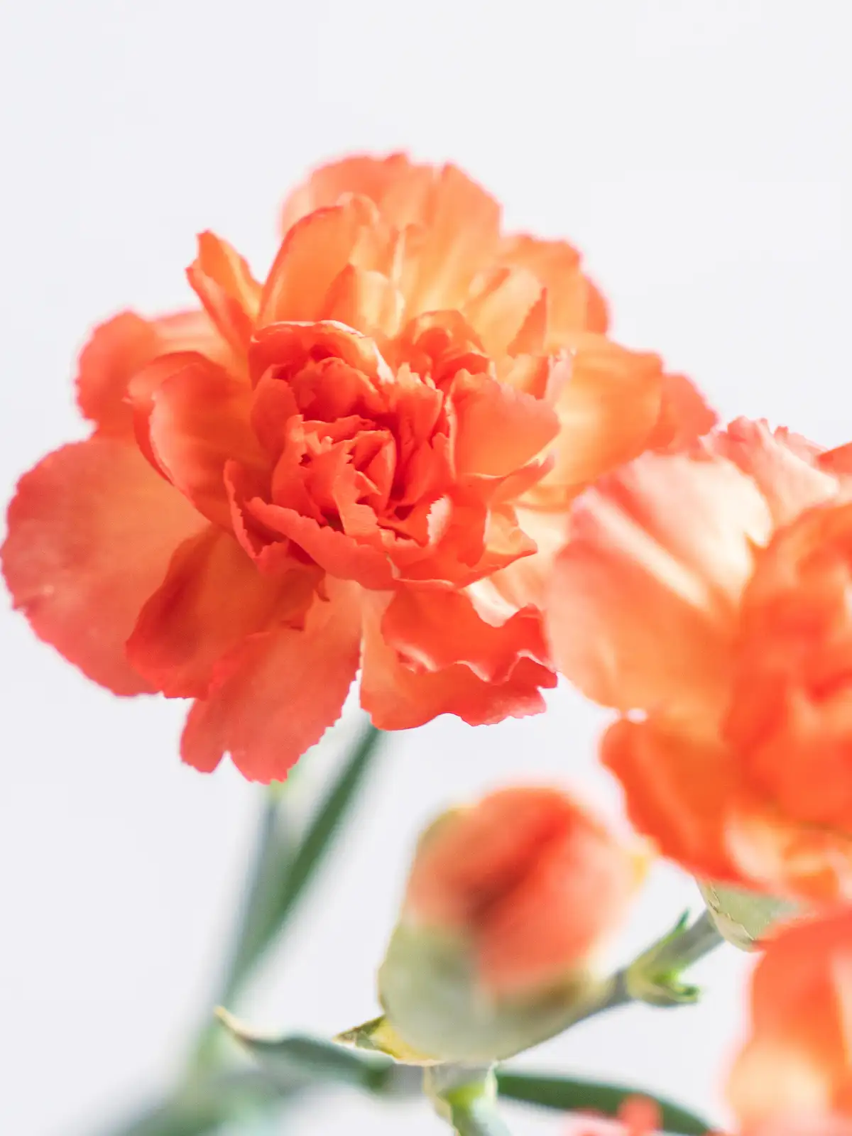 温かみのあるオレンジ色が印象的なスプレーカーネーション。華やかなアレンジにおすすめです。