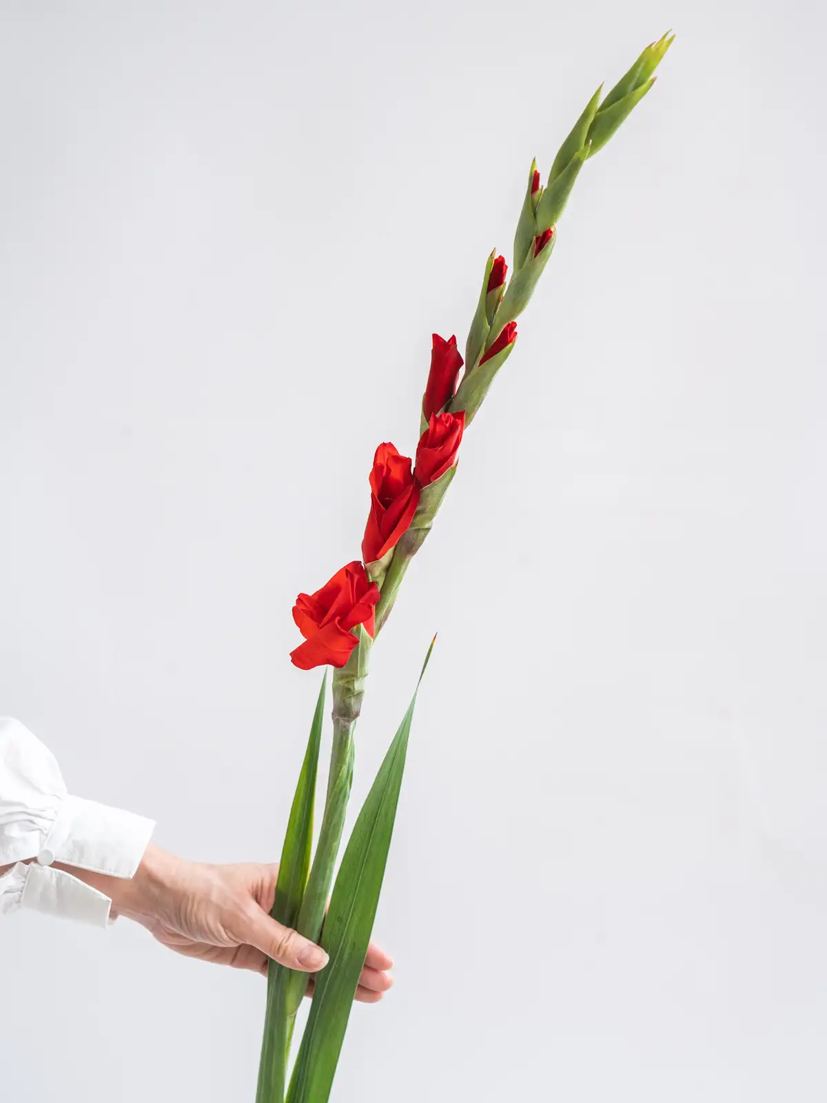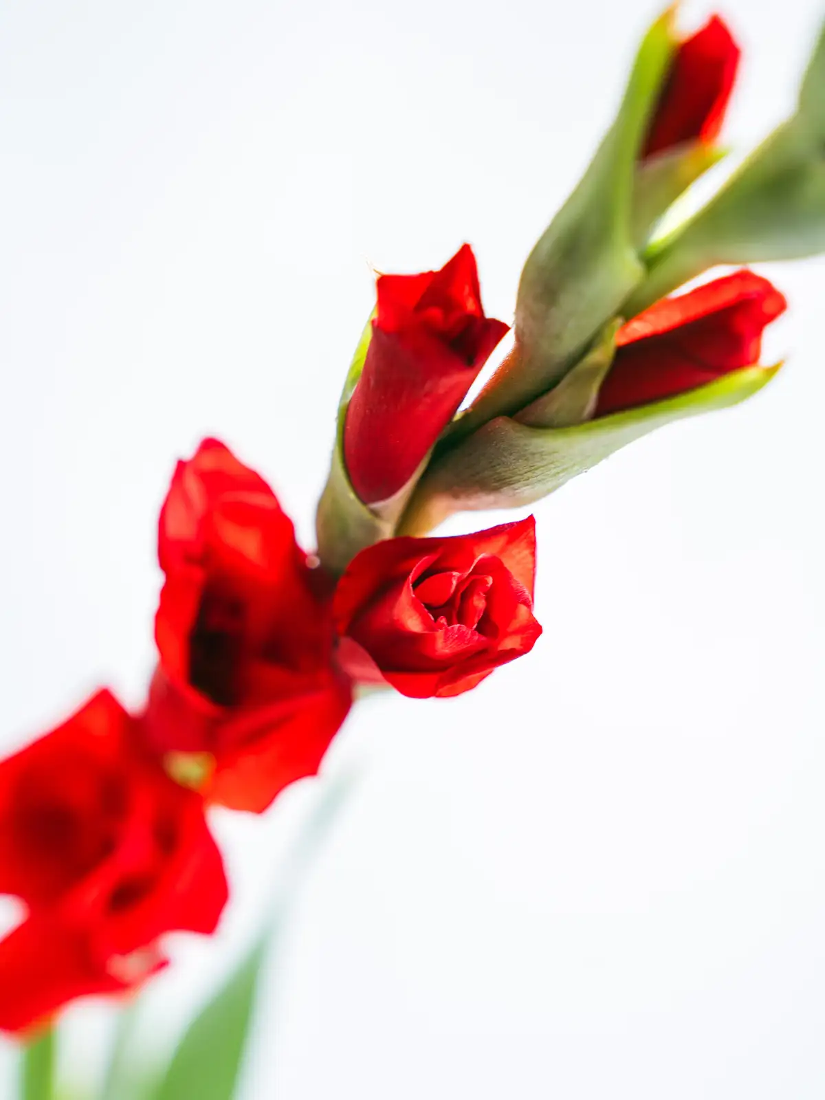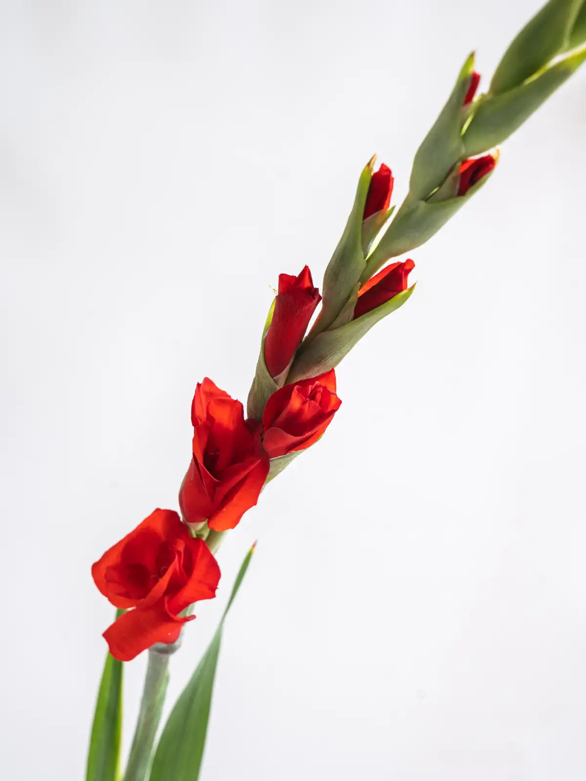情熱的な赤い花弁が印象的なグラジオラス。イベント装飾や華やかな演出に最適です。