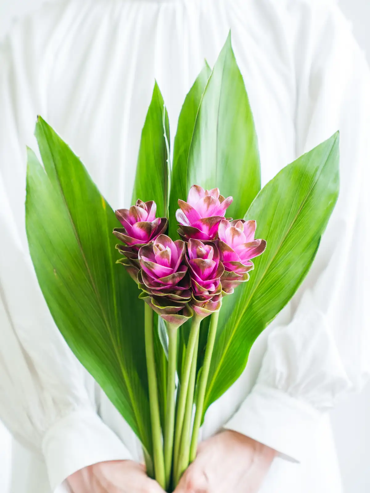 トロピカルな雰囲気を持つピンク系クルクマ。夏のギフトやアジアンテイストのアレンジに適しています。