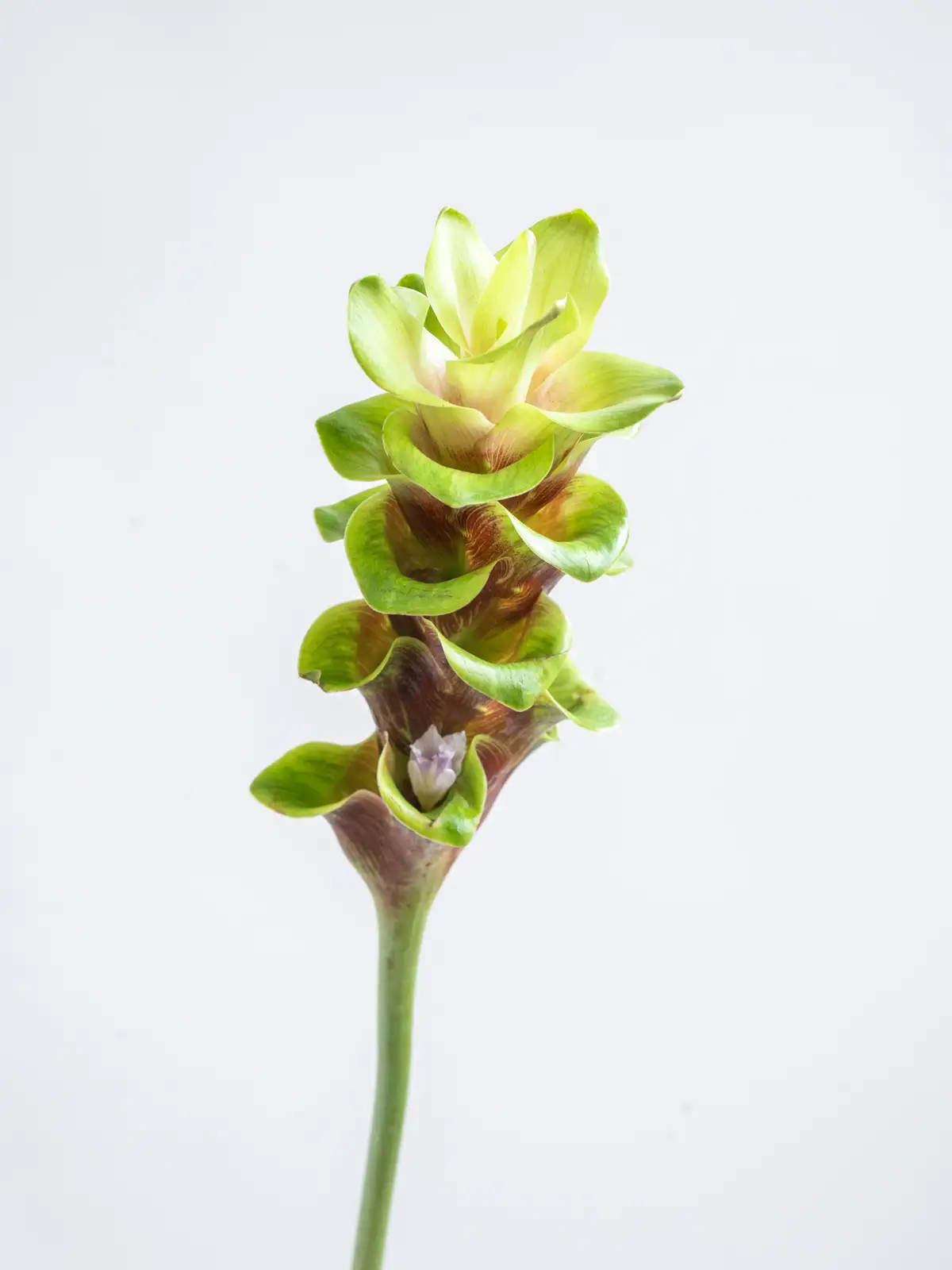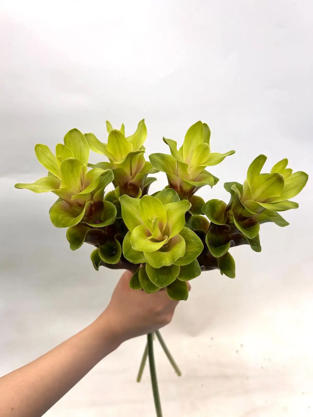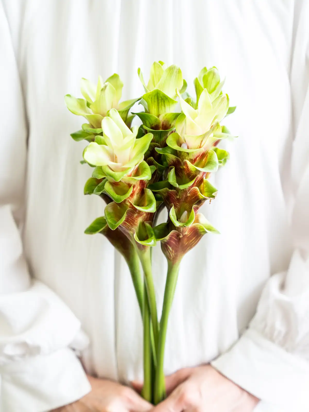グリーン系の色合いが爽やかで涼しげな印象を演出するクルクマ。夏のアレンジに最適です。