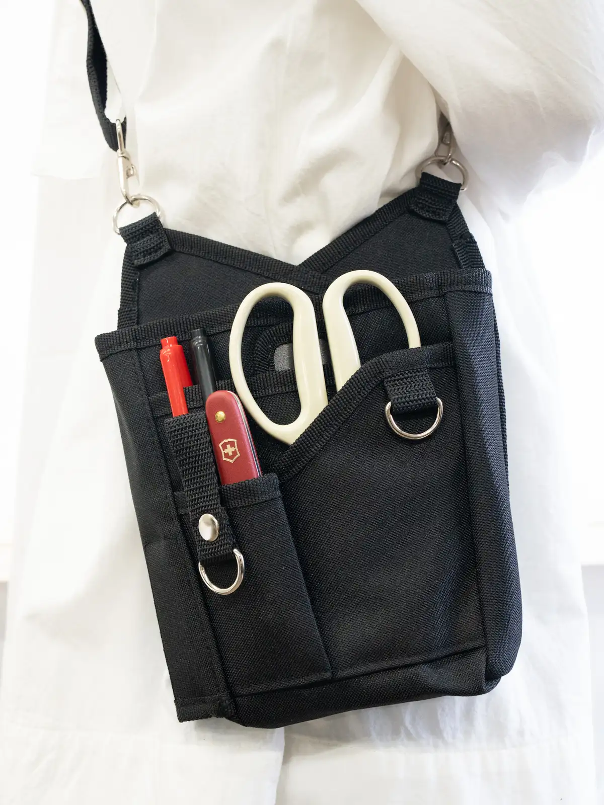 フローリストの必需品、軽量で使いやすいシザーバッグです。道具類をまとめて収納でき、作業効率をアップ。水に強いPVCポケットや2WAY仕様で、現場での動きを妨げません。 ※事業者の方で大口購入の方はお問い合わせよりご相談ください。