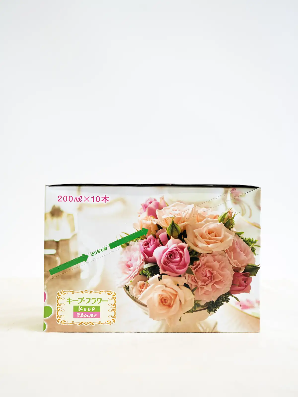 切り花の鮮度を長く保つ専用の延命剤です。水に混ぜるだけで、花の水揚げを促進し、しおれや変色を防ぎます。ご家庭での花の手入れはもちろん、店頭販売やギフトに添えてご提案いただくことで、顧客満足度の向上にもつながります。200mlサイズは取り扱いやすく、小売用として使いやすい仕様。10本入りで、販促用やイベントでの配布にも最適です。 ※事業者の方で大口購入の方はお問い合わせよりご相談ください。
